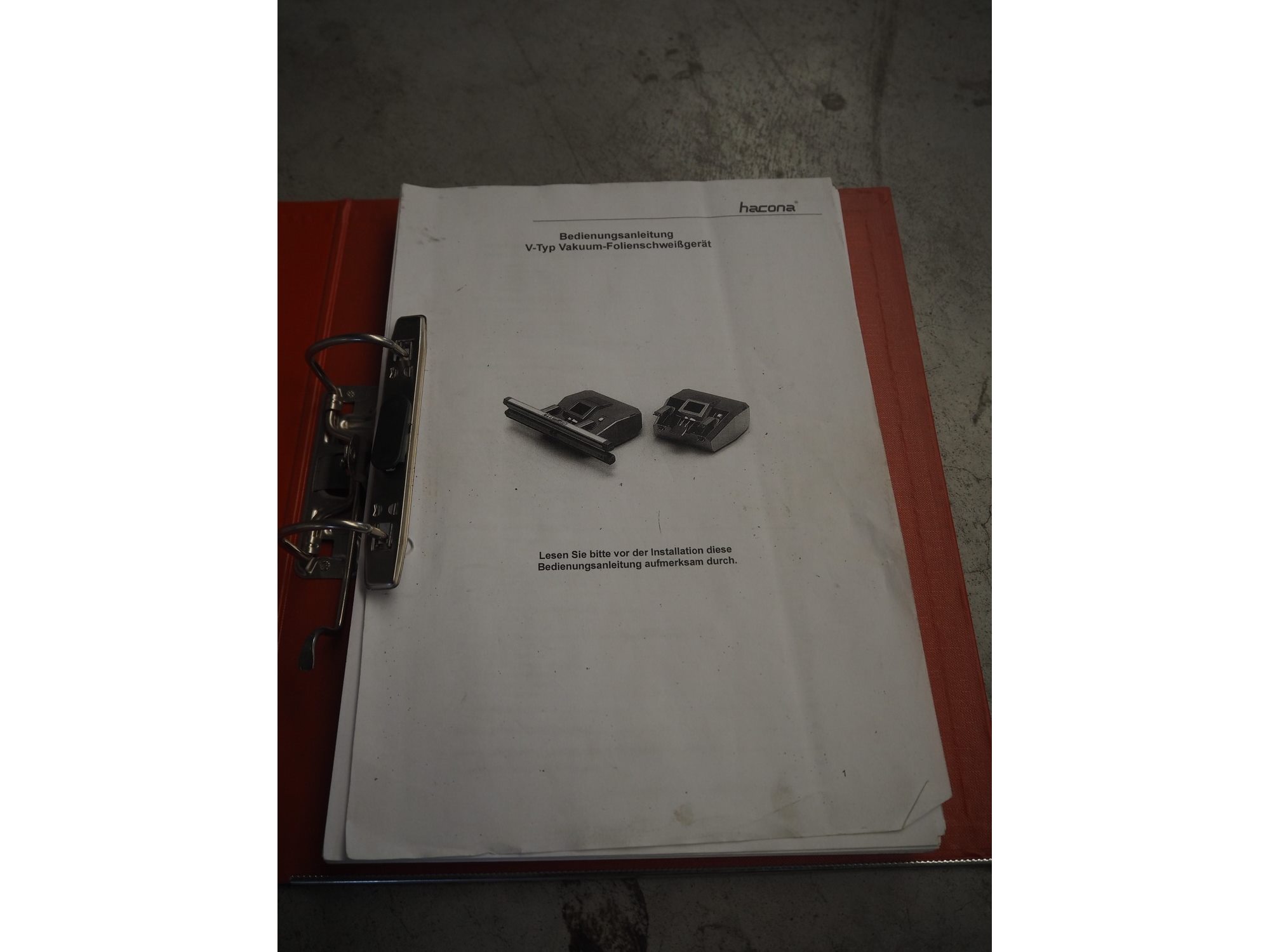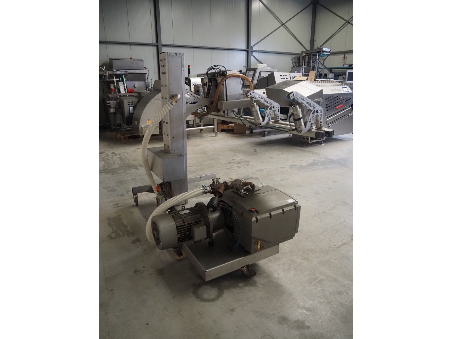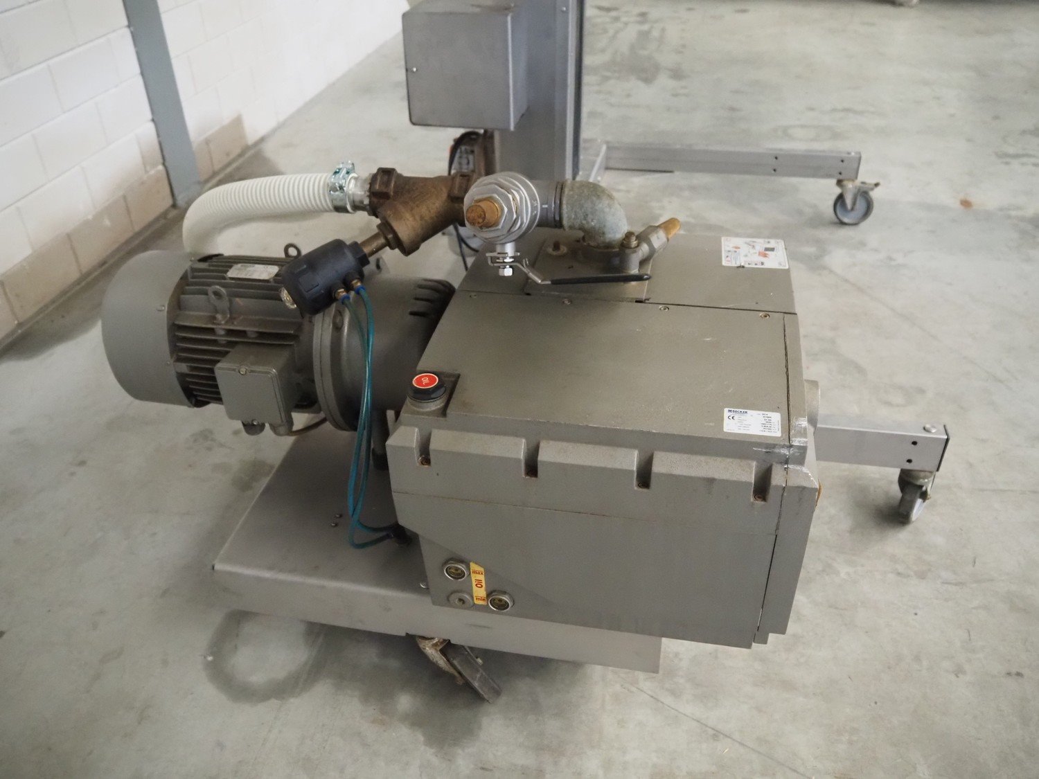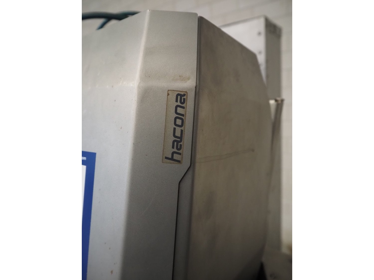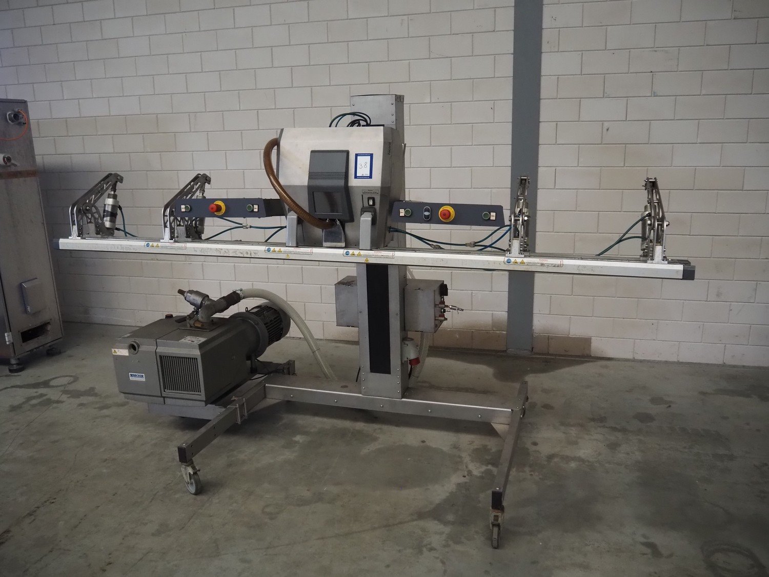 Hacona mobile bag sealing machine, model: V-Type, 230 V, 2500 W, seal length: 2750 mm, Becker vacuum pump, type: U4.300, capacity: 291/342 m³ per hour, total dimensions: 2750 mm x 1400 mm x 1850 mm. With extra seals. Kavel locatie: Makkummerwaard 3, 8321 WV Urk, Nederland