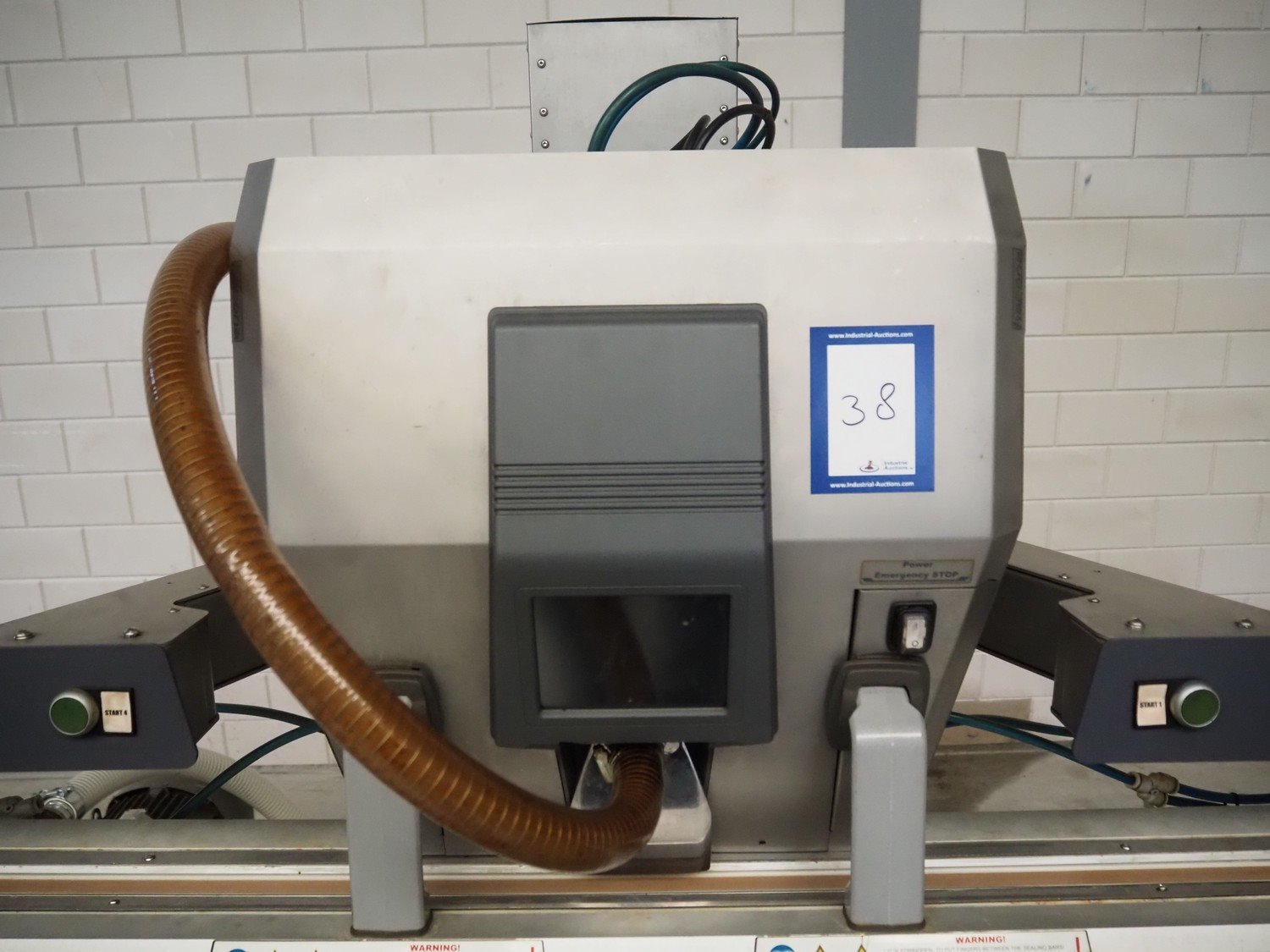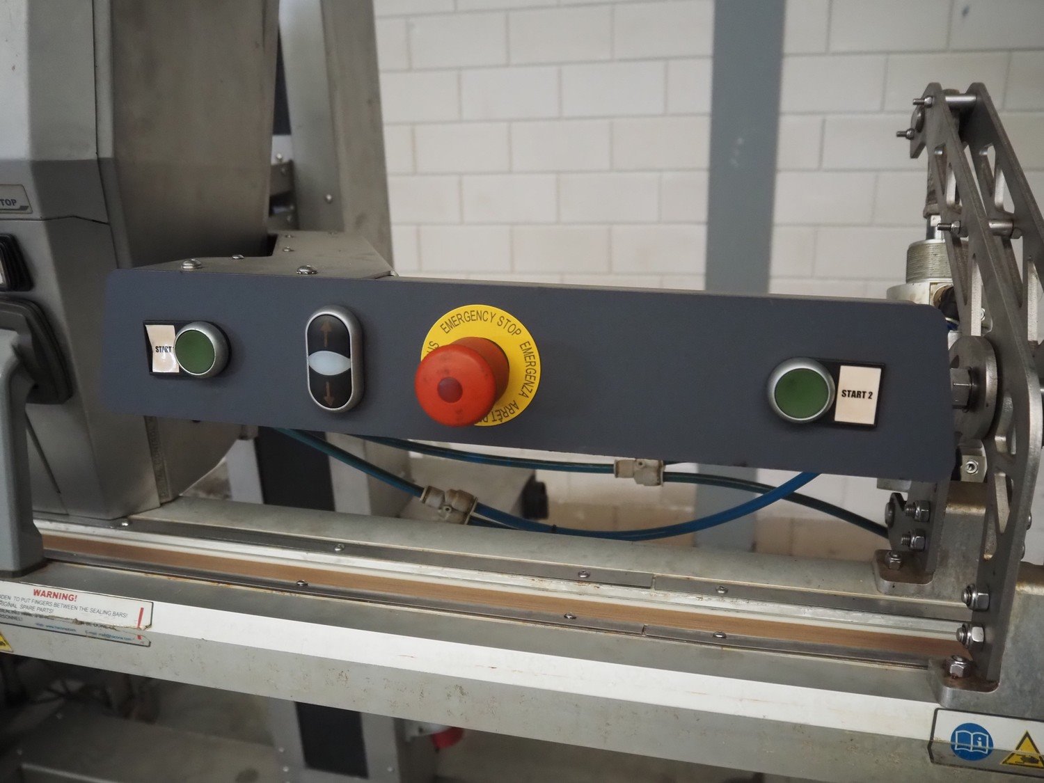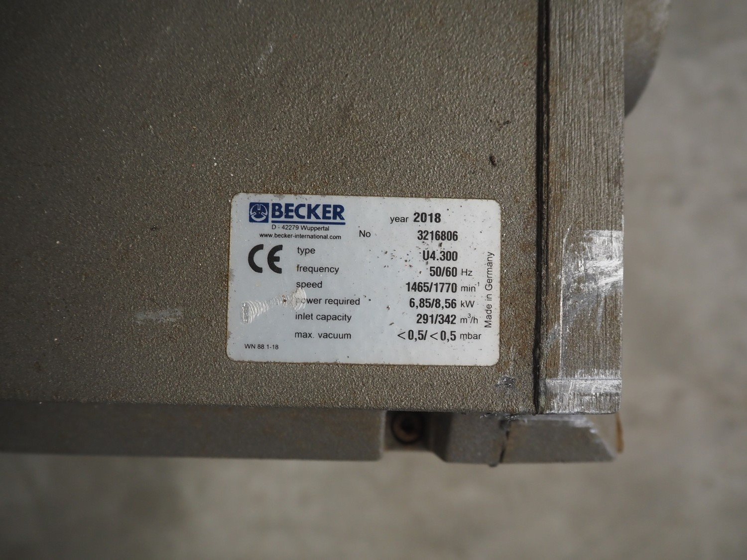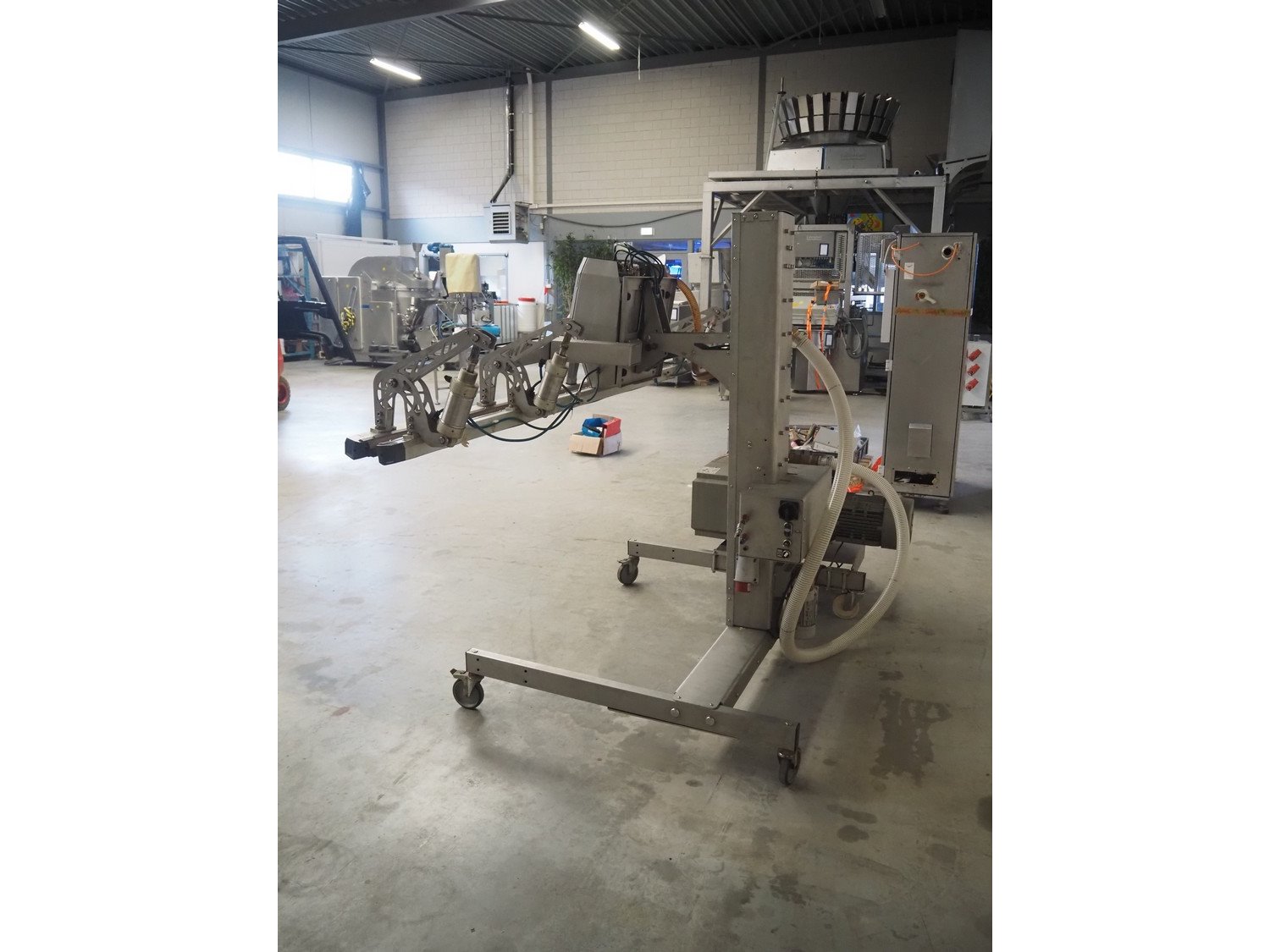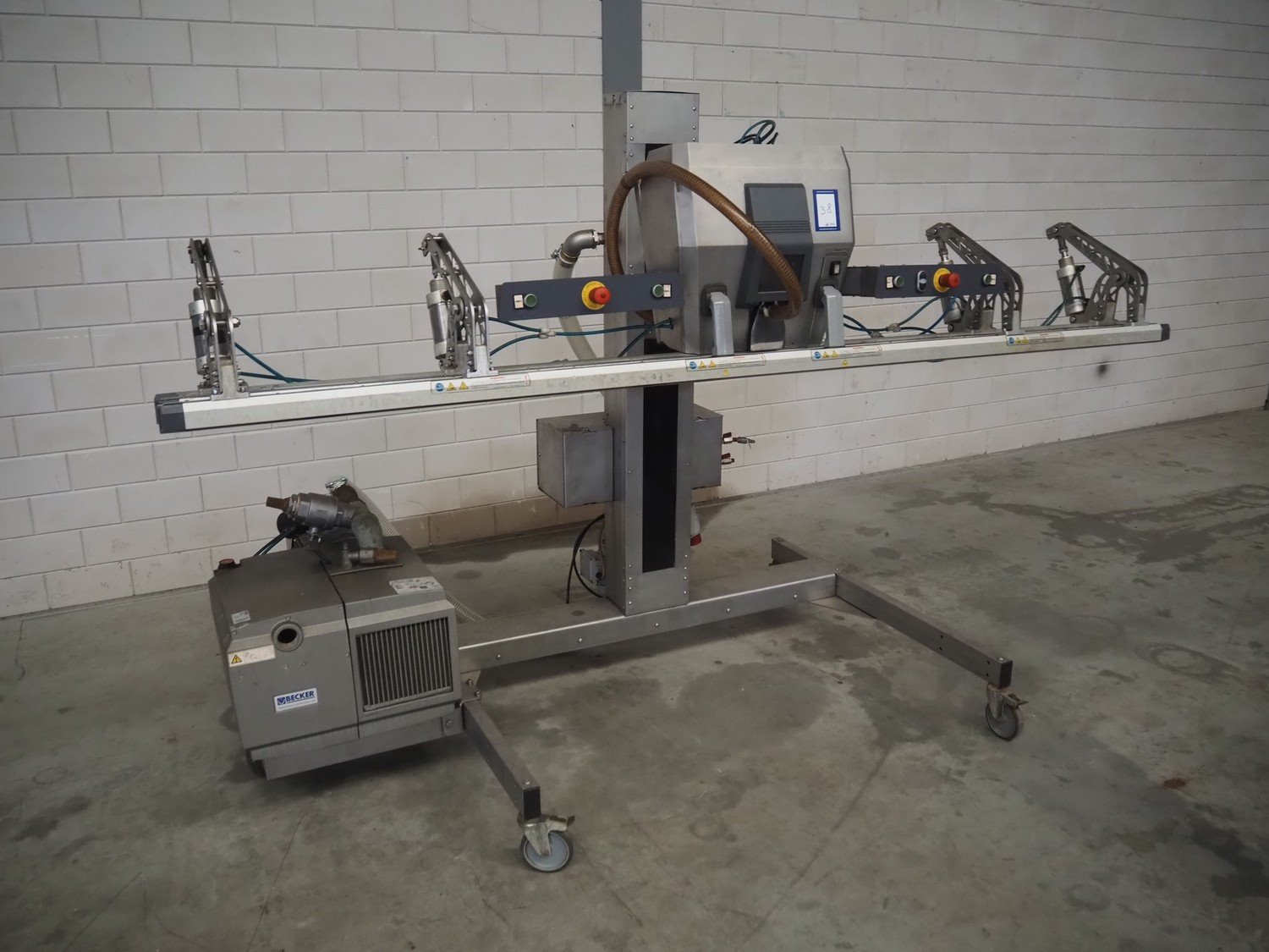 Hacona mobile bag sealing machine, model: V-Type, 230 V, 2500 W, seal length: 2750 mm, Becker vacuum pump, type: U4.300, capacity: 291/342 m³ per hour, total dimensions: 2750 mm x 1400 mm x 1850 mm. With extra seals. Kavel locatie: Makkummerwaard 3, 8321 WV Urk, Nederland
