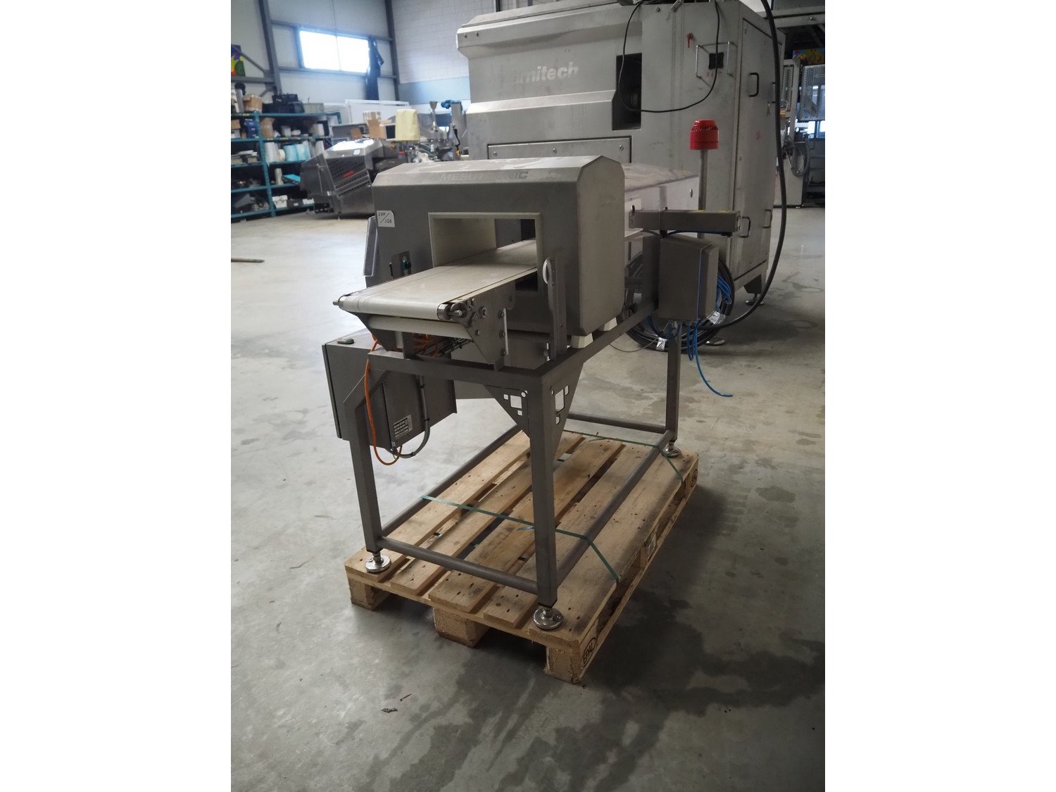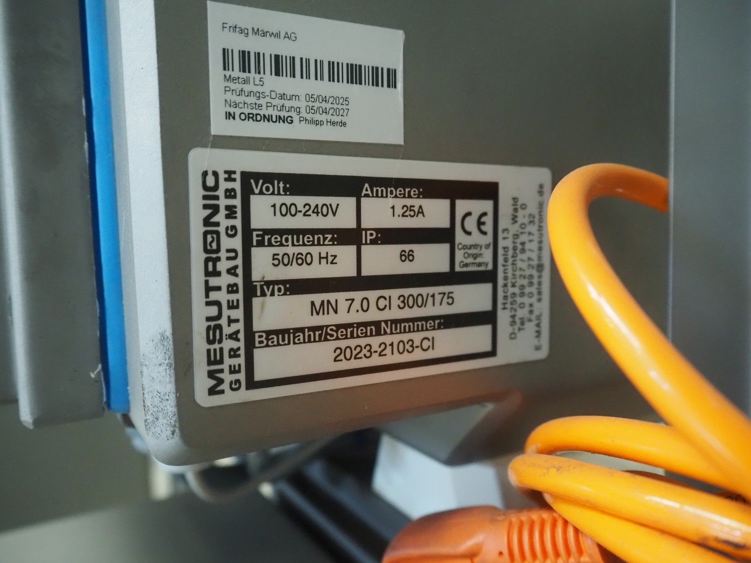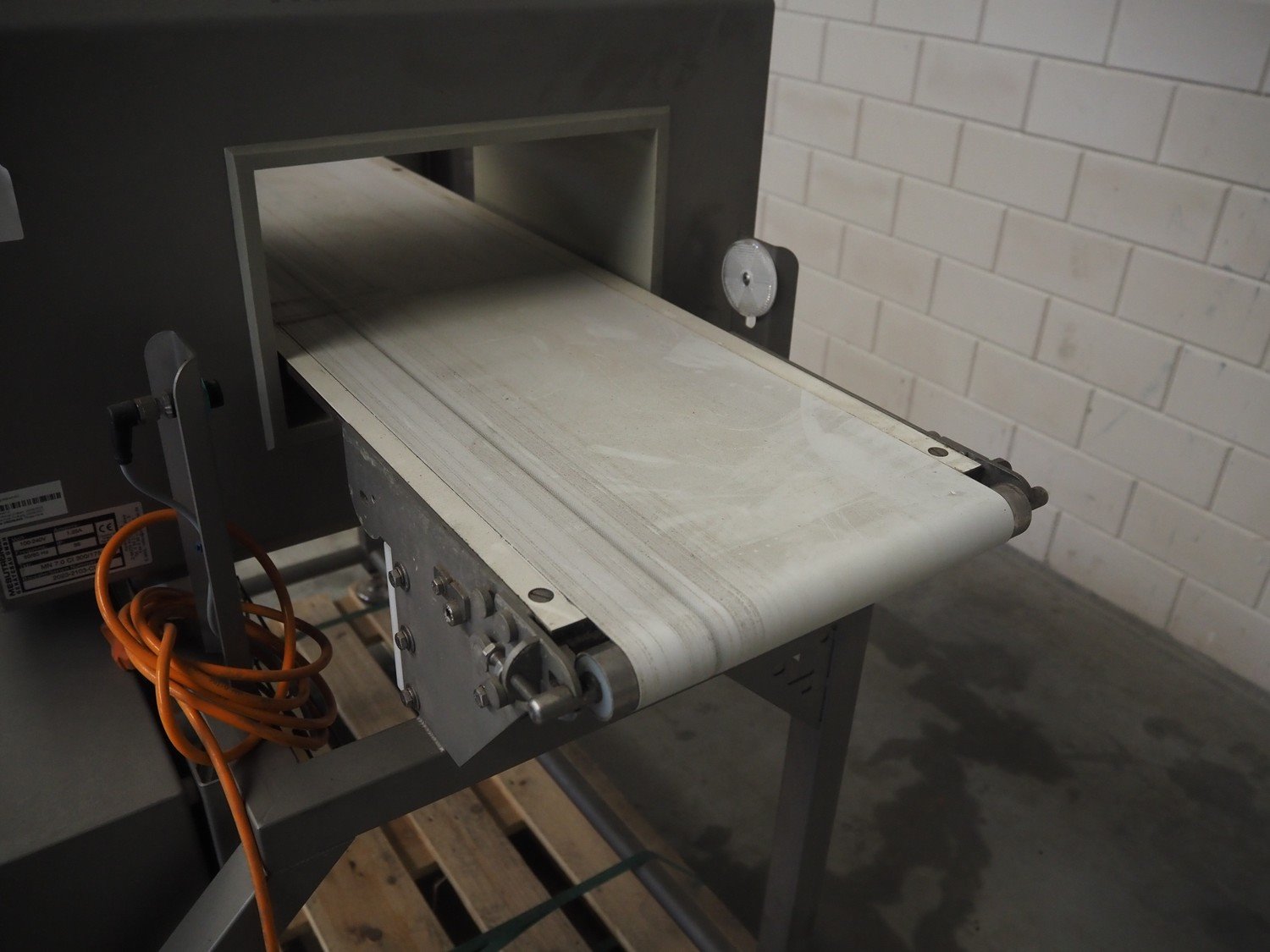 Mesutronic Gerätebau GmbH metal detector with rejector, type: MN 7.0 CI 300/175, serial number: 2103-CI, year of construction: 2023, 100/240 V, 50/60 Hz, 1.25 A, clearance: 300 mm x 125 mm, plastic belt, belt width: 250 mm, total dimensions: 1250 mm x 1000 mm x 1250 mm. Kavel locatie: Makkummerwaard 3, 8321 WV Urk, Nederland