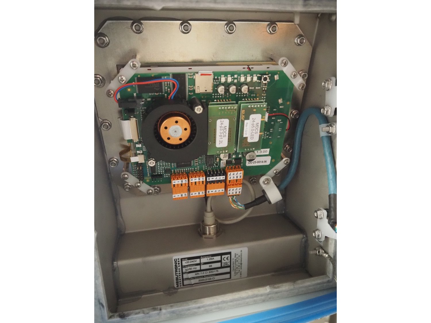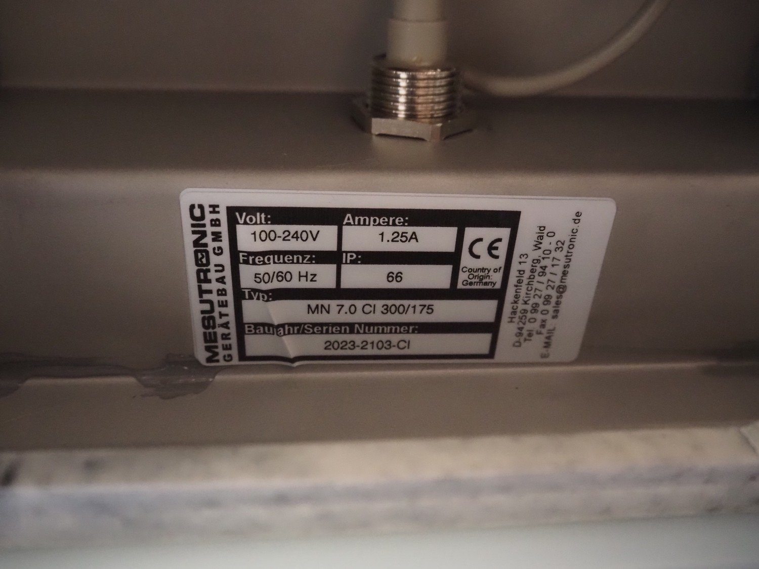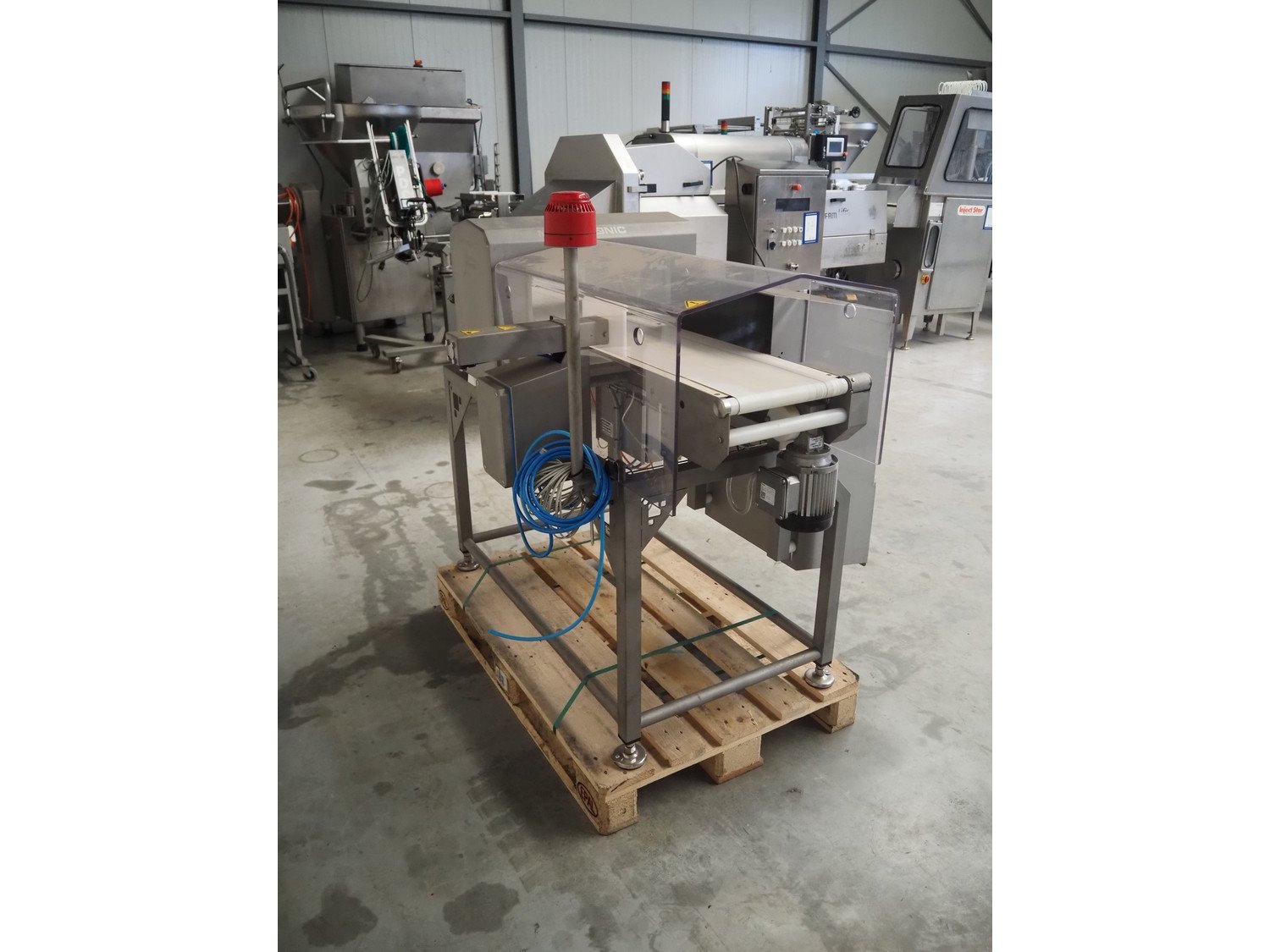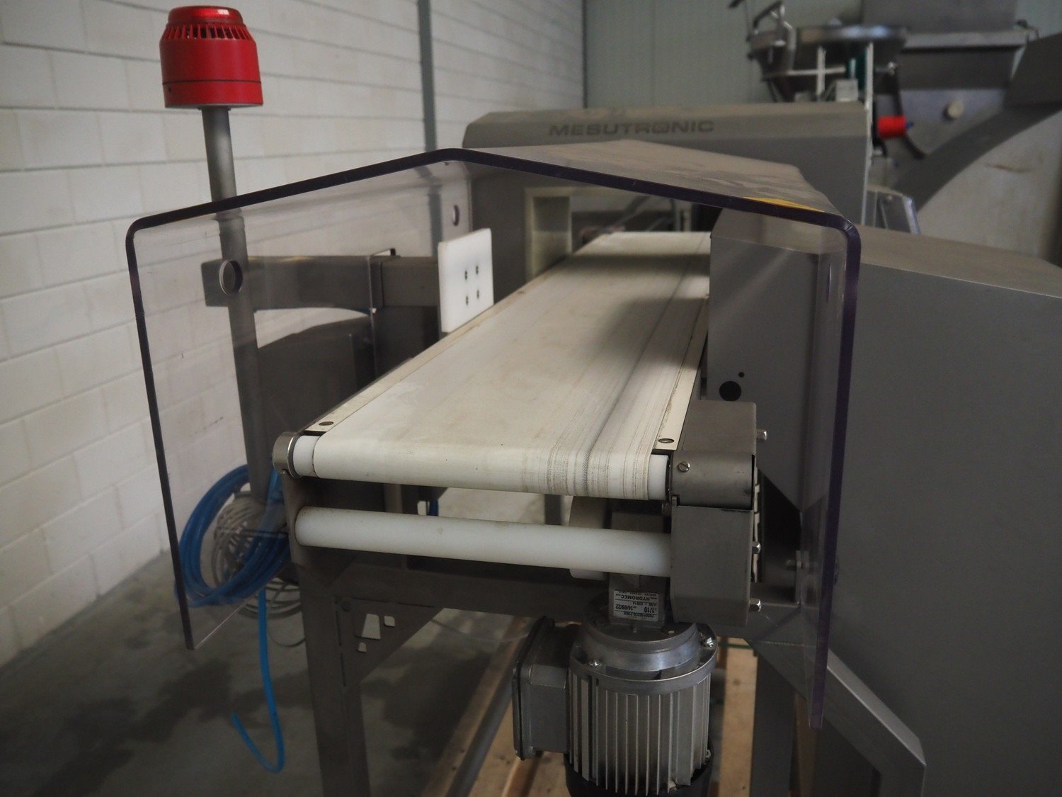 Mesutronic Gerätebau GmbH metal detector with rejector, type: MN 7.0 CI 300/175, serial number: 2103-CI, year of construction: 2023, 100/240 V, 50/60 Hz, 1.25 A, clearance: 300 mm x 125 mm, plastic belt, belt width: 250 mm, total dimensions: 1250 mm x 1000 mm x 1250 mm. Kavel locatie: Makkummerwaard 3, 8321 WV Urk, Nederland