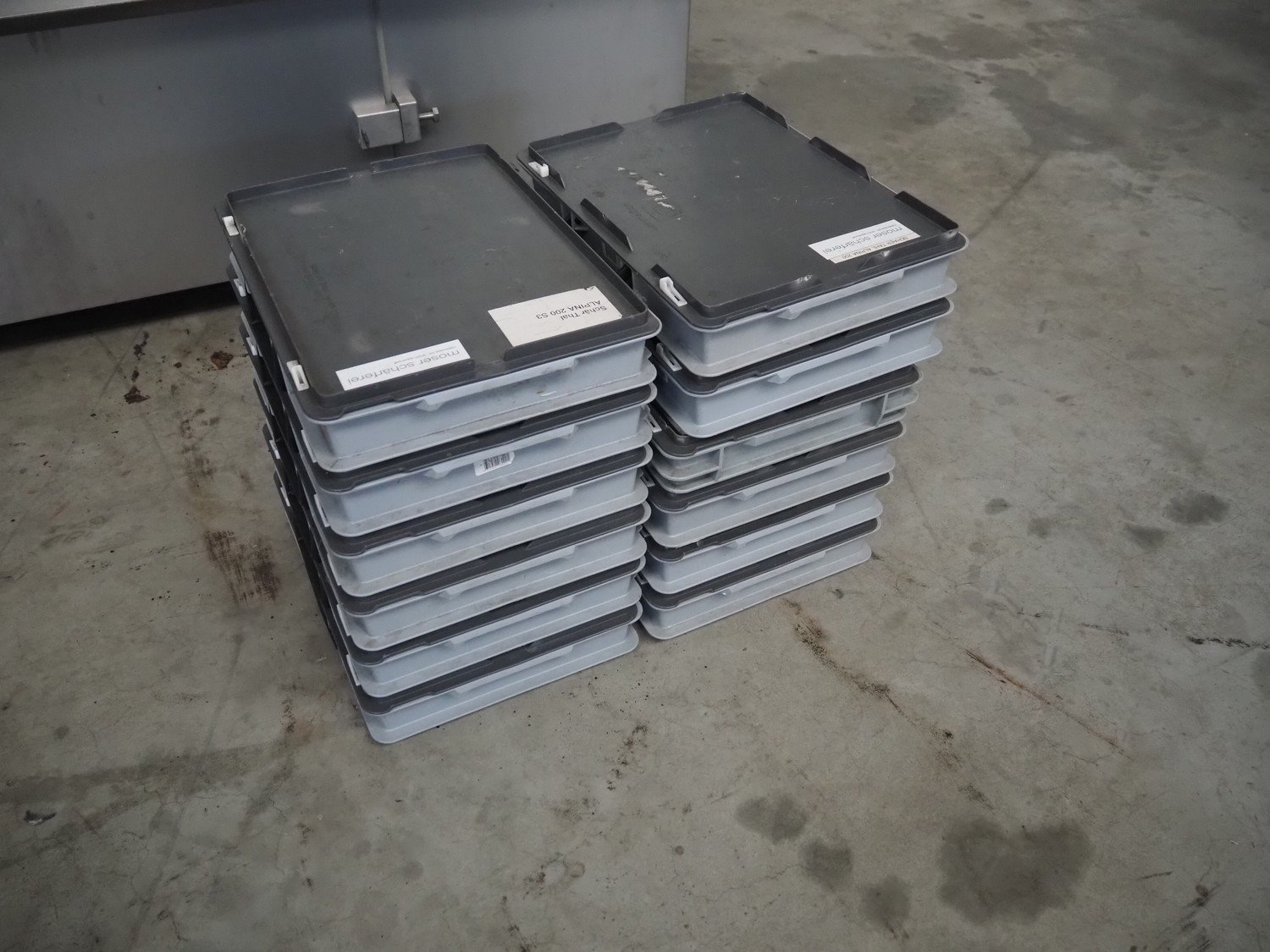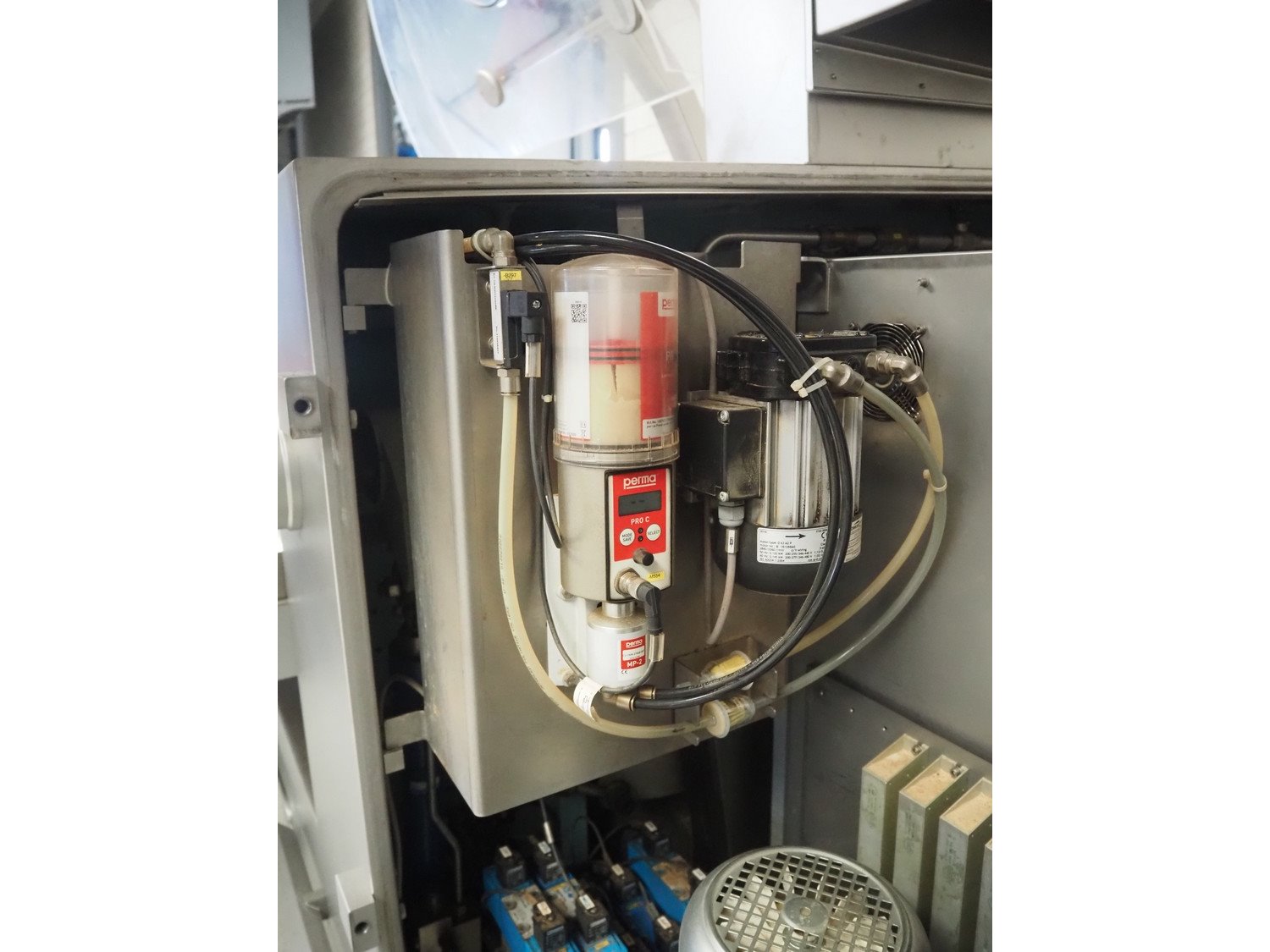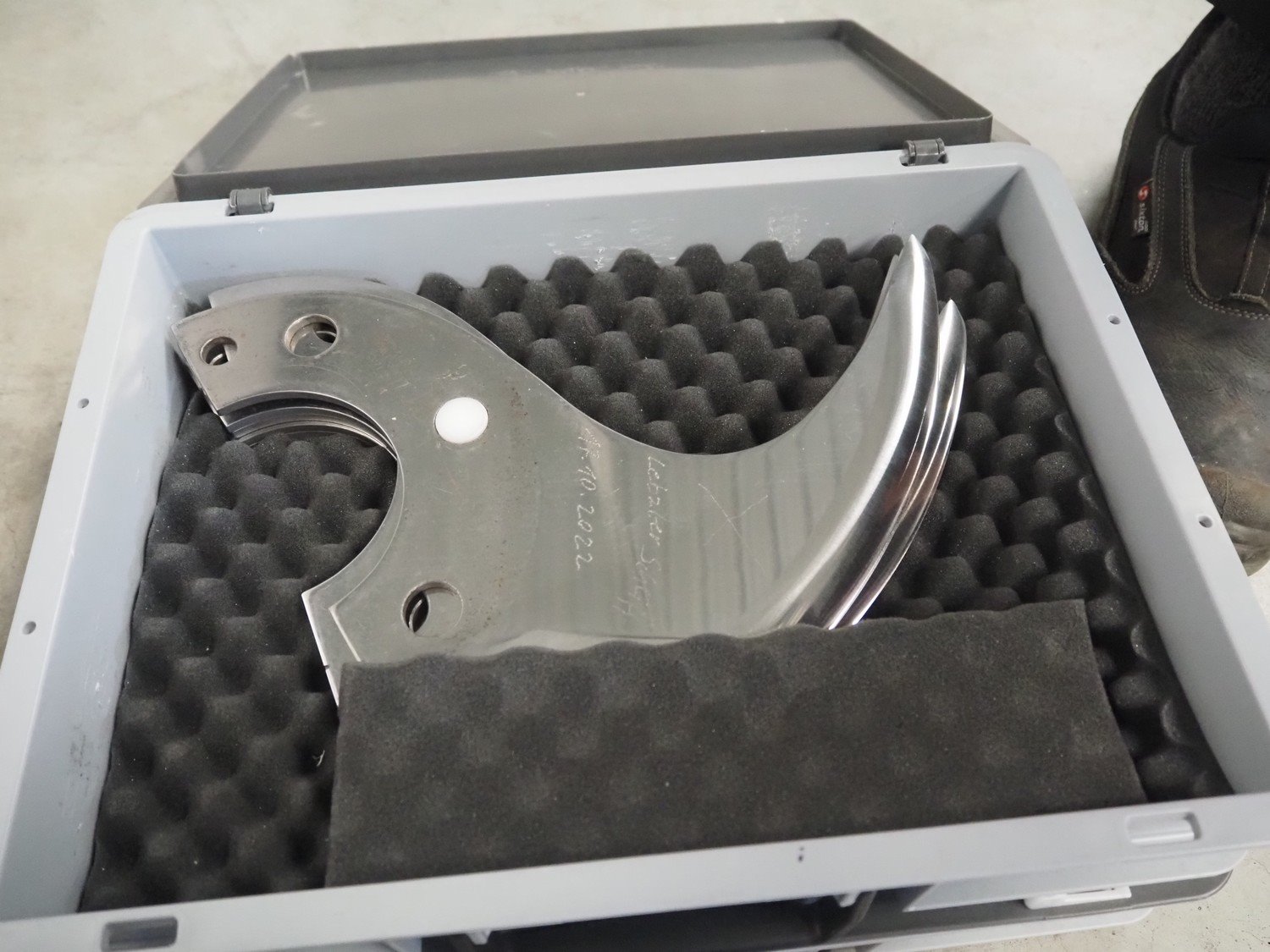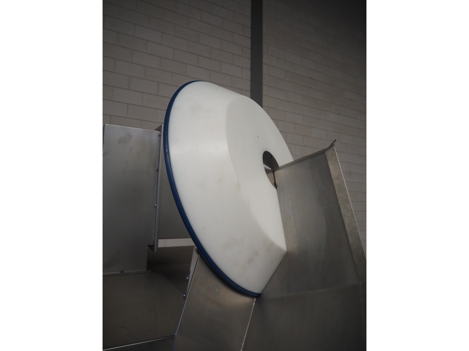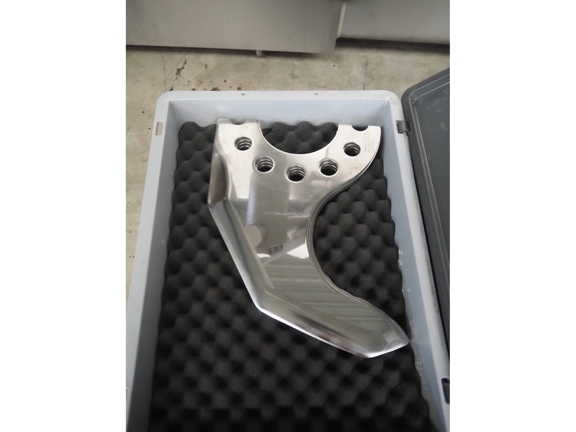 Tipper Tie Alpina GmbH cutter with lifter for 200 liter meat bins and ejector, model: TTChop20, serial number: 872.010, year of construction: 2015, 400 V, 3 Ph, 50 Hz, 180/220/250, 98 kW, weight: 4100 kg, s/s bowl, volume: 200 liter, dimensions: 3250 mm x 2600 mm x 2200 mm. Including 12 extra knife sets. Kavel locatie: Makkummerwaard 3, 8321 WV Urk, Nederland
