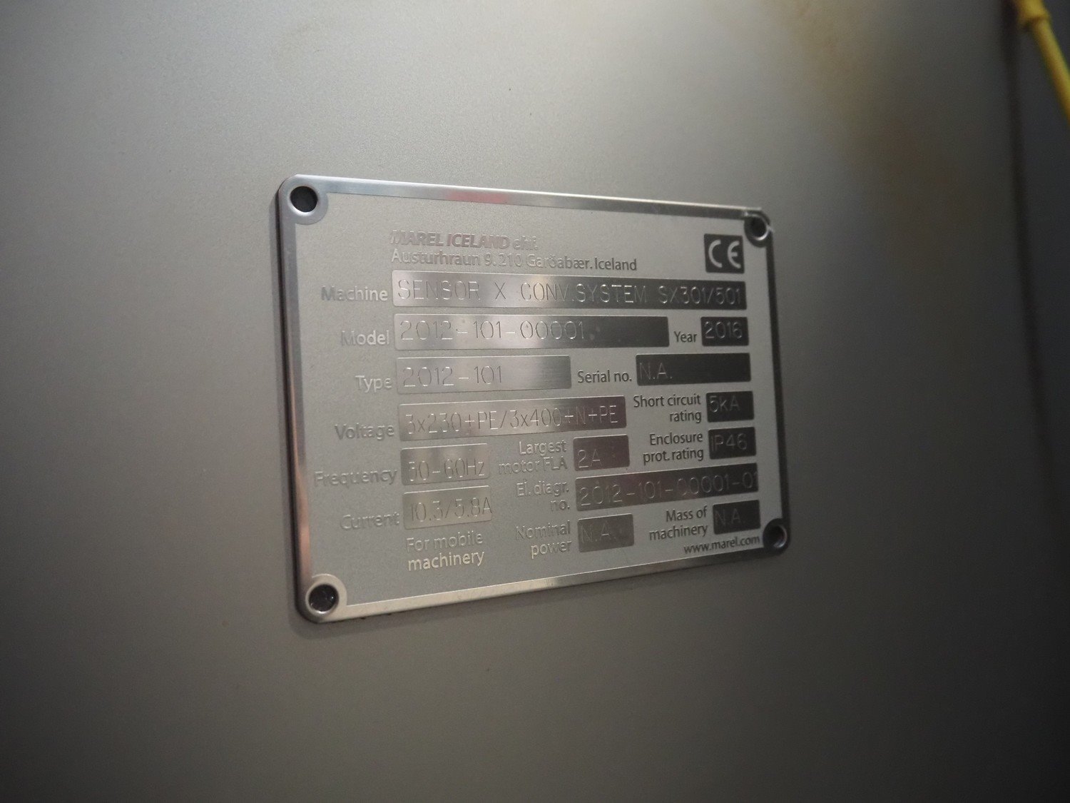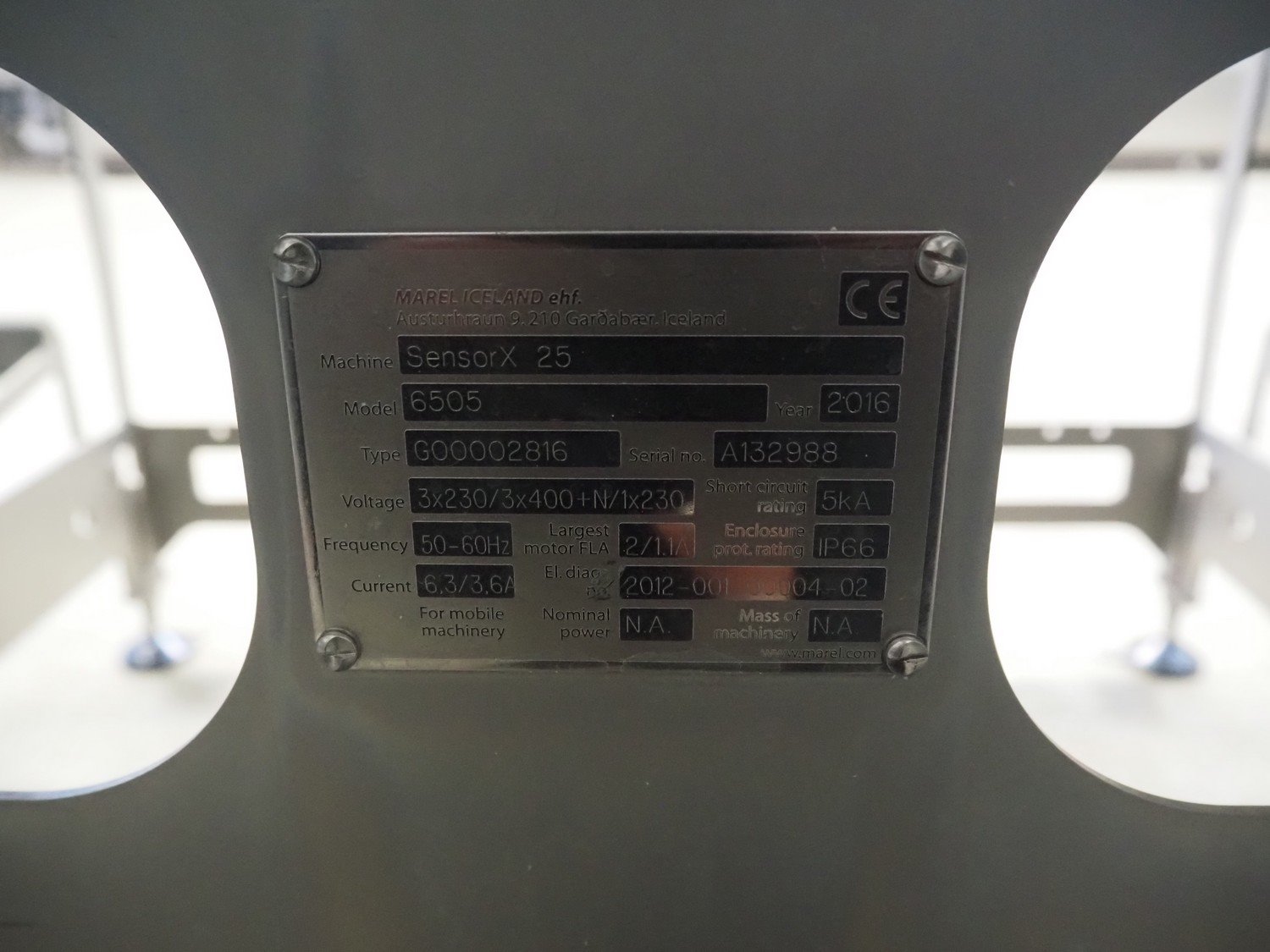 Marel bone detection system, model: 6505, type: G00002816, serial number: A132988, year of construction: 2016, 230/400 V, 3 Ph, 50/60 Hz, 6.3/3.6 A, working width: 500 mm, plastic belts, belt width: 500 mm, total dimensions: 3360 mm x 990 mm x 2010 mm. Including extra belts and parts. Kavel locatie: Makkummerwaard 3, 8321 WV Urk, Nederland