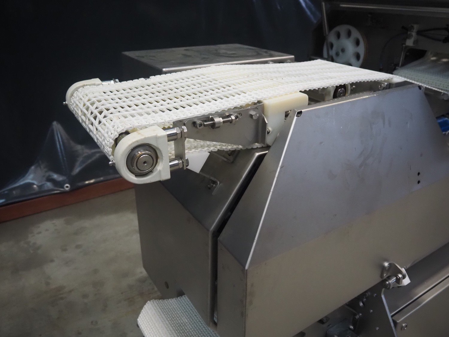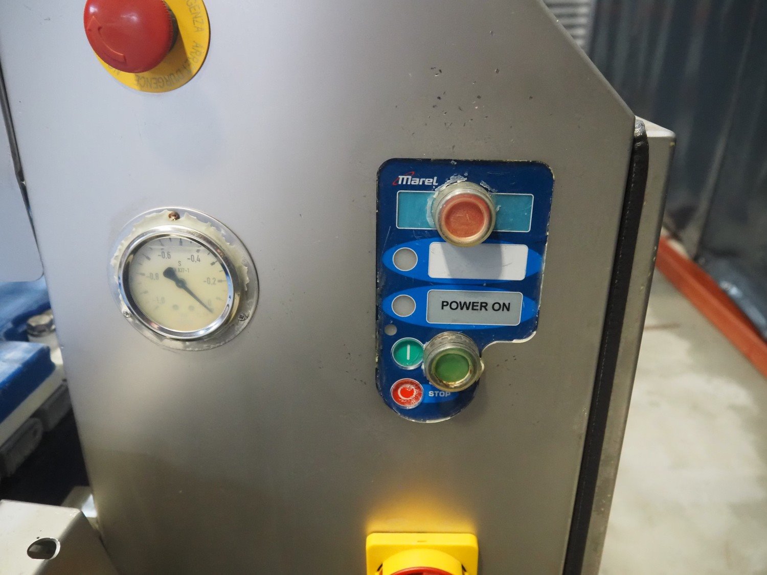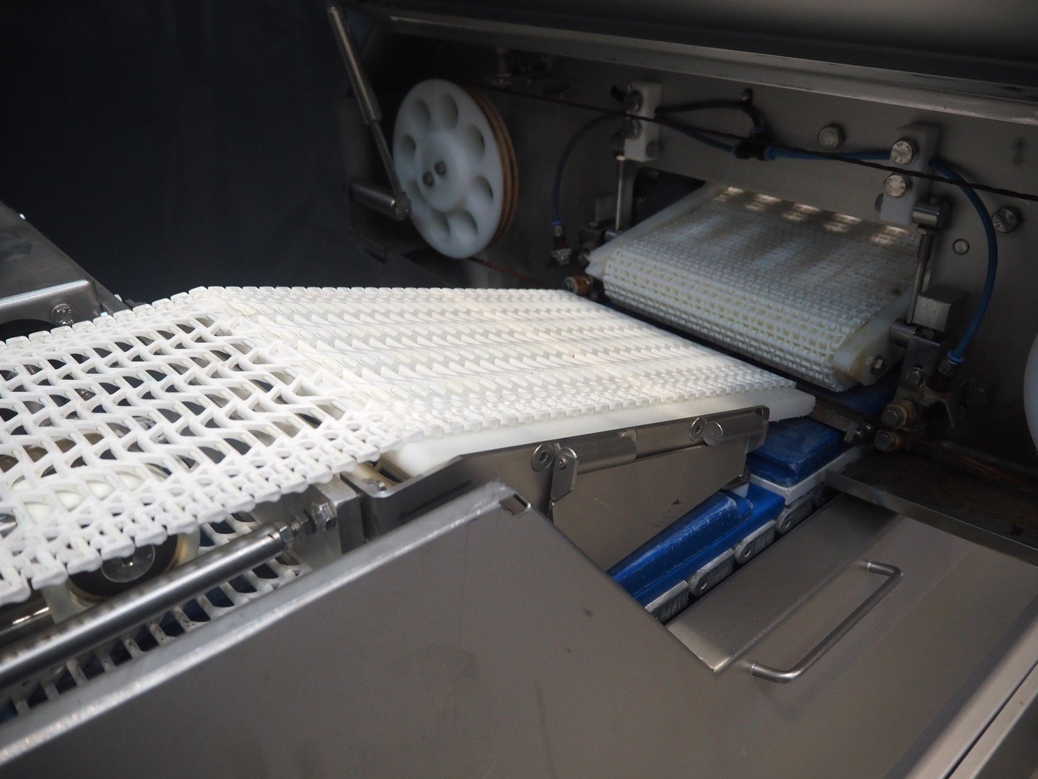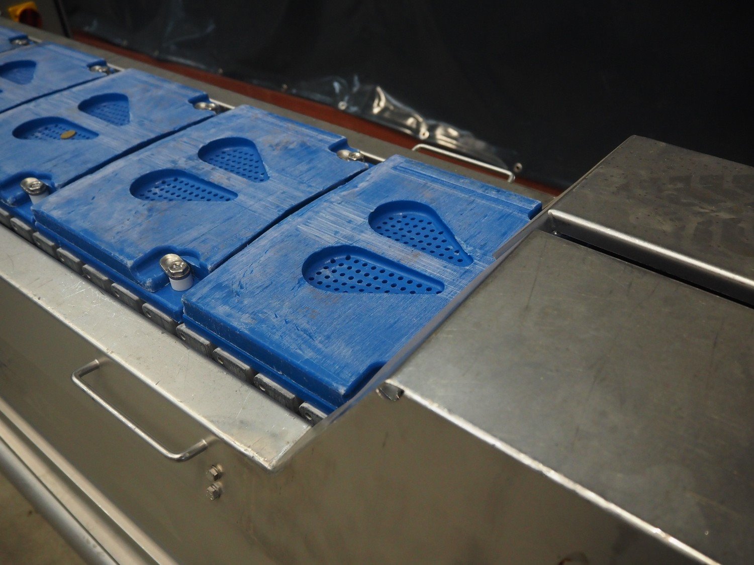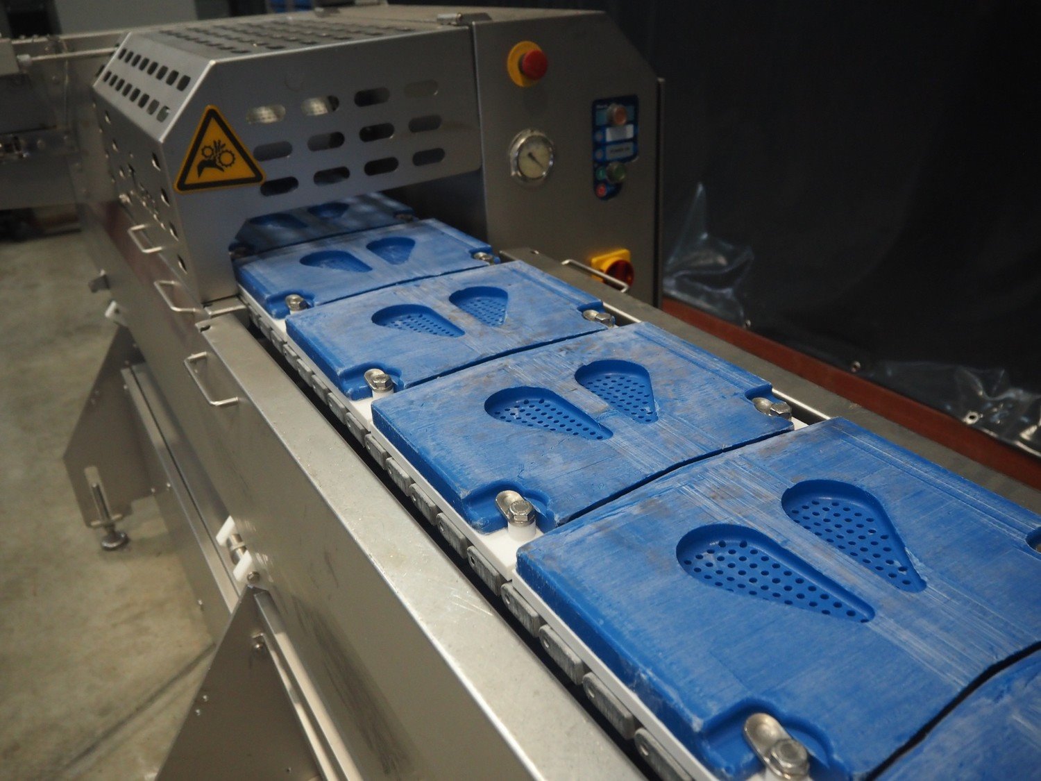Marel template slicer, type: TSM2 C165, serial number: A025579, year of construction: 2004, 230/400 V, 3 Ph, 16 A, 3 kW, plastic mesh belts, belt width: 250 mm, Busch vacuum pump, type: LC 0060 A, capacity: 55 m³ per hour, total dimensions: 3900 mm x 920 mm x 1340 mm. Including trolley with extra plates, dimensions: 740 mm x 530 mm x 1500 mm. Kavel locatie: Makkummerwaard 3, 8321 WV Urk, Nederland