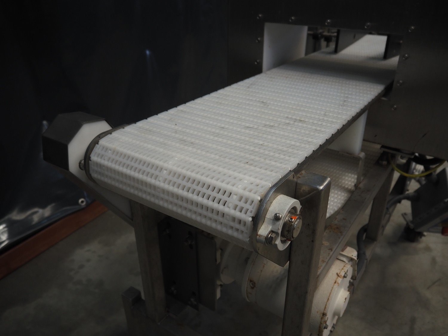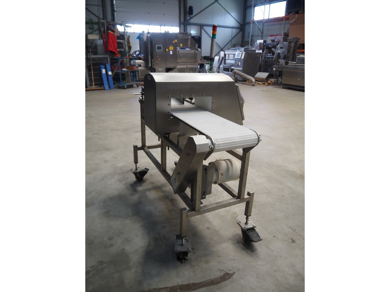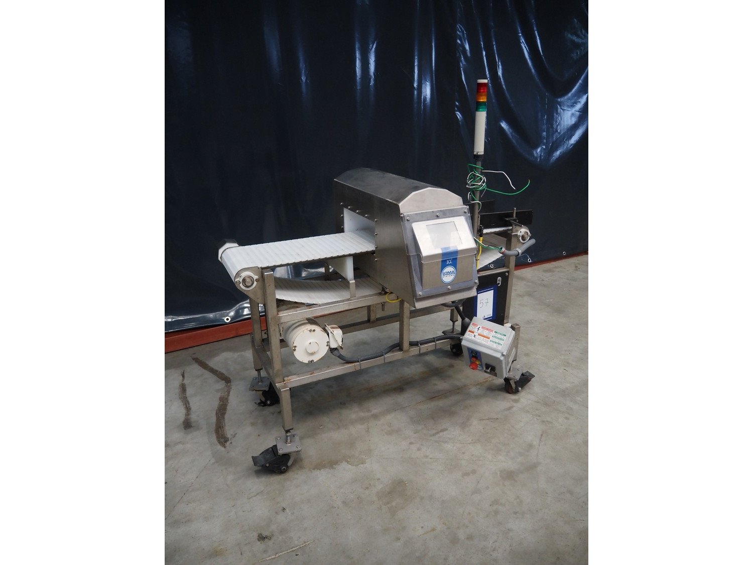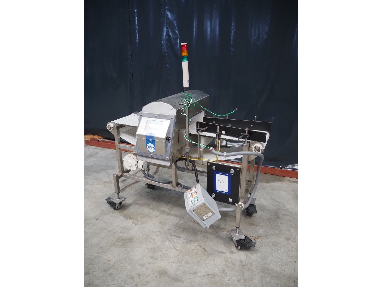 Loma mobile metal detector, model: IQ², year of construction: 06/2012, 110 V, 1 Ph, 60 Hz, clearance: 350 mm x 120 mm, plastic mesh belt, belt width: 305 mm, total dimensions: 1550 mm x 850 mm x 1615 mm. Kavel locatie: Makkummerwaard 3, 8321 WV Urk, Nederland