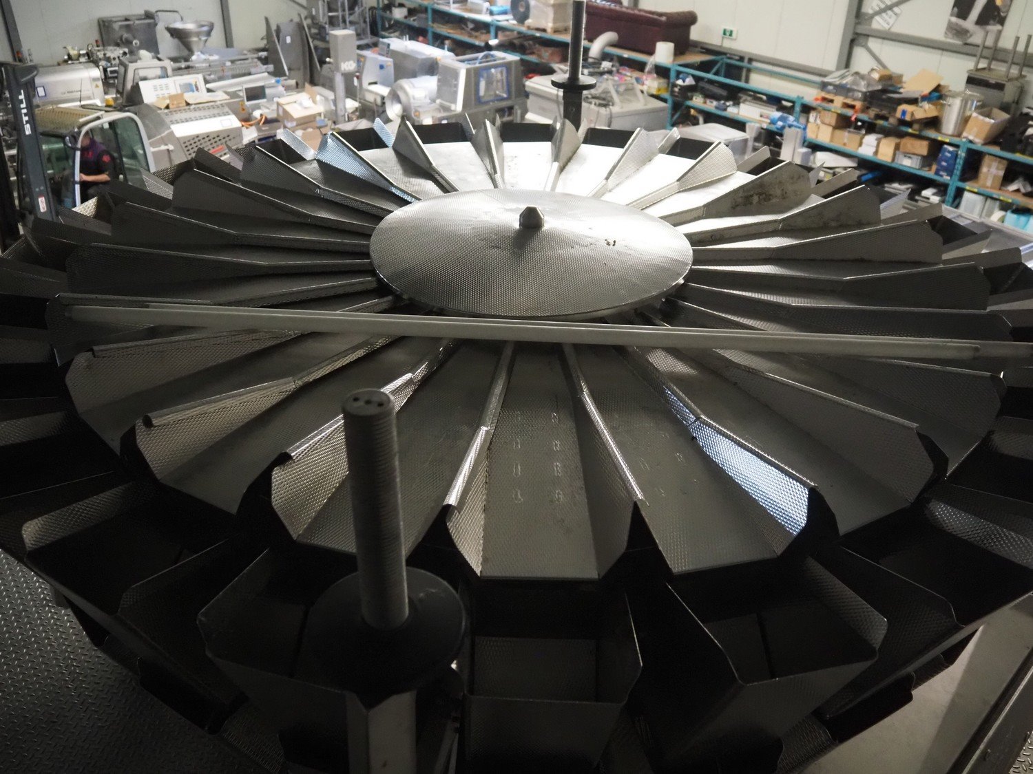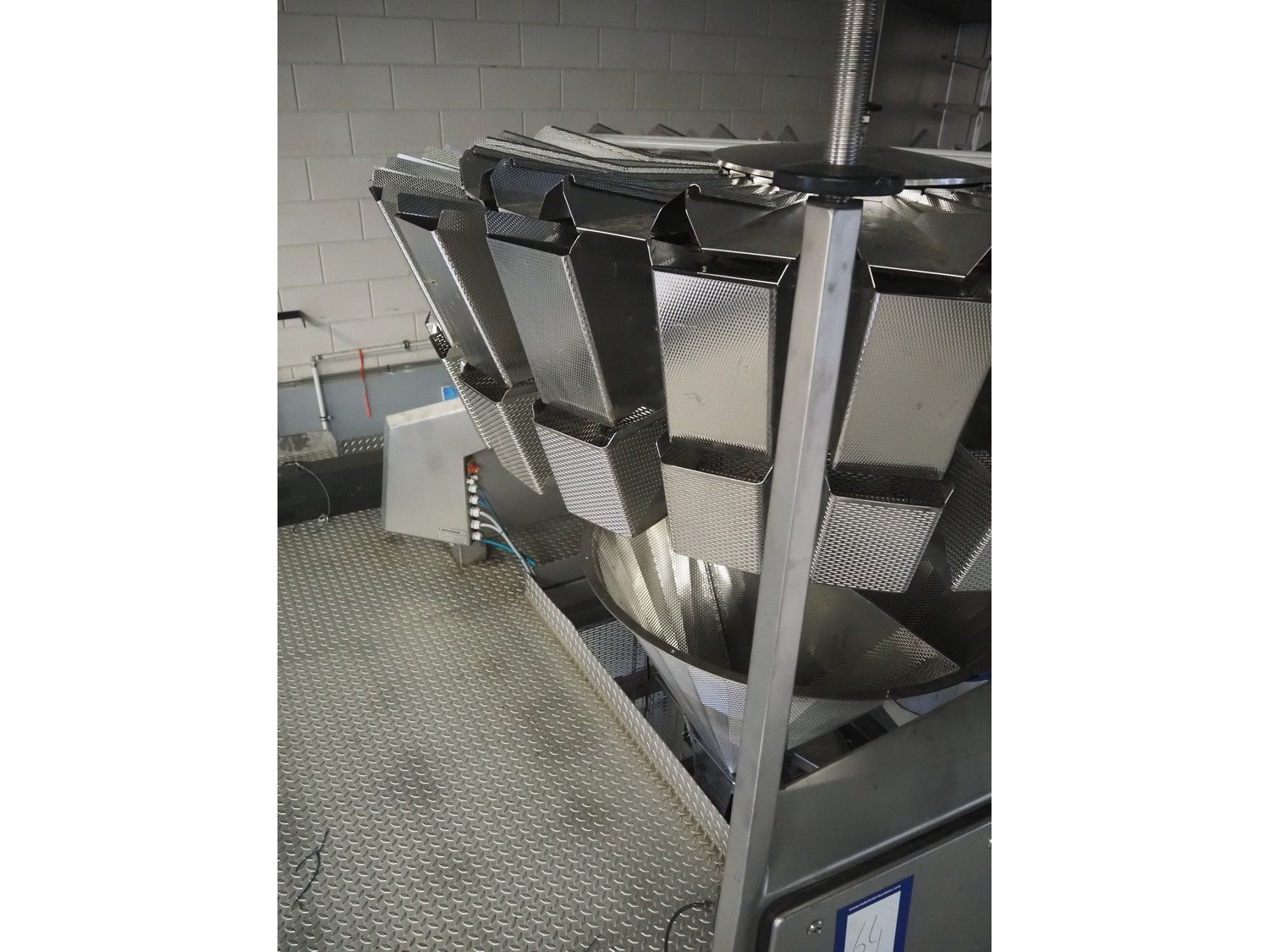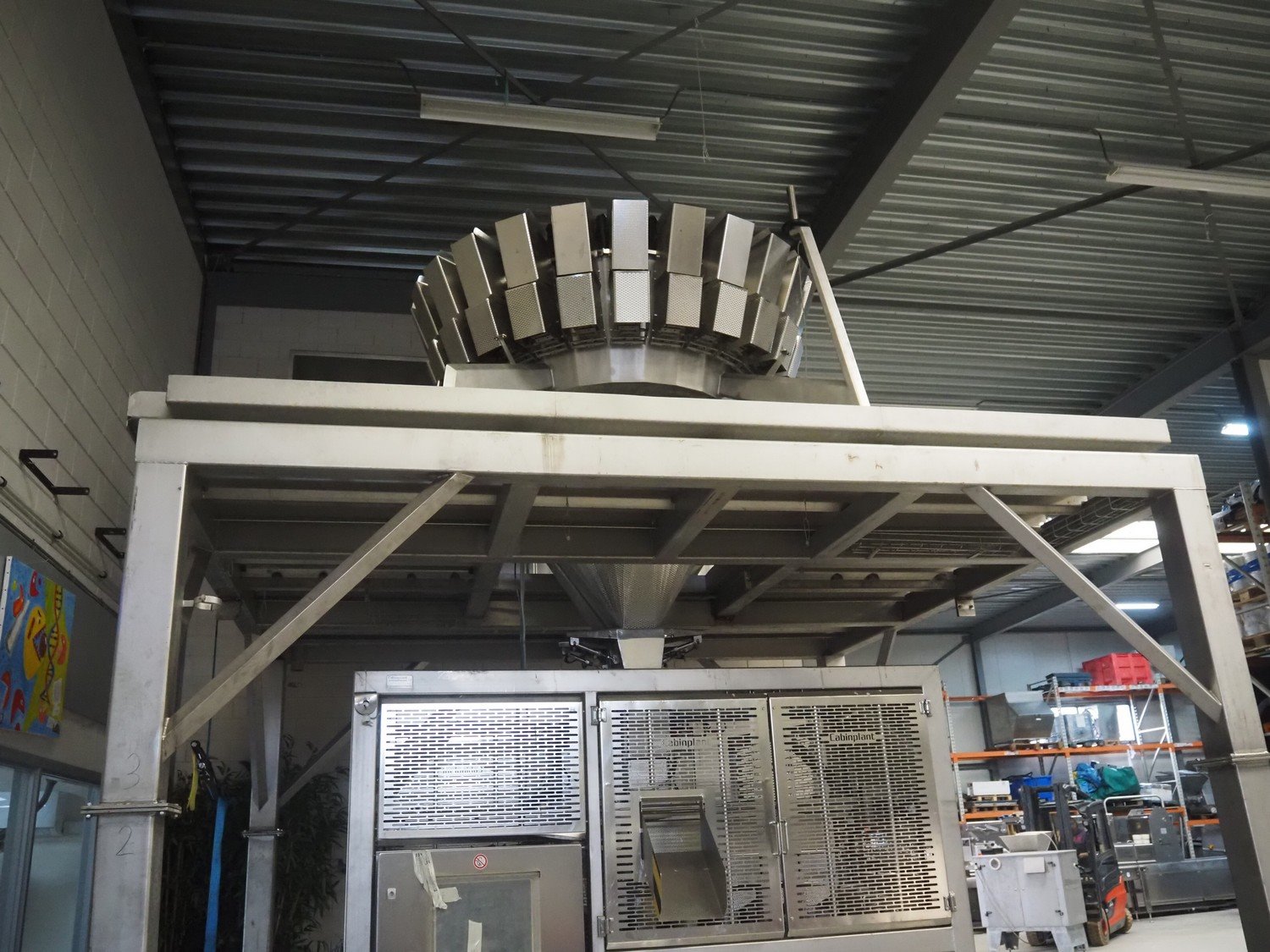 Cabinplant 24 heads multihead weigher, type: MHW 40-24, year of construction: 2016, weight: 1100 kg, dimensions: 2300 mm x 2400 mm x 2500 mm. Without display. Kavel locatie: Makkummerwaard 3, 8321 WV Urk, Nederland