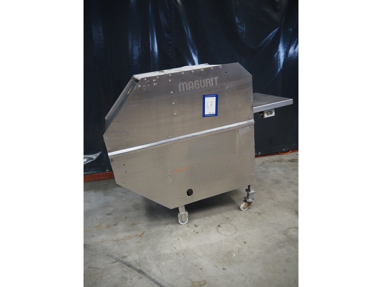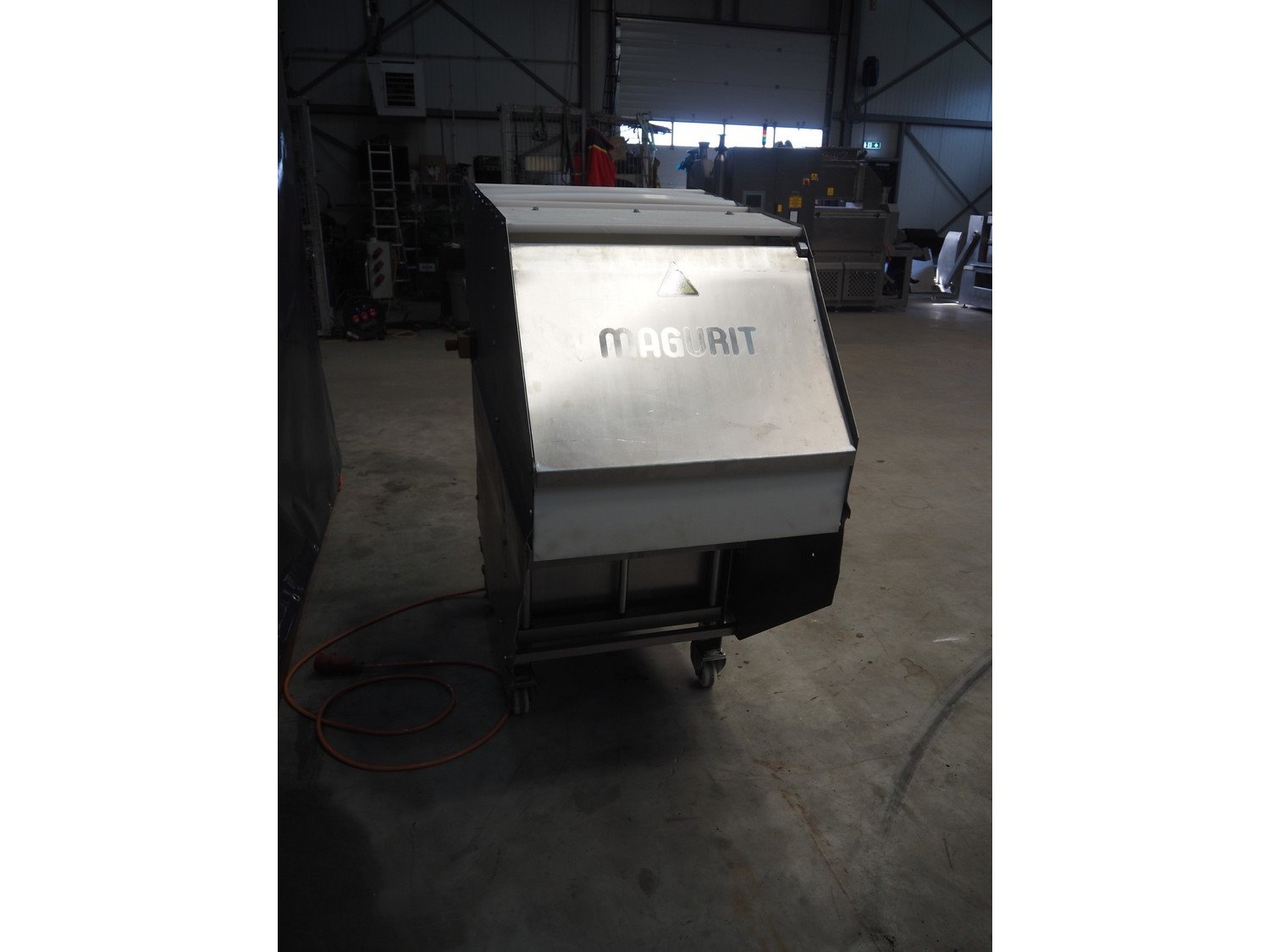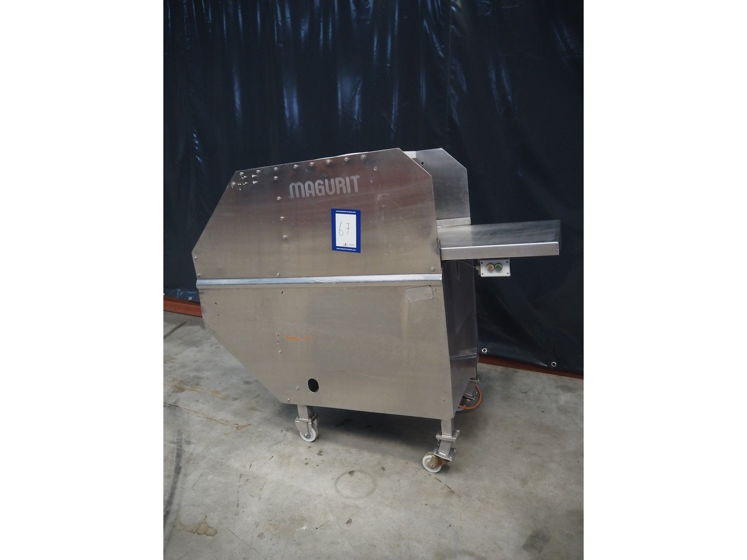 Magurit mobile frozen block cutter, type: 152, machine number: 2091, year of construction: 1997, 380 V, working width: 450 mm, distance between dividers: 100 mm, total dimensions: 1840 mm x 700 mm x 1580 mm. Kavel locatie: Makkummerwaard 3, 8321 WV Urk, Nederland