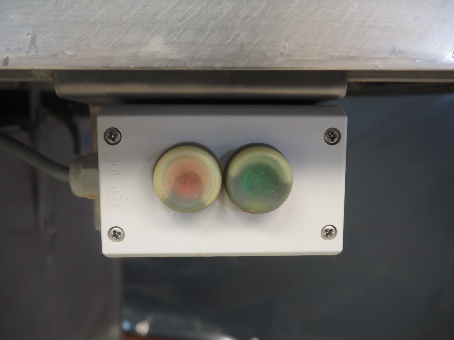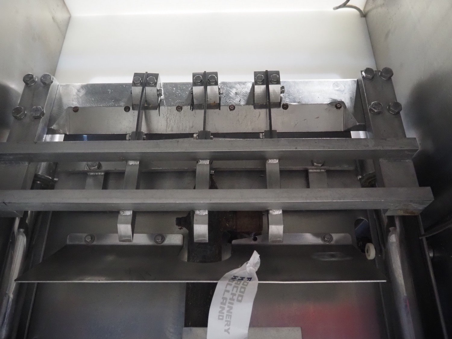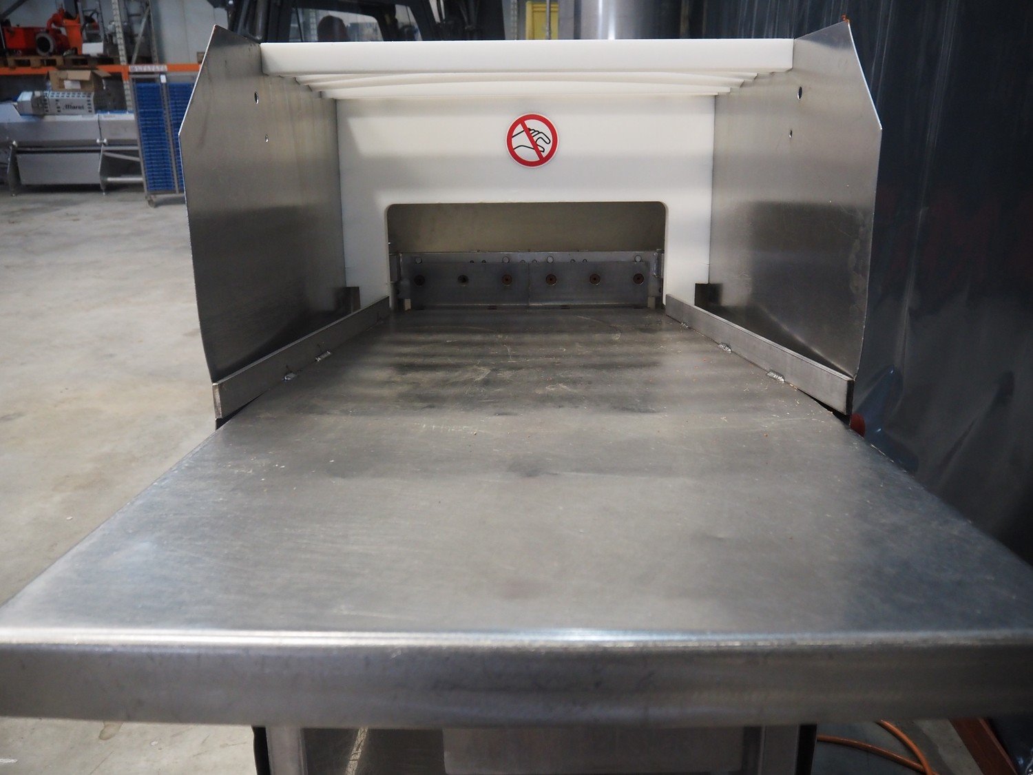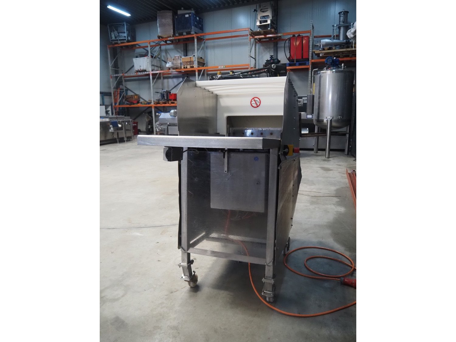Magurit mobile frozen block cutter, type: 152, machine number: 2091, year of construction: 1997, 380 V, working width: 450 mm, distance between dividers: 100 mm, total dimensions: 1840 mm x 700 mm x 1580 mm. Kavel locatie: Makkummerwaard 3, 8321 WV Urk, Nederland