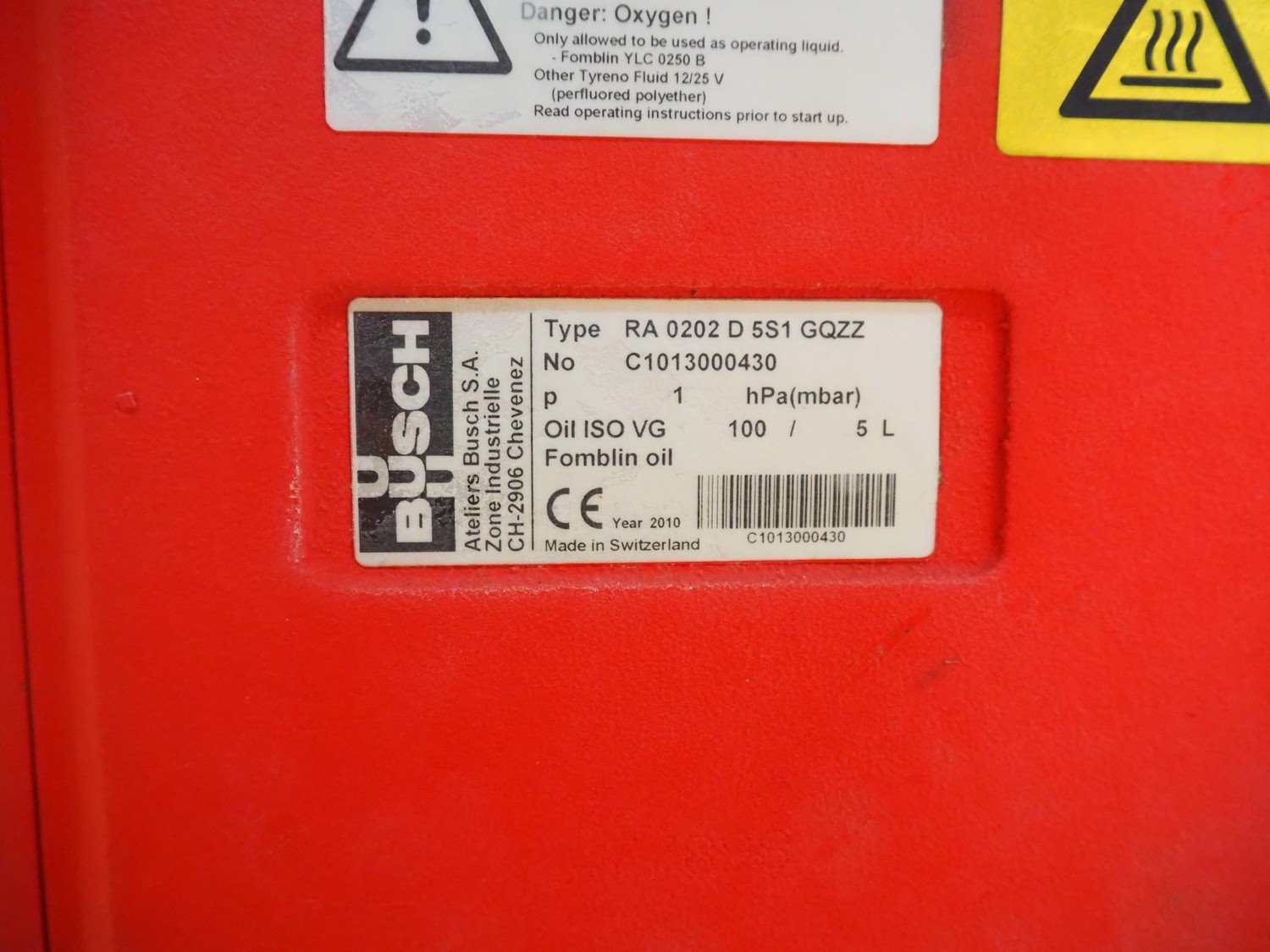 Busch vacuum pump, type: RA 0202 D 5S1 GQZZ, number: C1013000430, year of construction: 2010, capacity: 200 m³ per hour, dimensions: 1200 mm x 600 mm x 700 mm. Kavel locatie: Makkummerwaard 3, 8321 WV Urk, Nederland