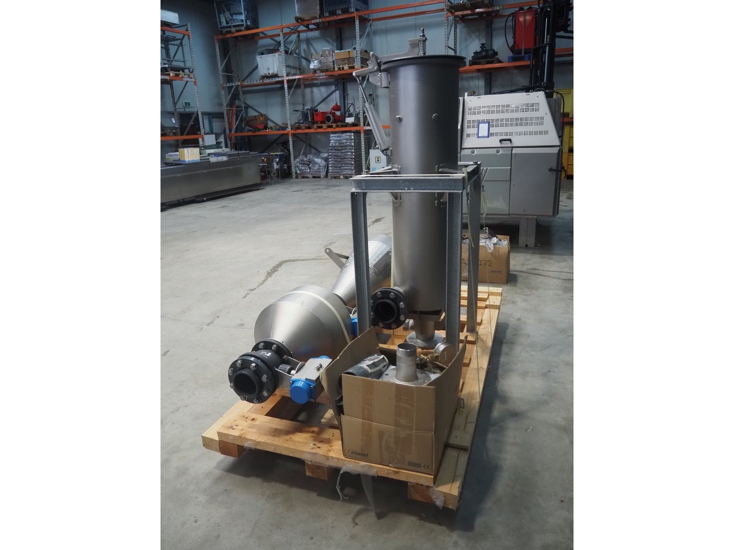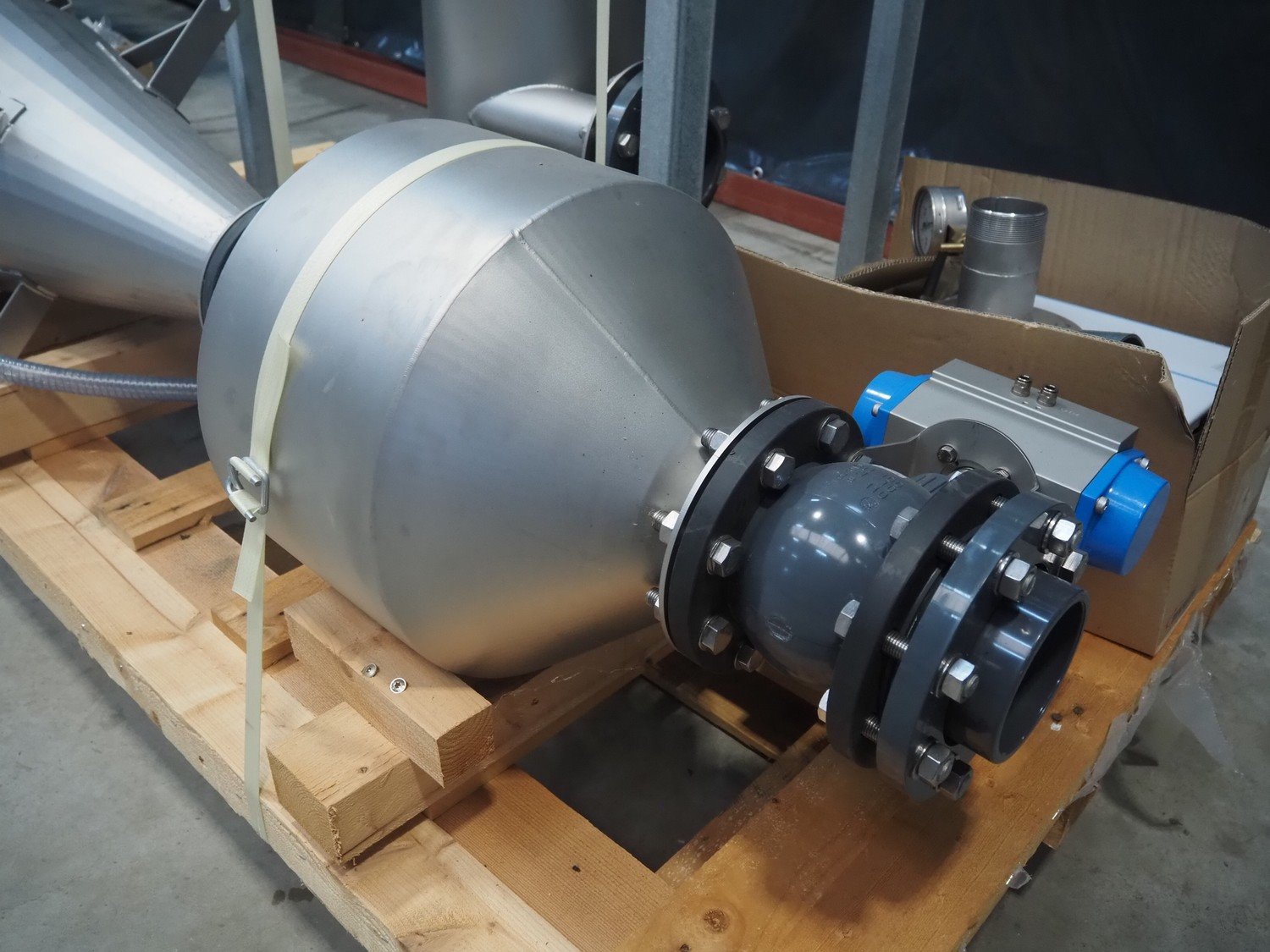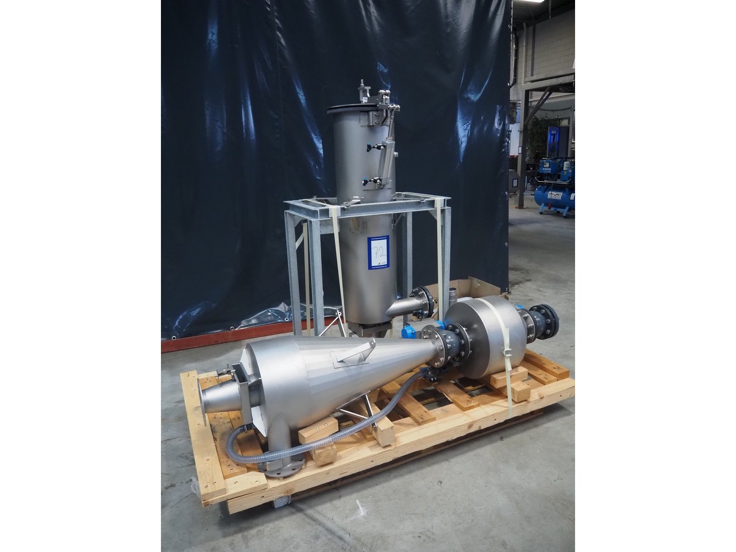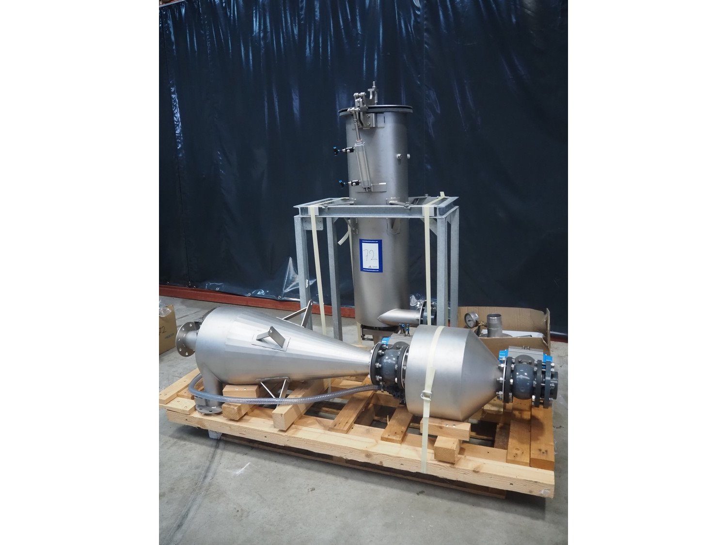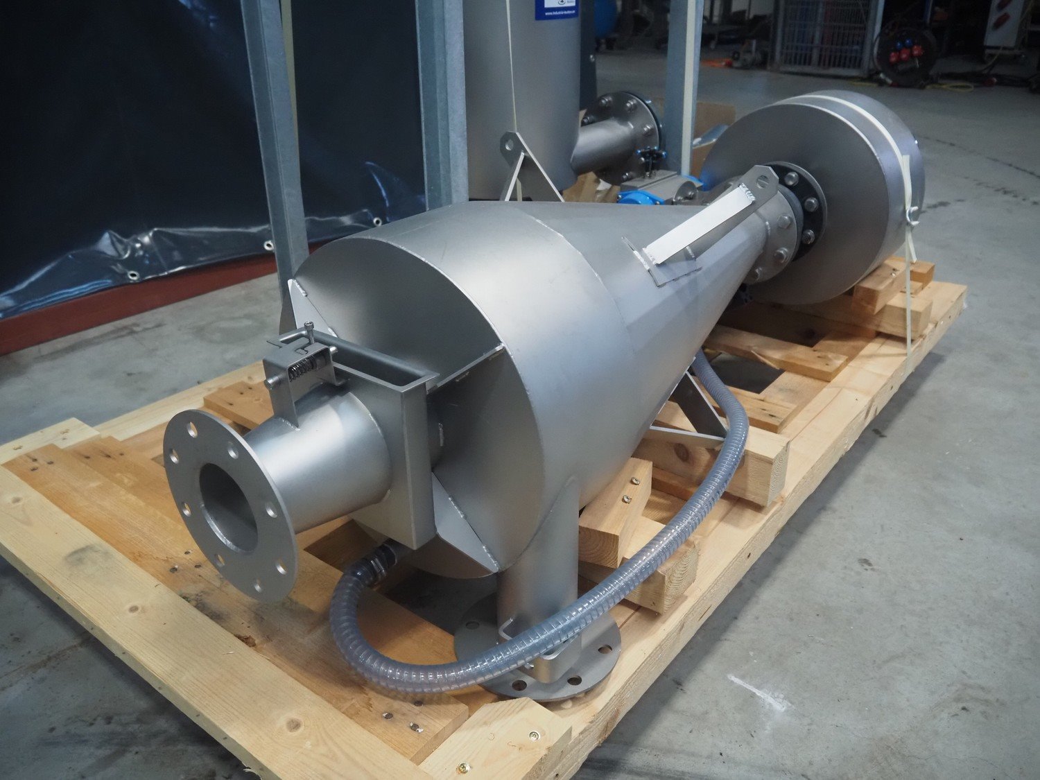 Marel cyclone, dimensions: (1x) Ø 500 mm x 2200 mm, (1x) 900 mm x 500 mm x 1700 mm. Kavel locatie: Makkummerwaard 3, 8321 WV Urk, Nederland