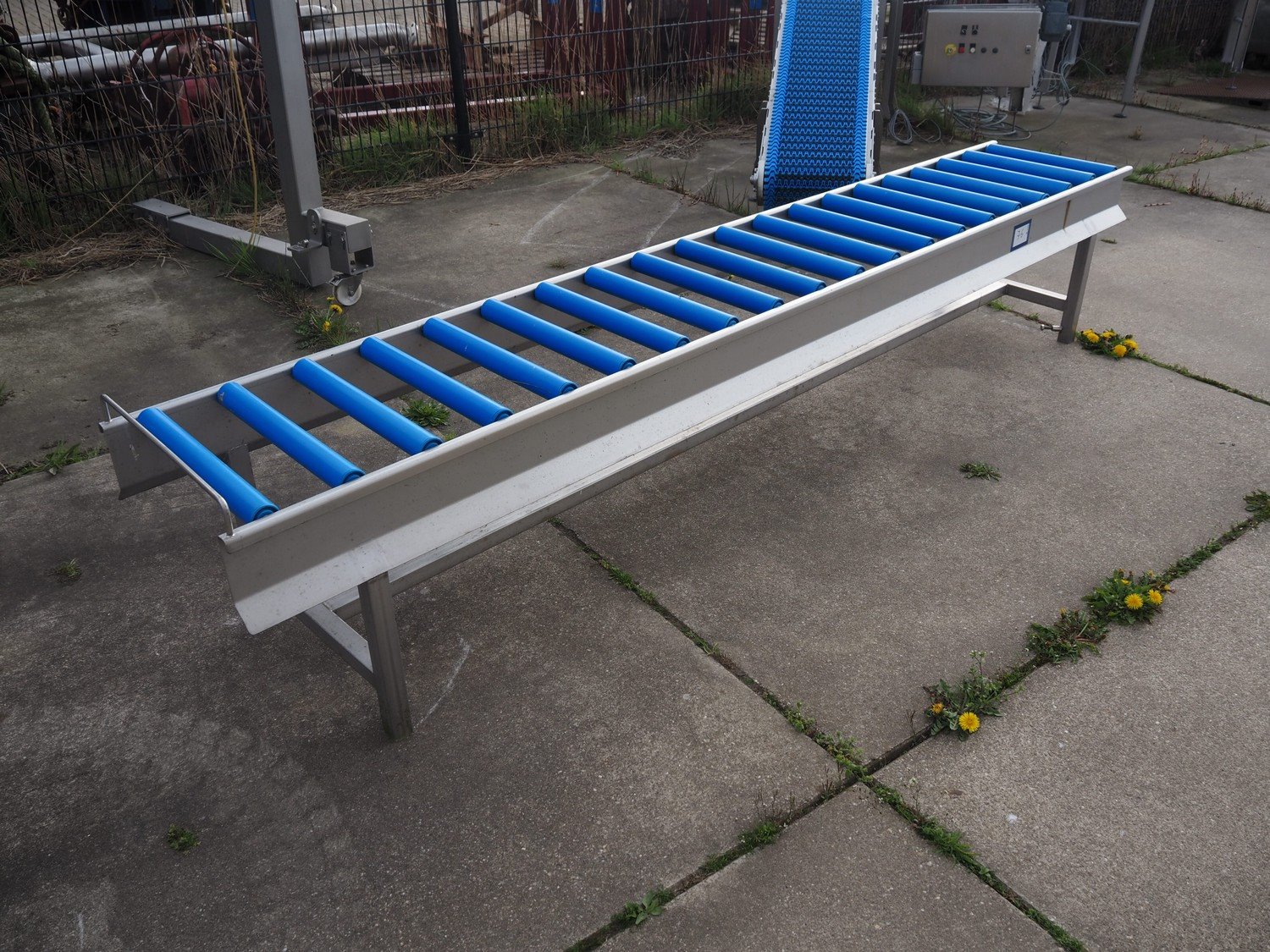 Roller conveyor, s/s frame, plastic rollers, roller width: 450 mm, total dimensions: 3000 mm x 520 mm x 580 mm. Kavel locatie: Makkummerwaard 3, 8321 WV Urk, Nederland