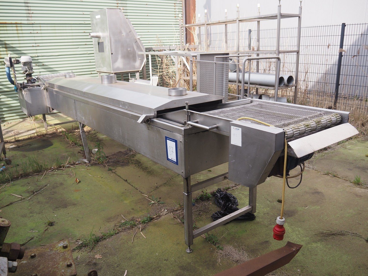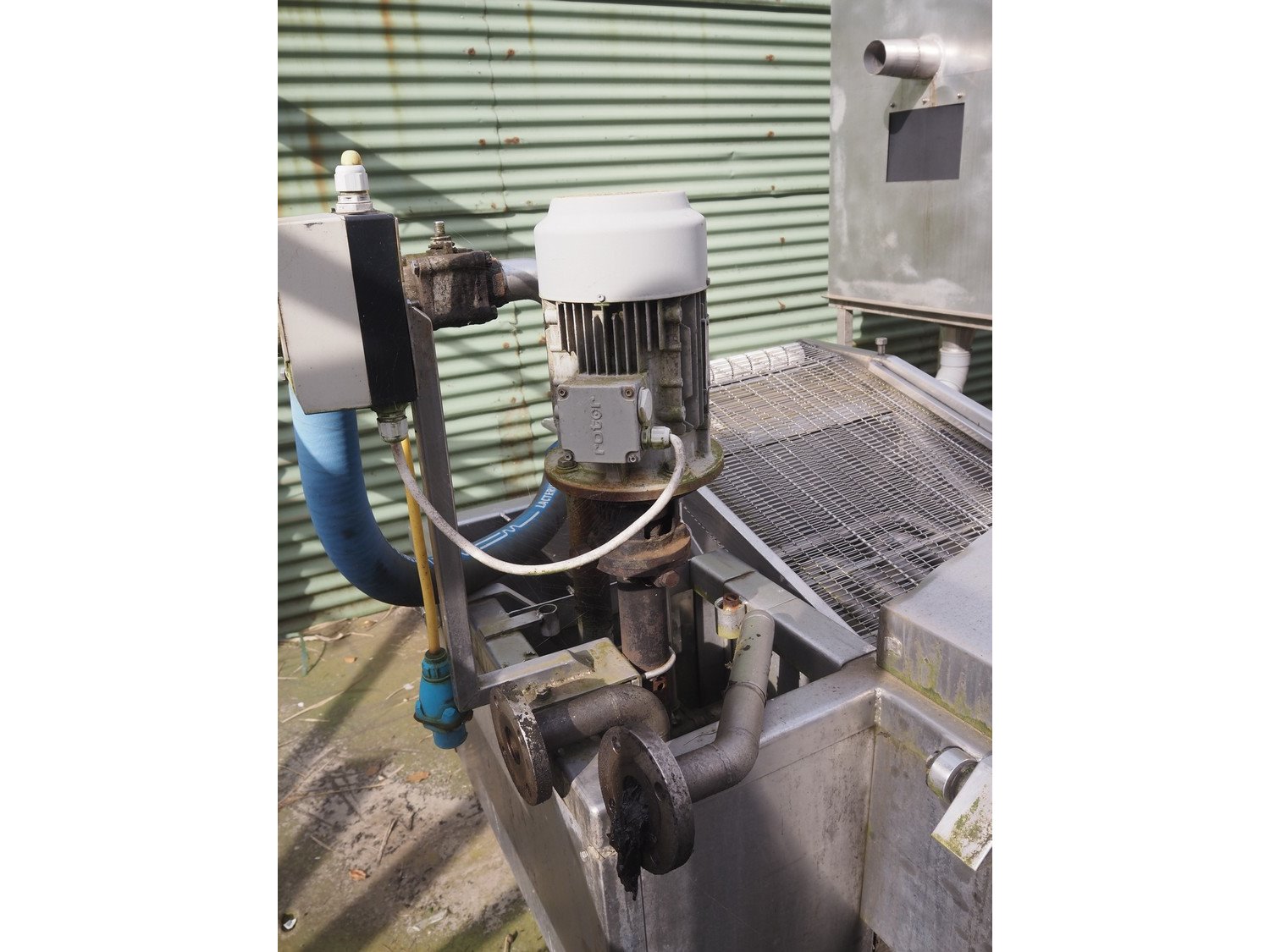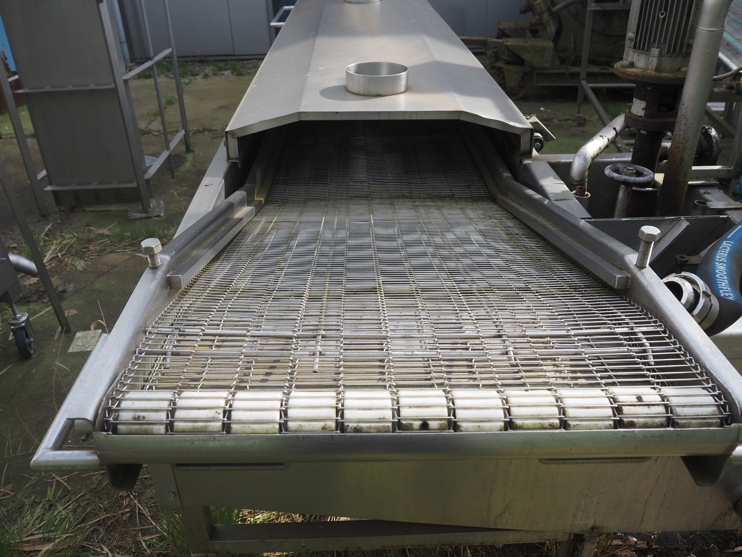 Frying belt, s/s mesh belt, belt width: 630 mm, total dimensions: 6050 mm x 950 mm x 1250 mm. Kavel locatie: Makkummerwaard 3, 8321 WV Urk, Nederland