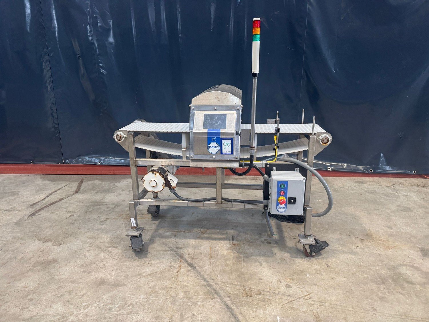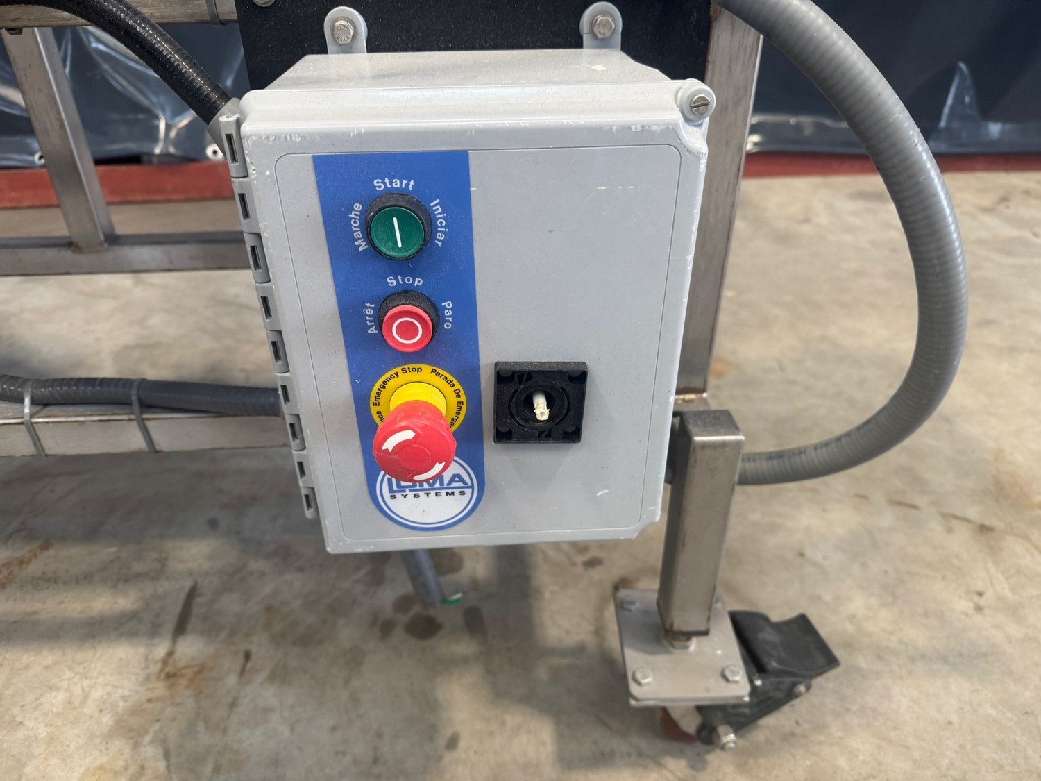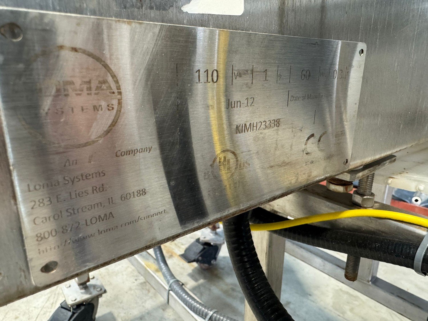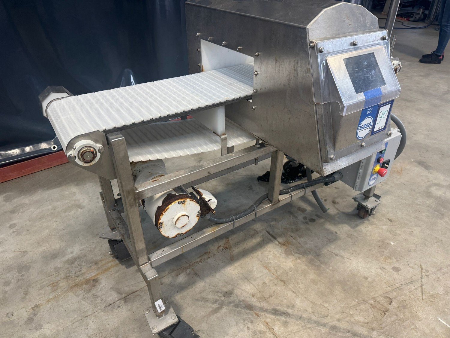 Loma mobile metal detector, model: IQ³, serial number: KIMH2338, year of construction: Jun-12, 110 V, 1 Ph, 50 Hz, clearance: 350 mm x 130 mm, plastic mesh belt, belt width: 300 mm, total dimensions: 1550 mm x 850 mm x 1560 mm. Kavel locatie: Makkummerwaard 3, 8321 WV Urk, Nederland