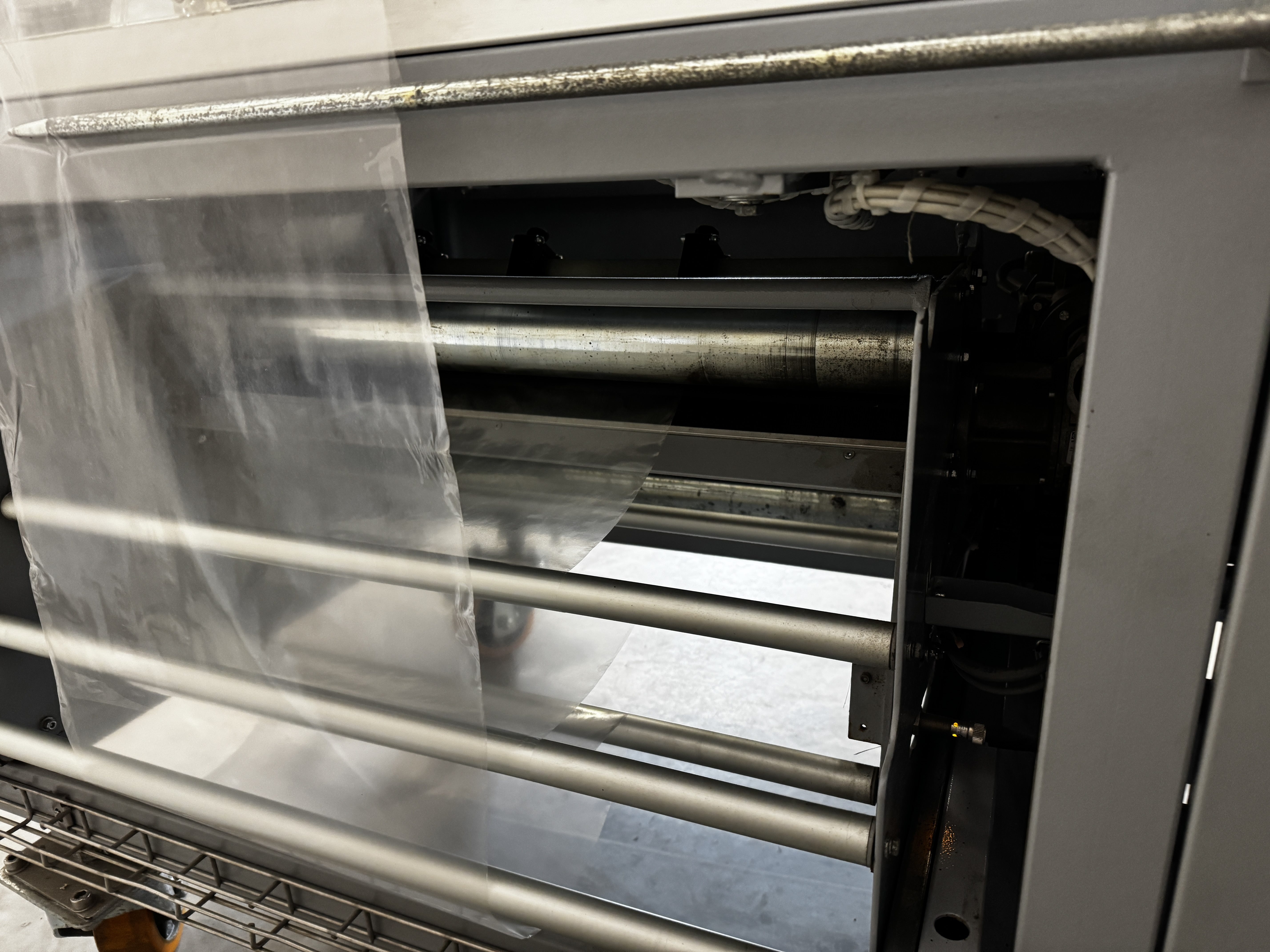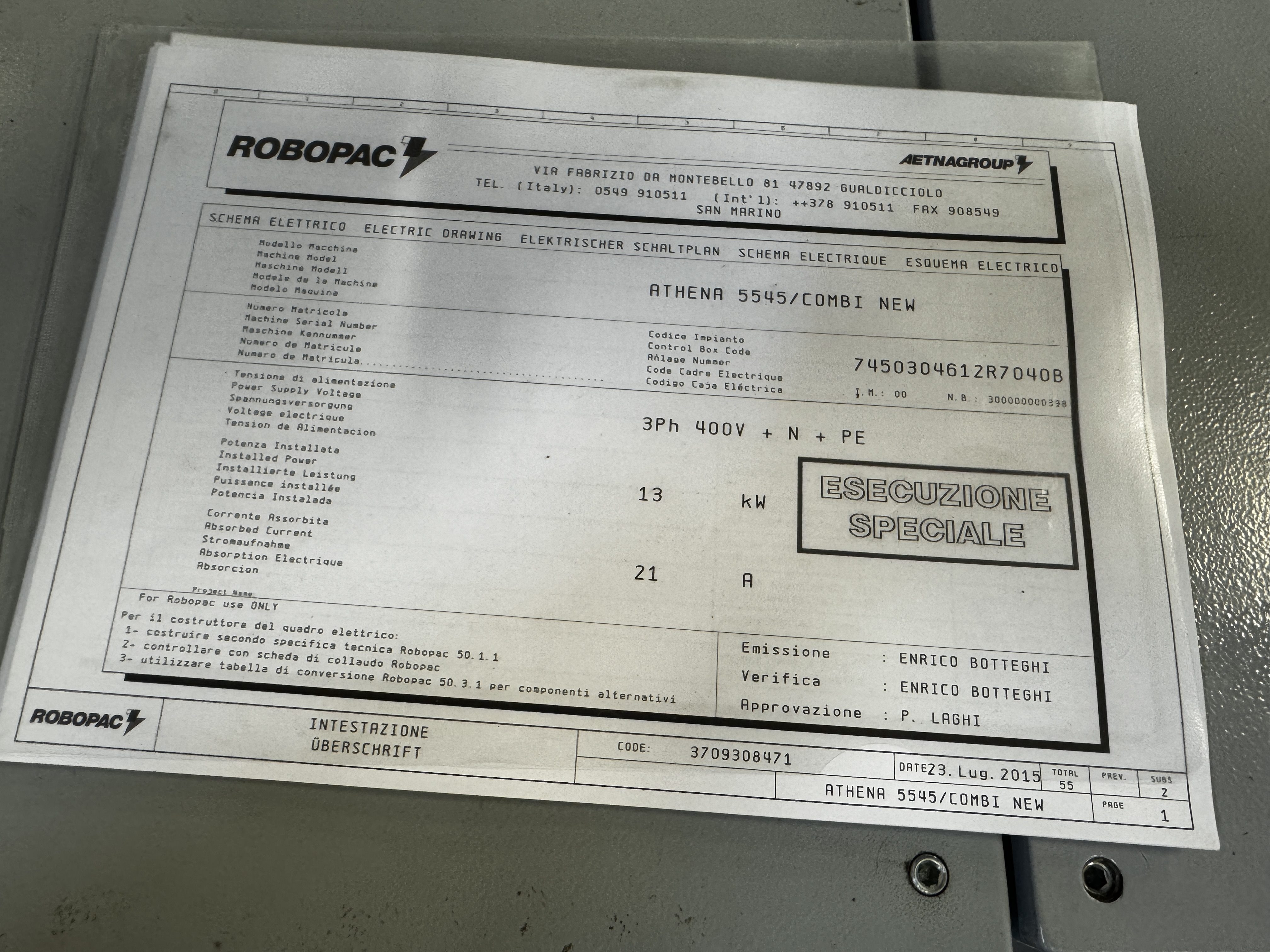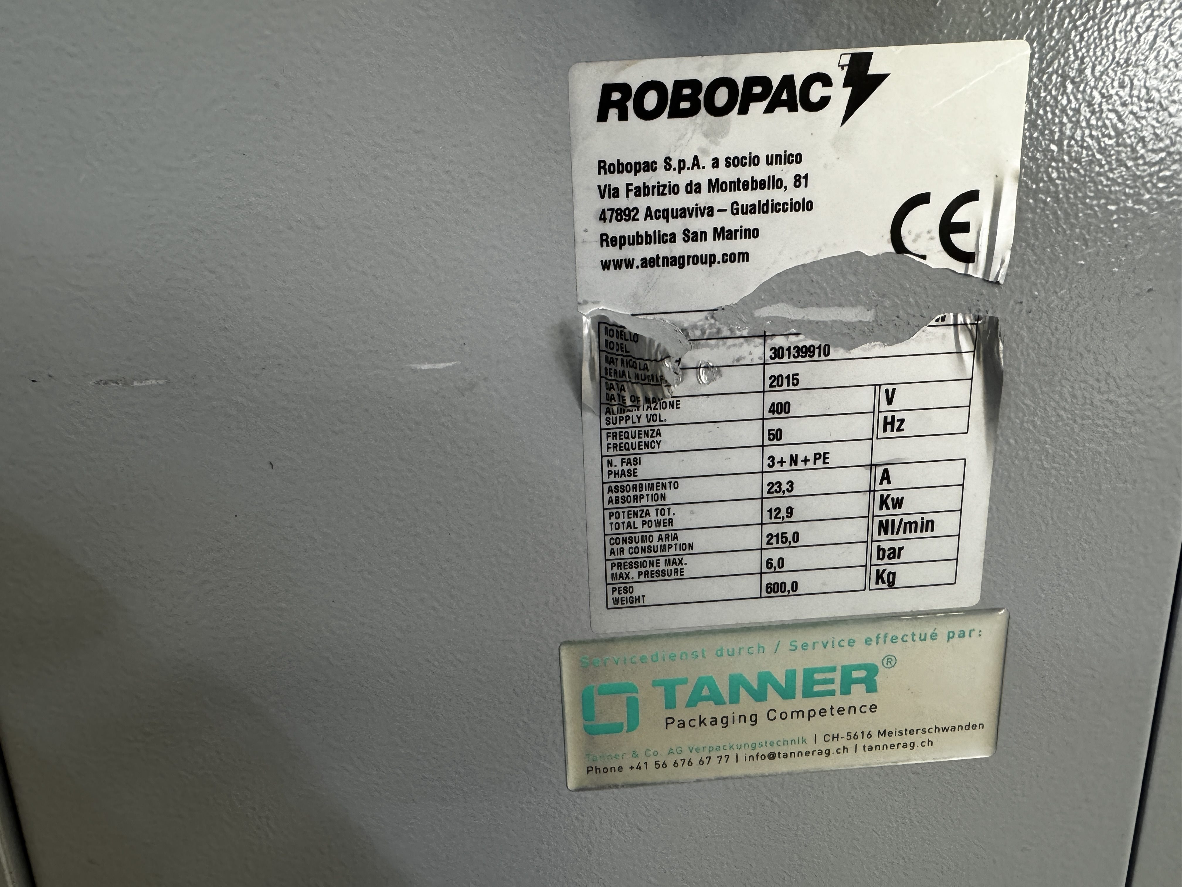 Robopac S.p.A. shrink packaging machine, model: Athena 5545/Combi new, serial number: 30139910, year of construction: 2015, 400 V, 3 Ph, 50 Hz, 23.3 A, 12.9 kW, 6 bar, weight: 600 kg, maximum product height: 120 mm, total dimensions: 2700 mm x 1200 mm x 1500 mm. Kavel locatie: Makkummerwaard 3, 8321 WV Urk, Nederland