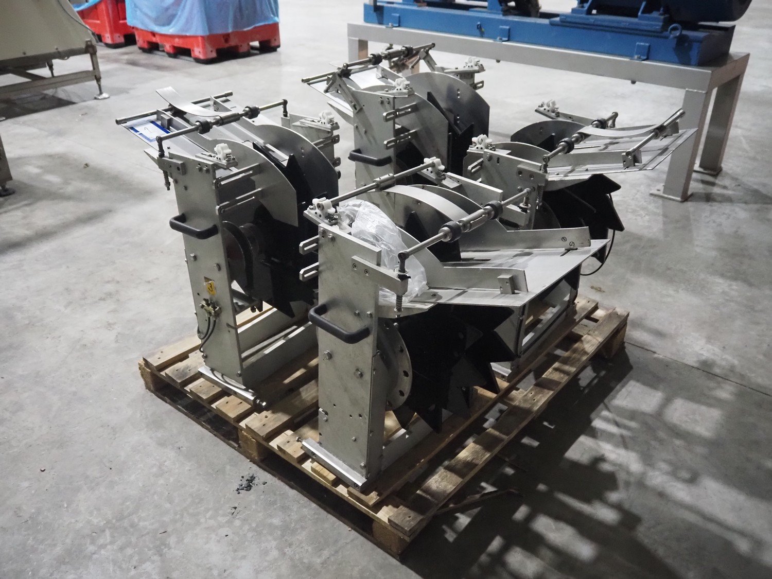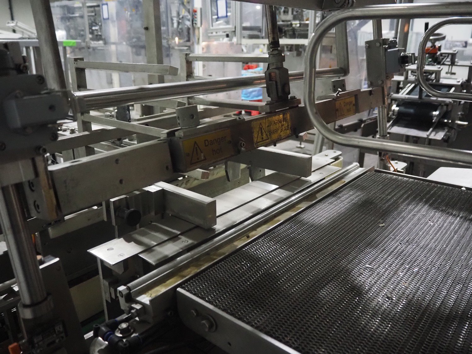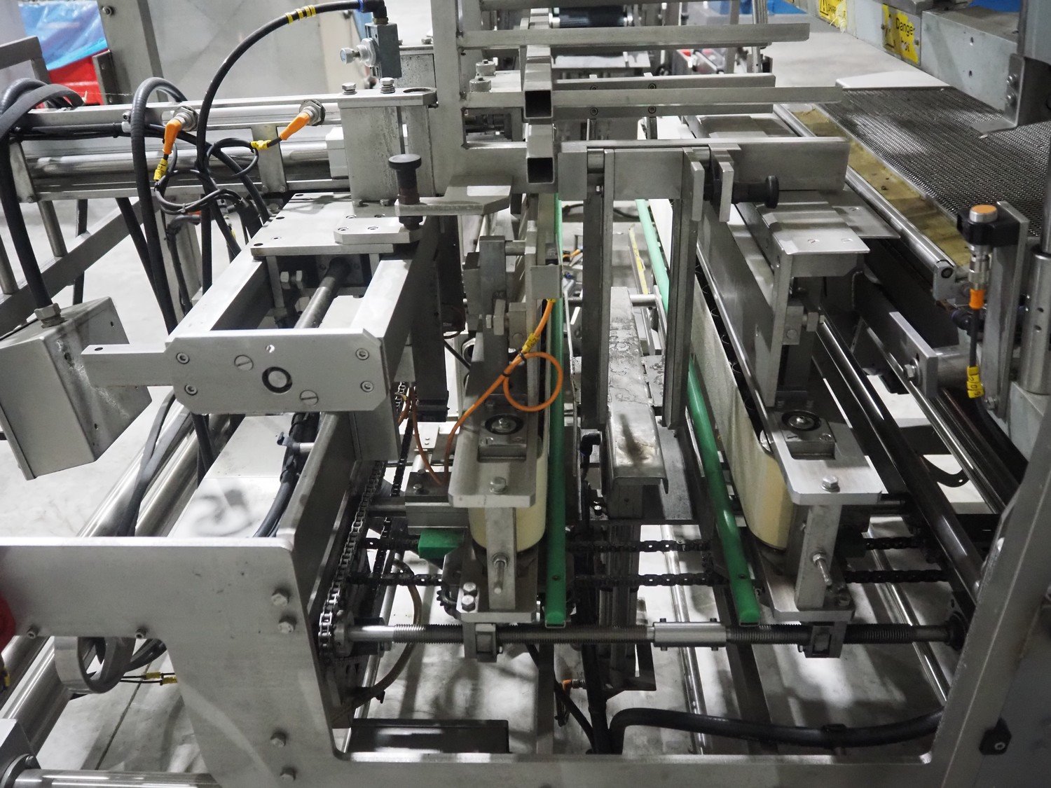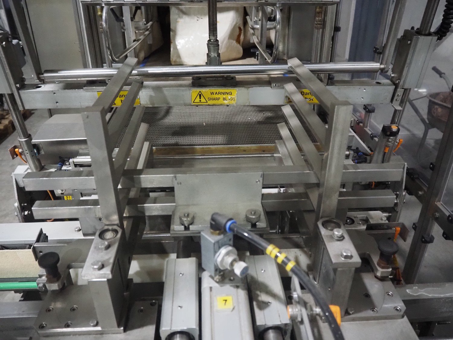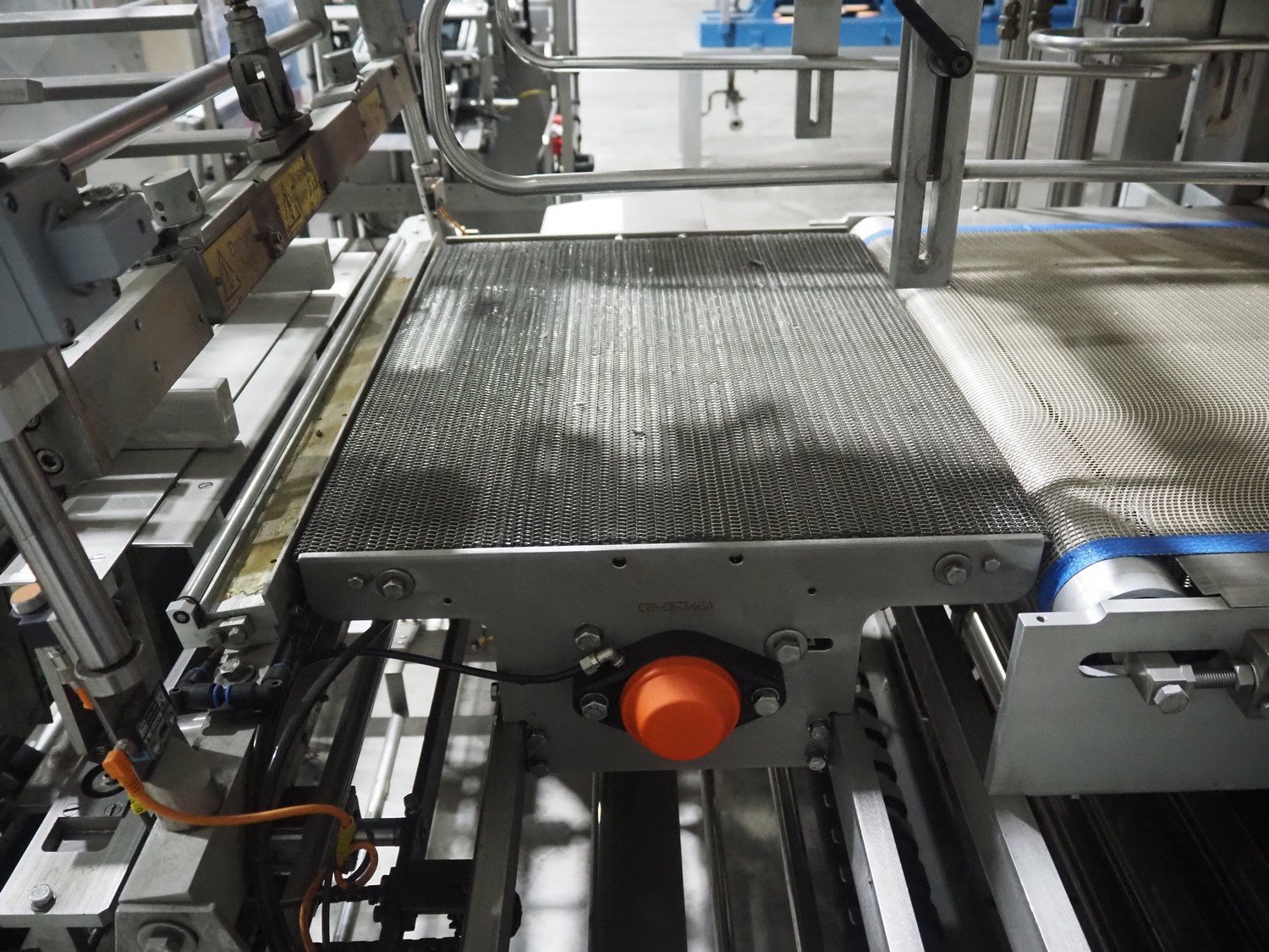 Europack wrapping and shrinking line, serial number: 02.10775.1, year of construction: 2002, 415 V, 3 Ph, 50 Hz, 29 kW, clearance infeed: 340 mm x 120 mm, film width: 780 mm, s/s belt, belt width: 660 mm, clearance shrink tunnel: 750 mm x 420 mm, outfeed belt width: 750 mm, total dimensions: 4650 mm x 3200 mm x 2000 mm. Including extra infeed wheels. Missing control panel. Kavel locatie: Langereijt 29A, 5091 JP Middelbeers, Nederland