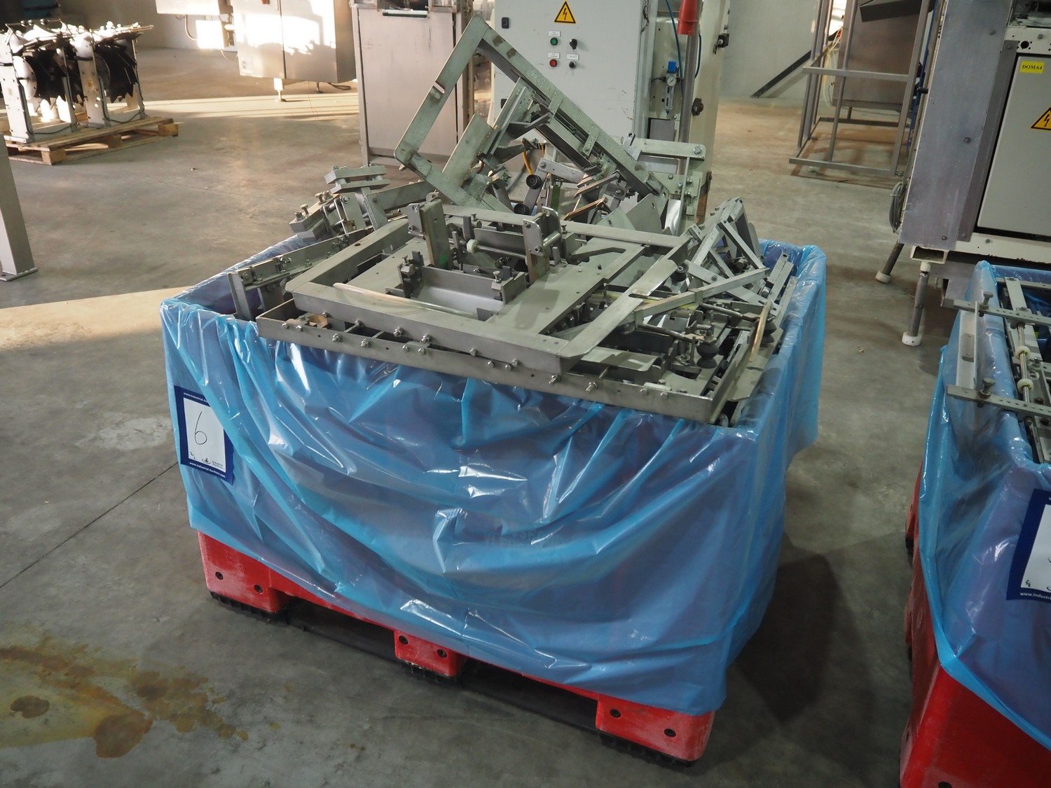 LPF Verpakkingen B.V. carton erector, 2 lanes, dimensions cartons: 150 mm x 98 mm x 30 mm, with Becker vacuum pump, type: BOL/4X, total dimensions: 1500 mm x 1350 mm x 2140 mm. With pallet box with large amount of parts for carton erector, dimensions: 1200 mm x 1000 mm x 1050 mm. Kavel locatie: Langereijt 29A, 5091 JP Middelbeers, Nederland