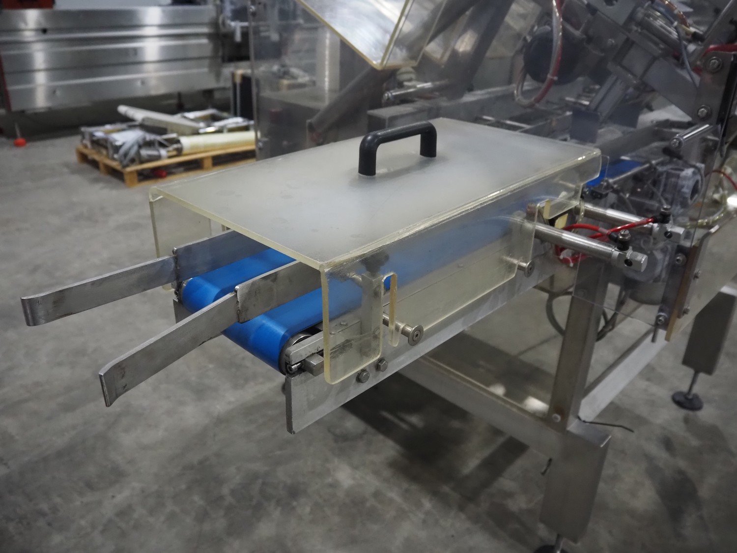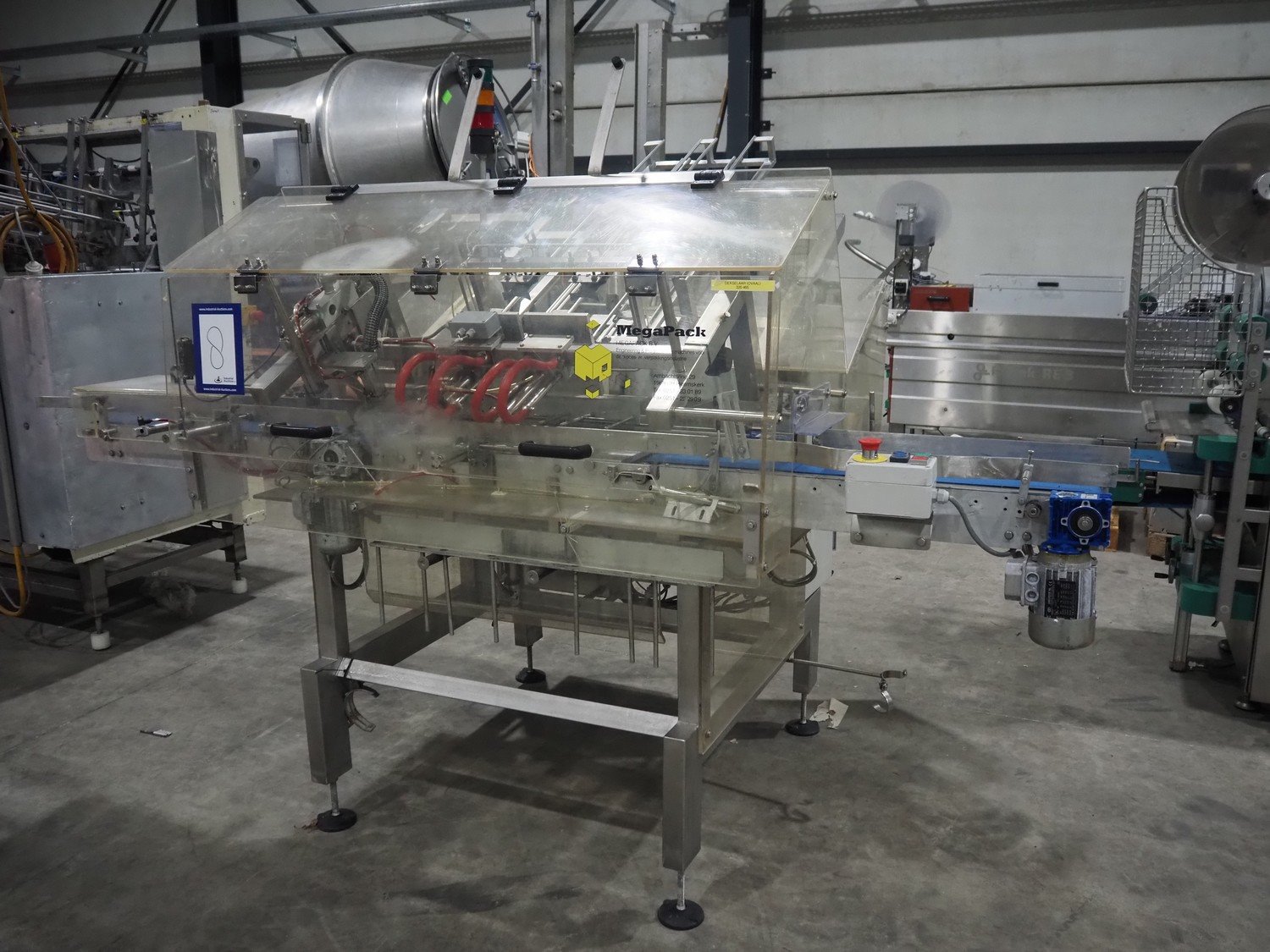 MegaPack denester, number: 107027, dimensions trays: (2x) 192 mm x 65 mm, dimensions mould: (2x) ø 110 mm, plastic belt, belt width: 175 mm, total dimensions: 1400 mm x 2650 mm x 1930 mm. Kavel locatie: Langereijt 29A, 5091 JP Middelbeers, Nederland