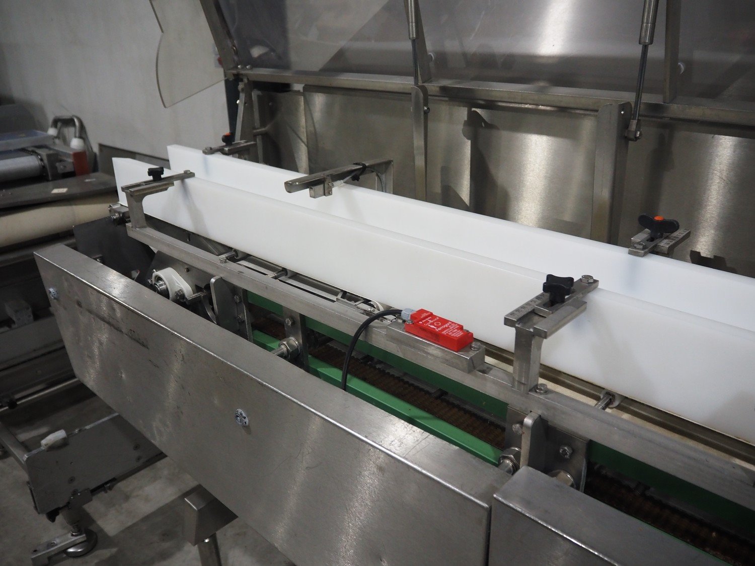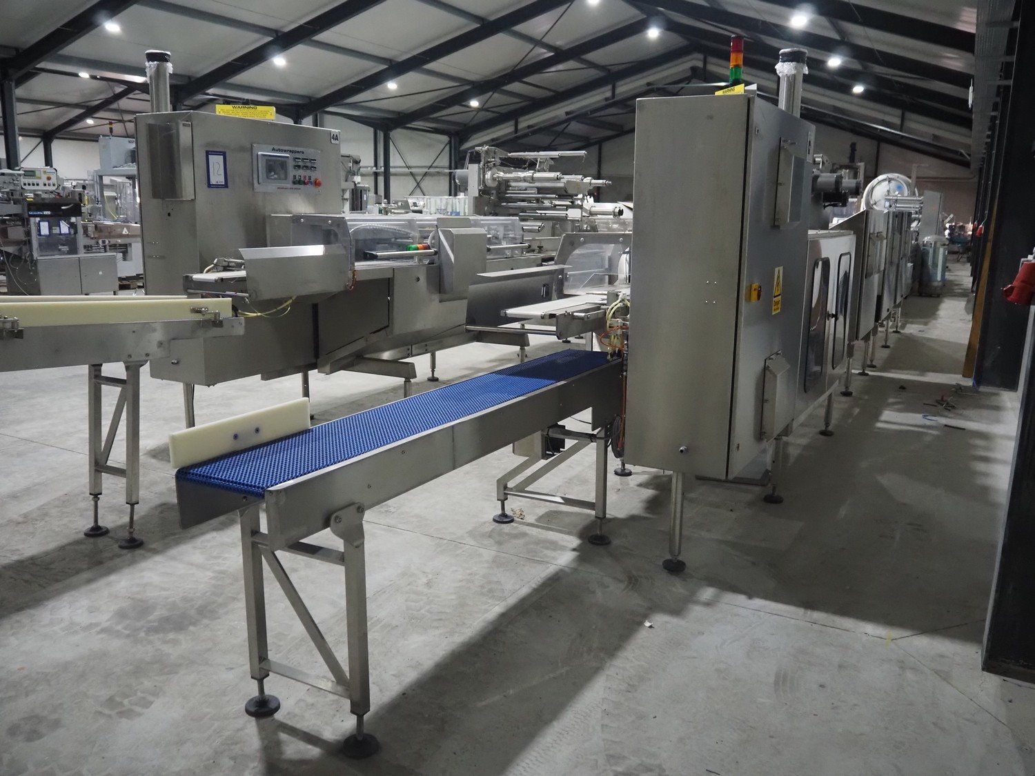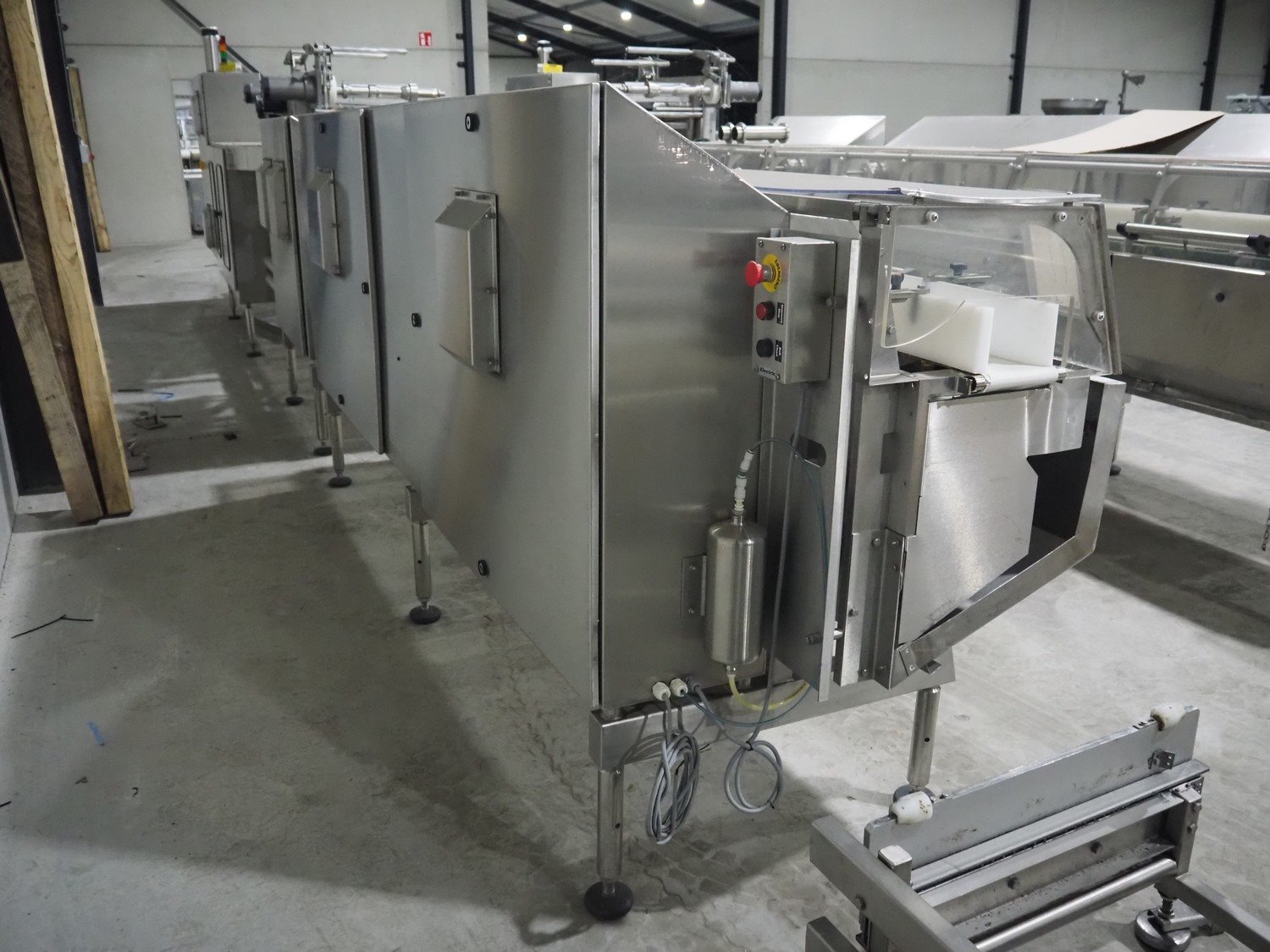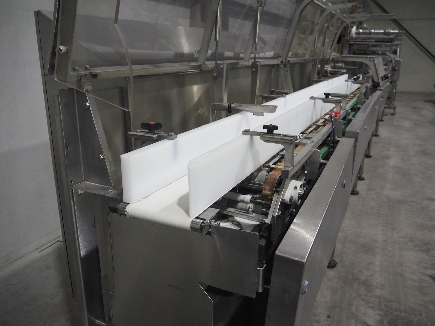 Bradman Lake Group dual feed flow packer, machine type: FT120CLX, serial number: 7098, year of construction: 2006, 415 V, 3 Ph, 50 Hz, 10 kW, plastic belt with dividers, belt width: (2x) 40 mm, divider height: 35 mm, distance between dividers: 300 mm, seal width: 230 mm, total dimensions: 5750 mm x 1200 mm x 2500 mm. Including infeed and outfeed belt, plastic infeed belt , belt width: 160 mm, total dimension: 3500 mm x 980 mm x 1550 mm. plastic outfeed belt, plastic mesh belt, belt width: 300 mm, total dimensions: 2600 mm x 600 mm x 1250 mm. Kavel locatie: Langereijt 29A, 5091 JP Middelbeers, Nederland