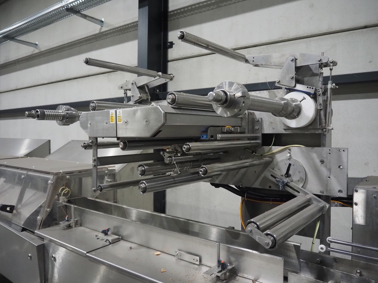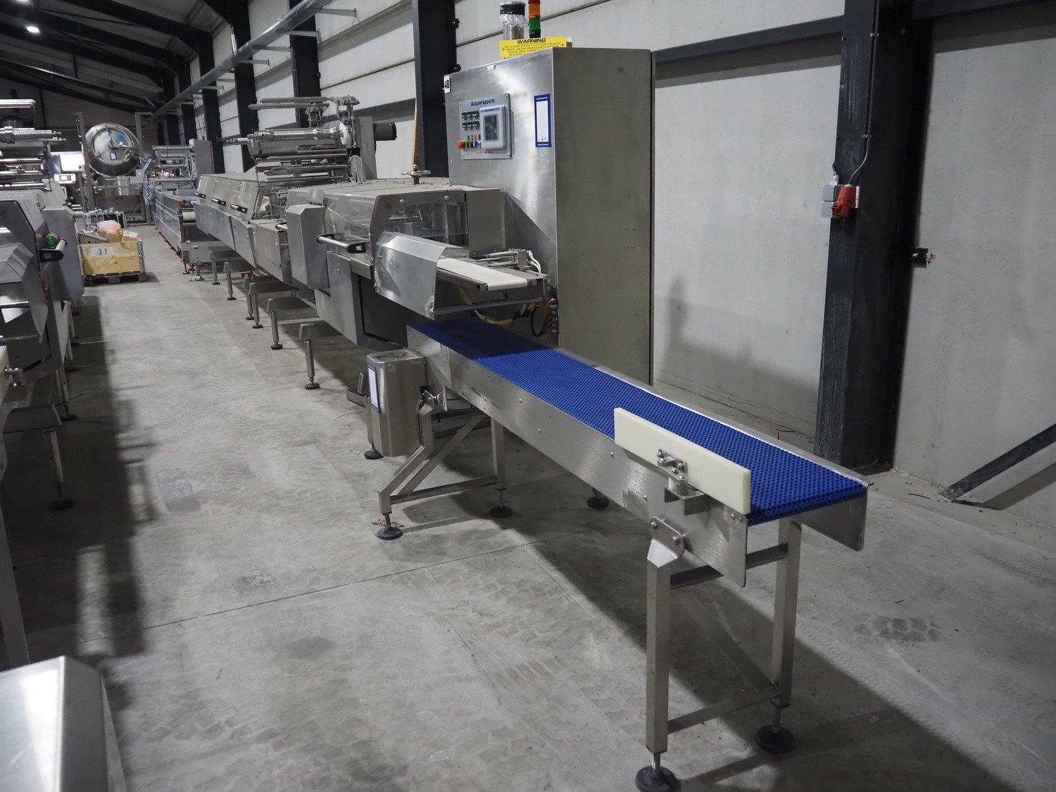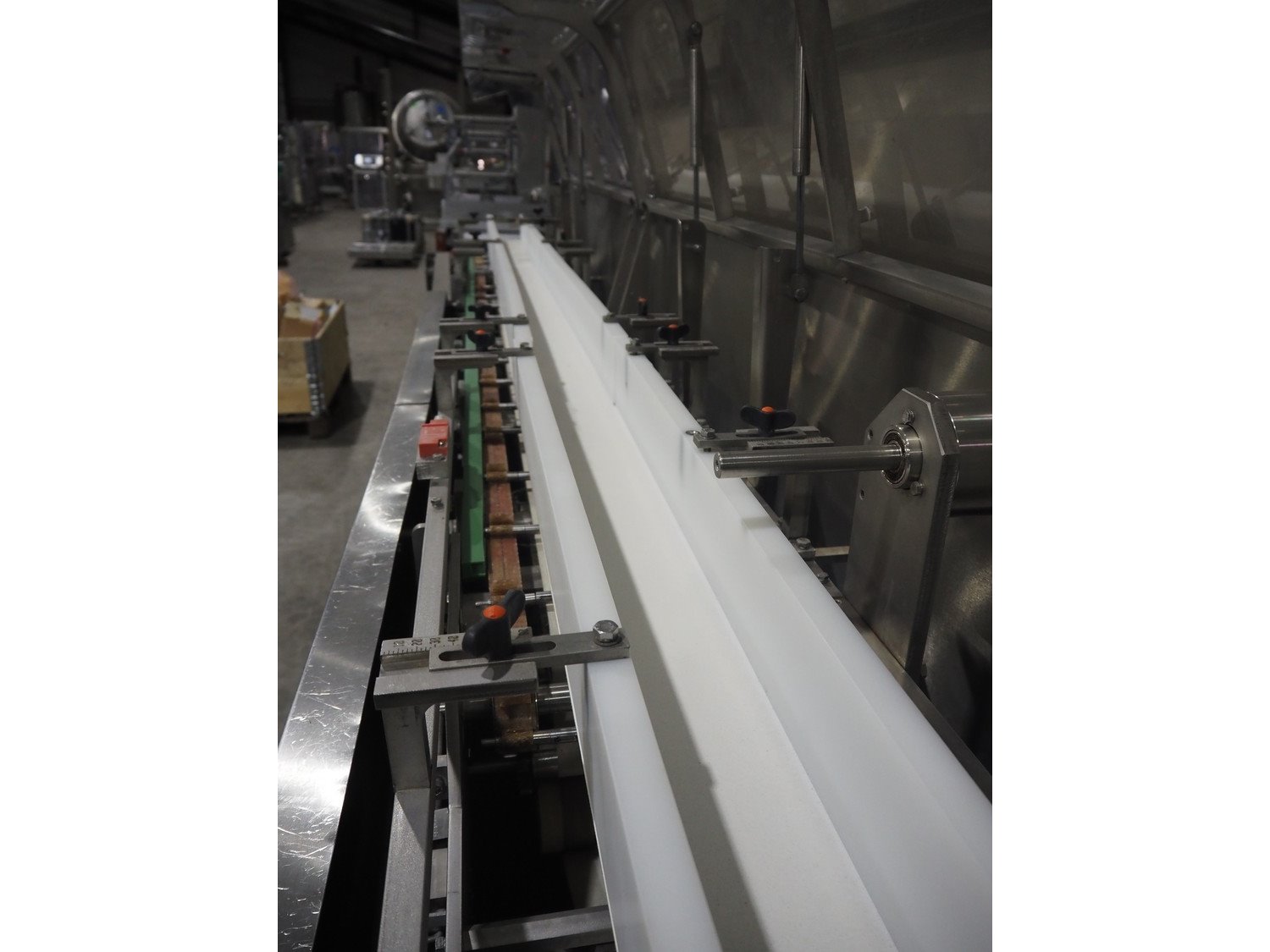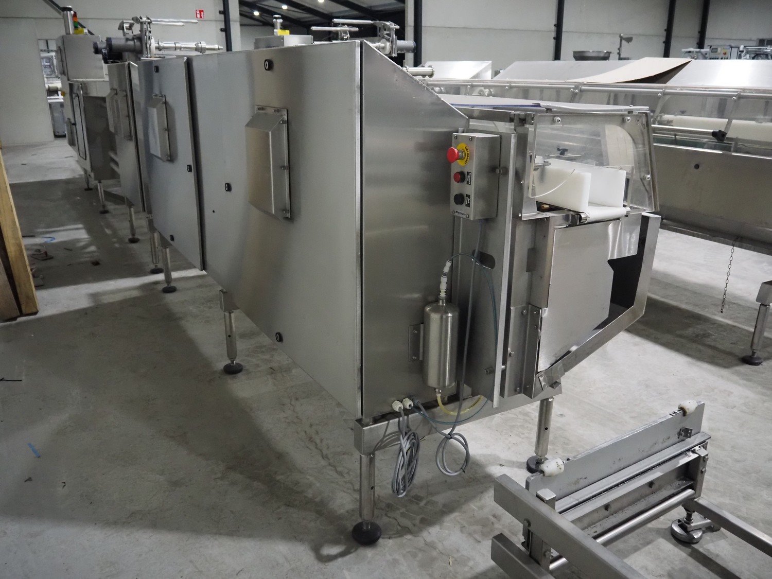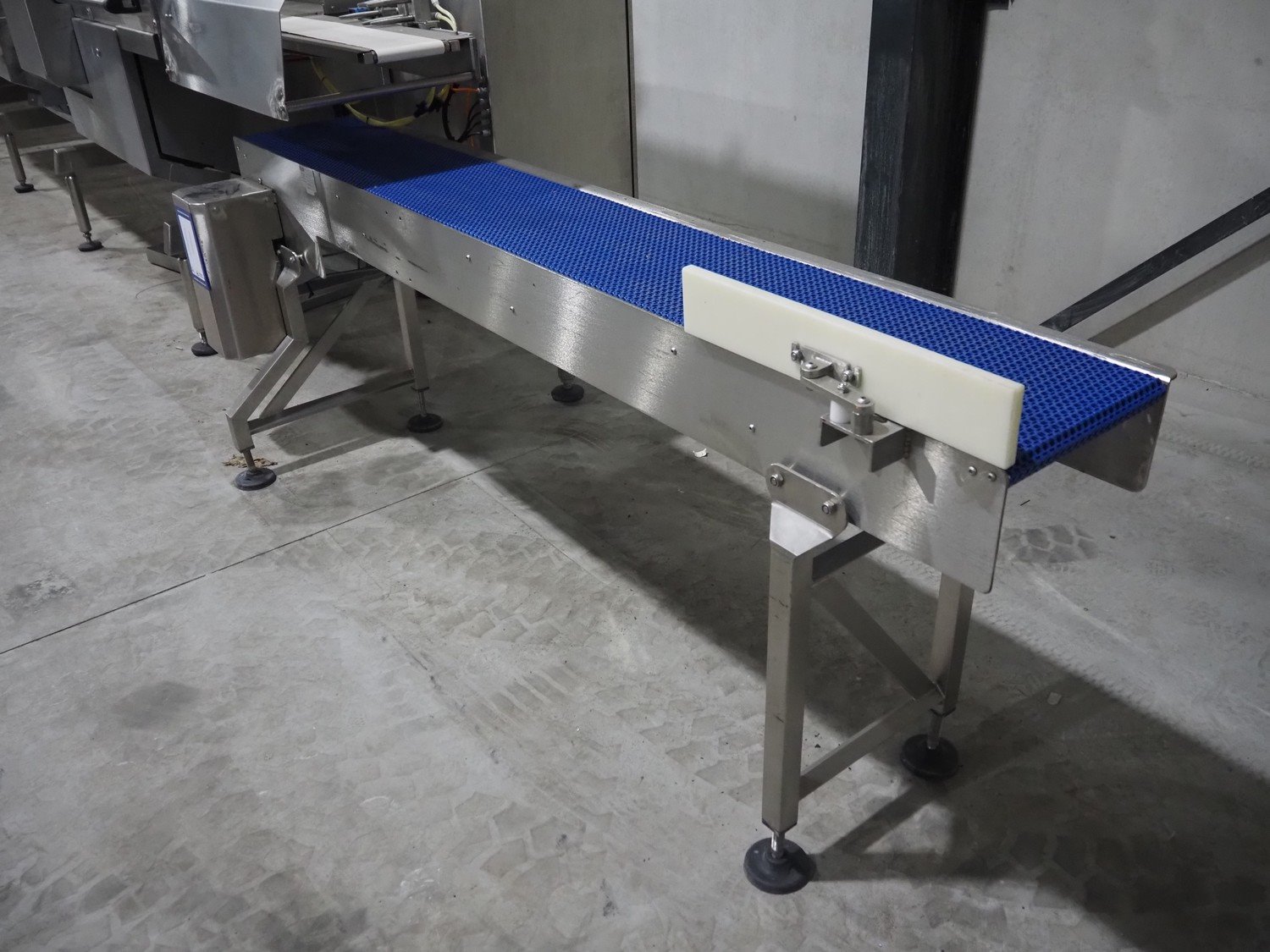 Bradman Lake Group dual feed flow packer, machine type: FT120CLX, serial number: 7098, year of construction: 2006, 415 V, 3 Ph, 50 Hz, 10 kW, plastic belt with dividers, belt width: (2x) 40 mm, divider height: 35 mm, distance between dividers: 300 mm, seal width: 230 mm, total dimensions: 5750 mm x 1200 mm x 2500 mm. Including infeed and outfeed belt, plastic infeed belt , belt width: 160 mm, total dimension: 3500 mm x 980 mm x 1550 mm. plastic outfeed belt, plastic mesh belt, belt width: 300 mm, total dimensions: 2600 mm x 600 mm x 1250 mm. Kavel locatie: Langereijt 29A, 5091 JP Middelbeers, Nederland