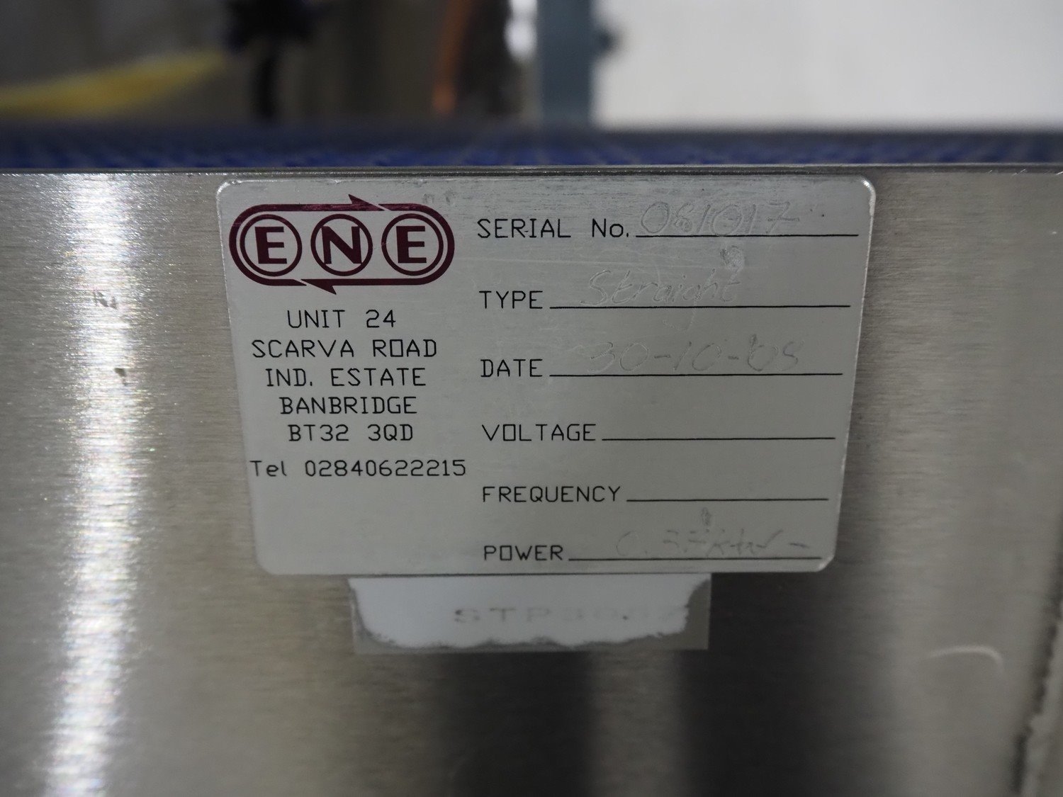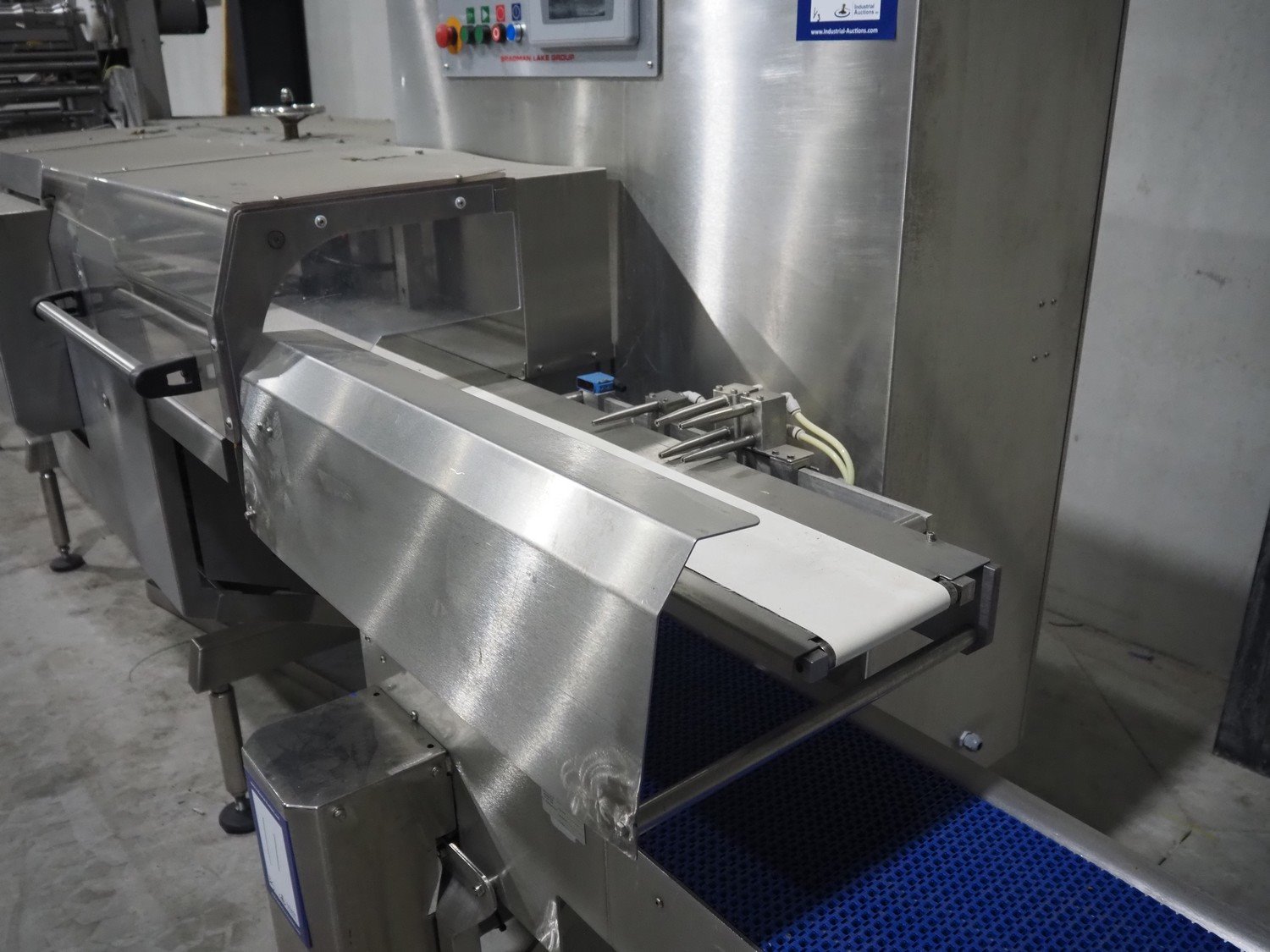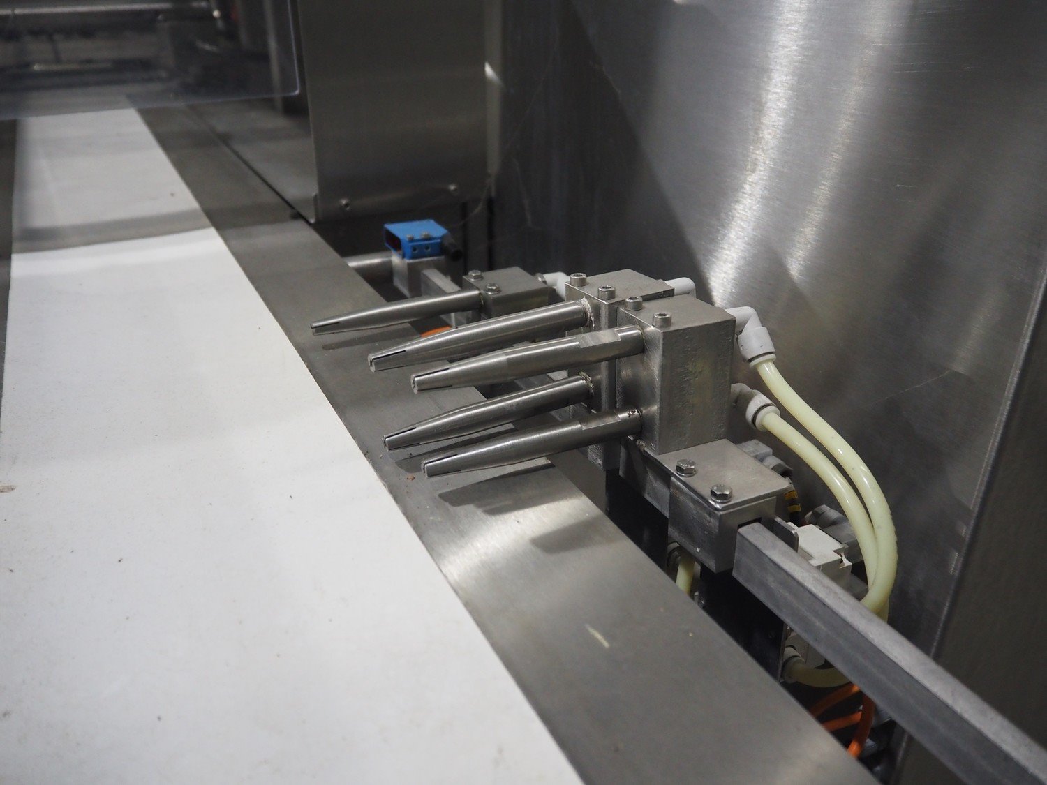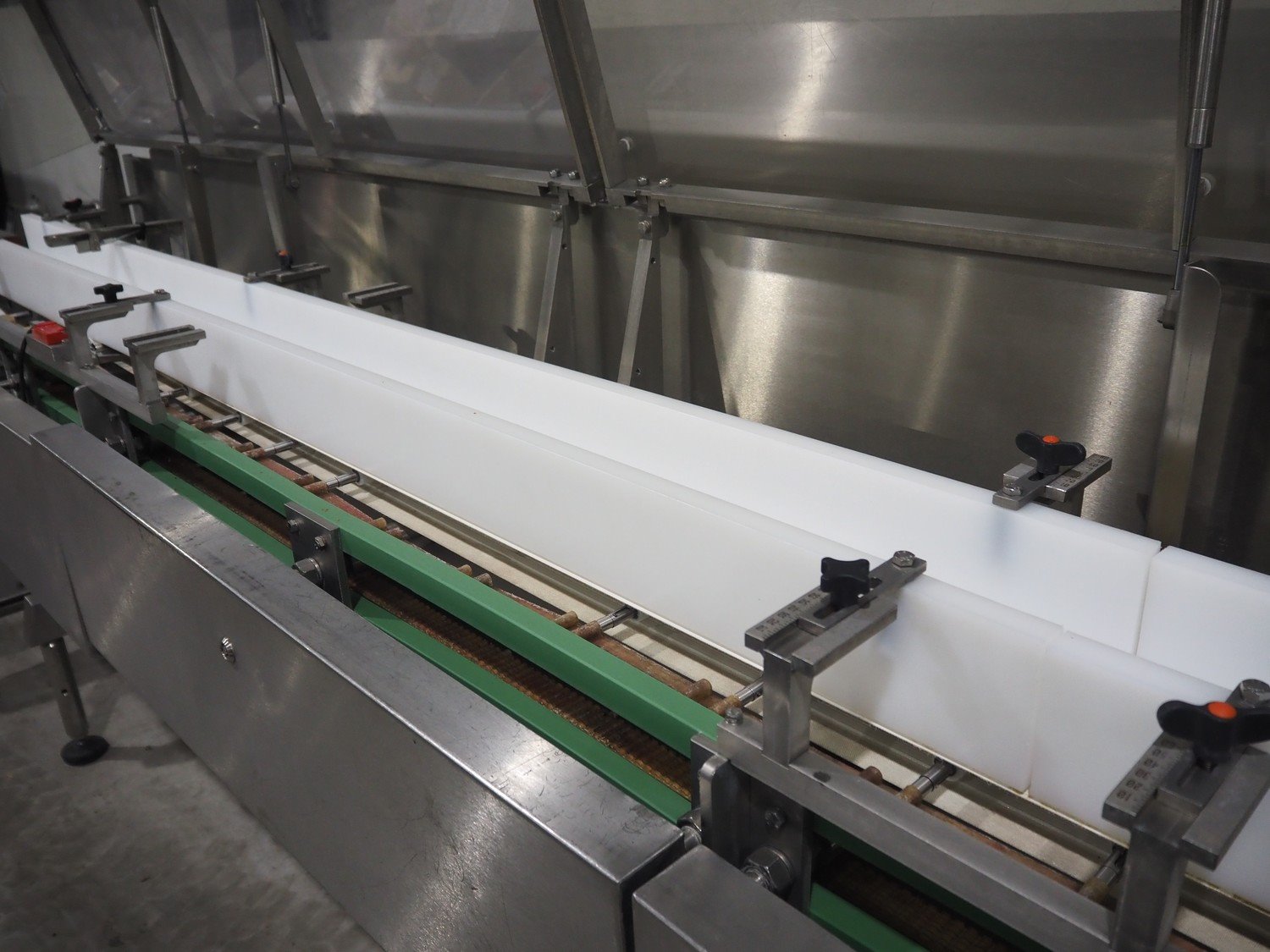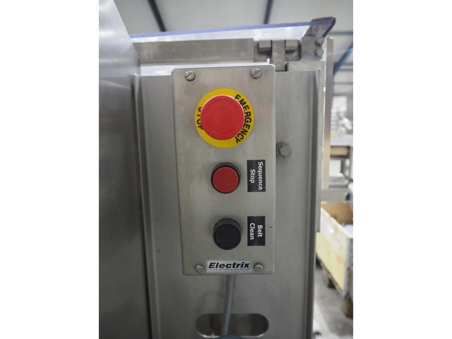 Bradman Lake Group dual feed flow packer, machine type: FT120CLX, serial number: 7098, year of construction: 2006, 415 V, 3 Ph, 50 Hz, 10 kW, plastic belt with dividers, belt width: (2x) 40 mm, divider height: 35 mm, distance between dividers: 300 mm, seal width: 230 mm, total dimensions: 5750 mm x 1200 mm x 2500 mm. Including infeed and outfeed belt, plastic infeed belt , belt width: 160 mm, total dimension: 3500 mm x 980 mm x 1550 mm. plastic outfeed belt, plastic mesh belt, belt width: 300 mm, total dimensions: 2600 mm x 600 mm x 1250 mm. Kavel locatie: Langereijt 29A, 5091 JP Middelbeers, Nederland