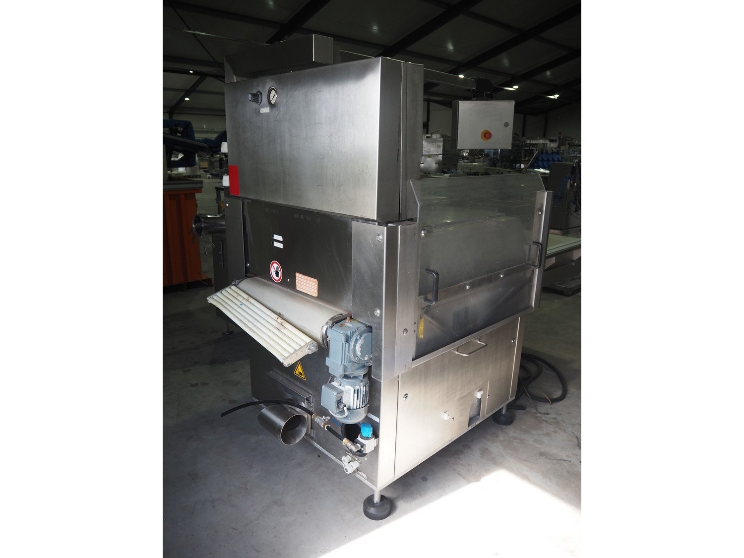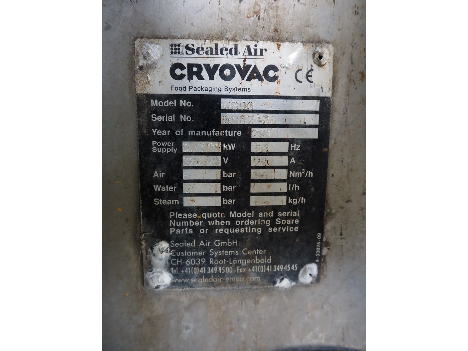 Cryovac belt vacuum machine, model number: VS90, serial number: SN02426, year of construction: 2011, 400 V, 50 Hz, 20 A, 8.3 kW, 15 Nm³ per hour, 6 bar, plastic belt, belt width: 680 mm, total dimensions: 2800 mm x 1240 mm x 1970 mm. Without vacuum pump. Kavel locatie: Langereijt 29A, 5091 JP Middelbeers, Nederland