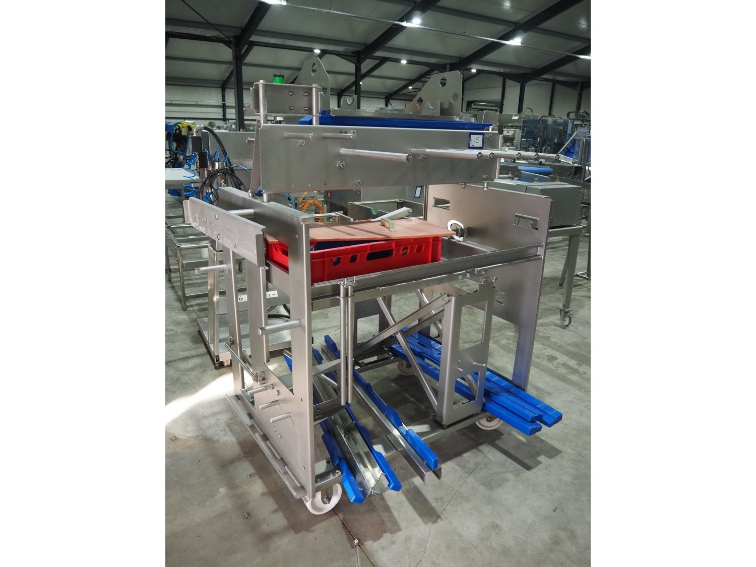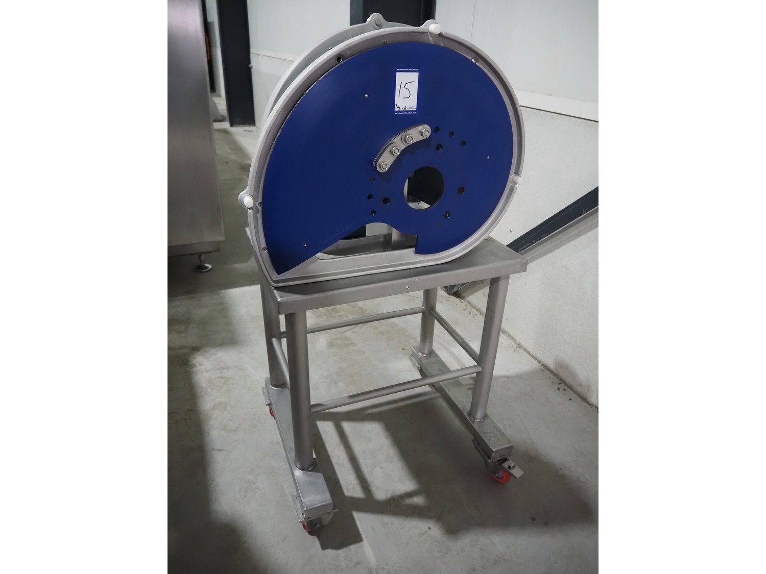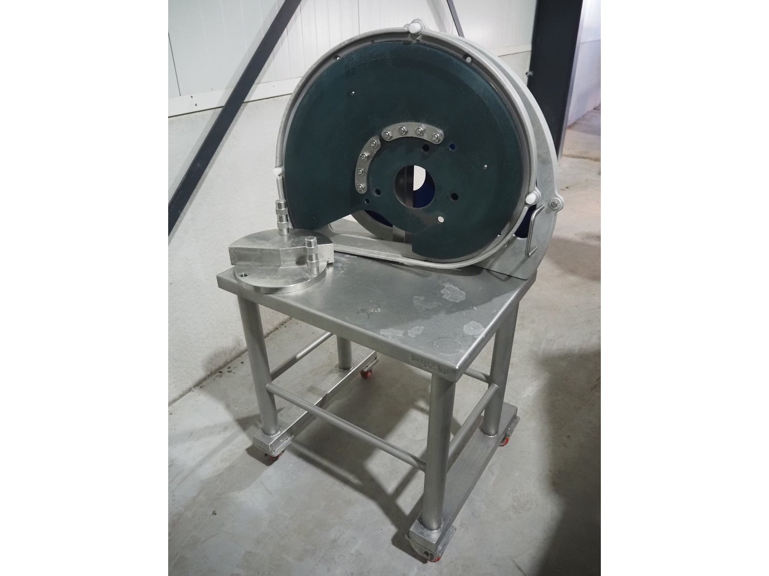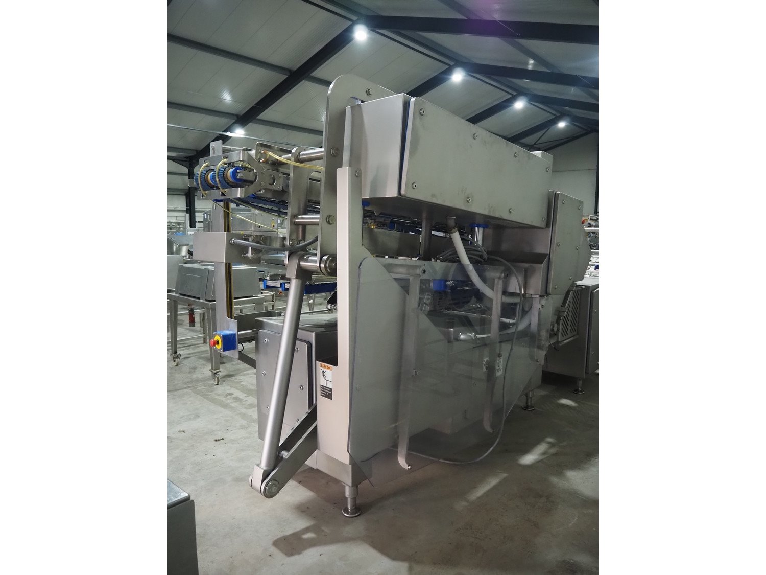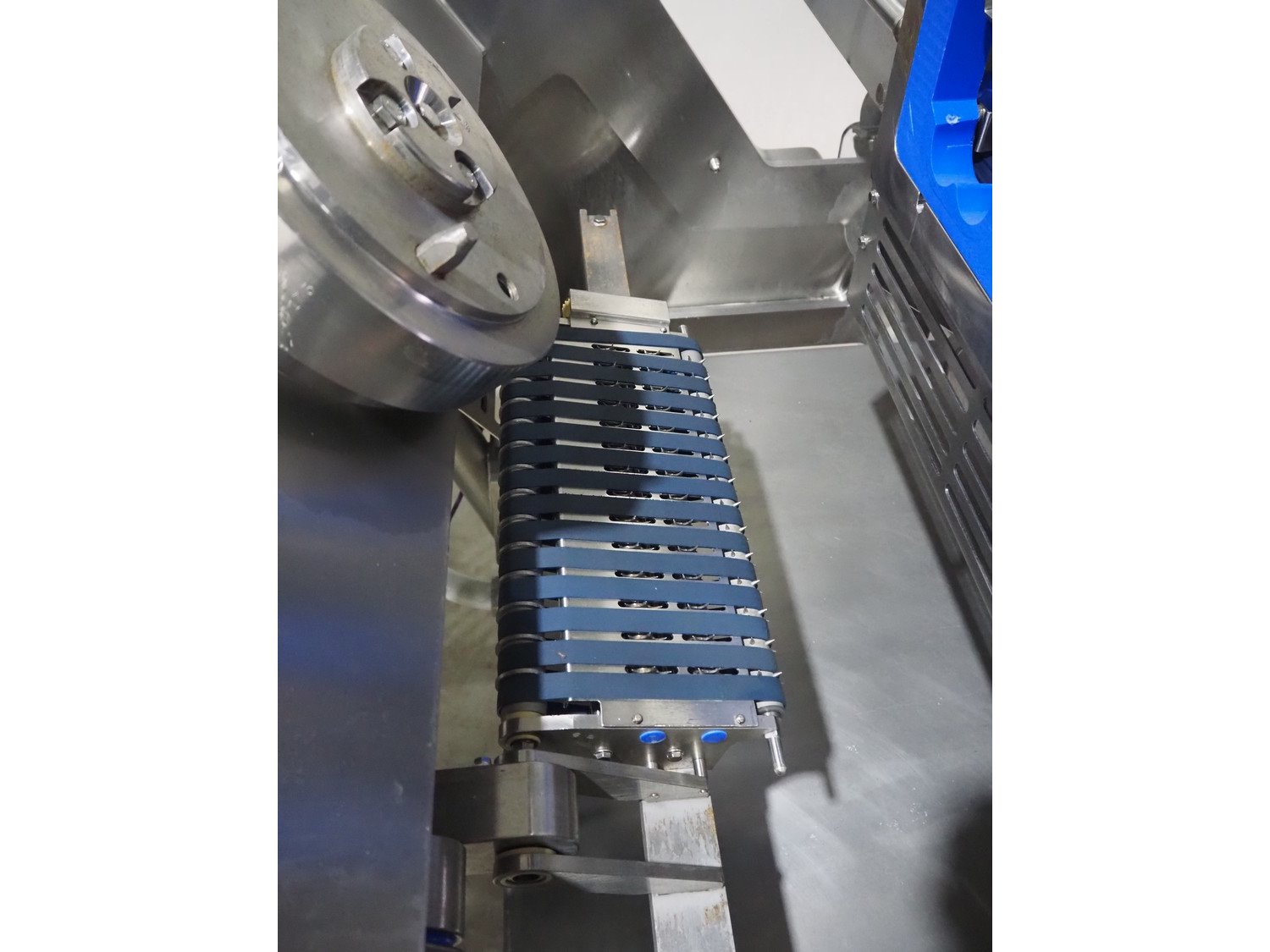Formax slicer, model: PowerMax 3500, serial number: PX3.5-16112, 400 V, 3 Ph, 50 Hz, 29.5 A, 18.5 kW, plastic belt, belt width: (2x) 100 mm, plastic wire belt, belt width: 390 mm, total dimensions: 3900 mm x 1500 mm x 2250 mm. Including trolley with knife holder, dimensions: 770 mm x 600 mm x 1350 mm. Kavel locatie: Langereijt 29A, 5091 JP Middelbeers, Nederland
