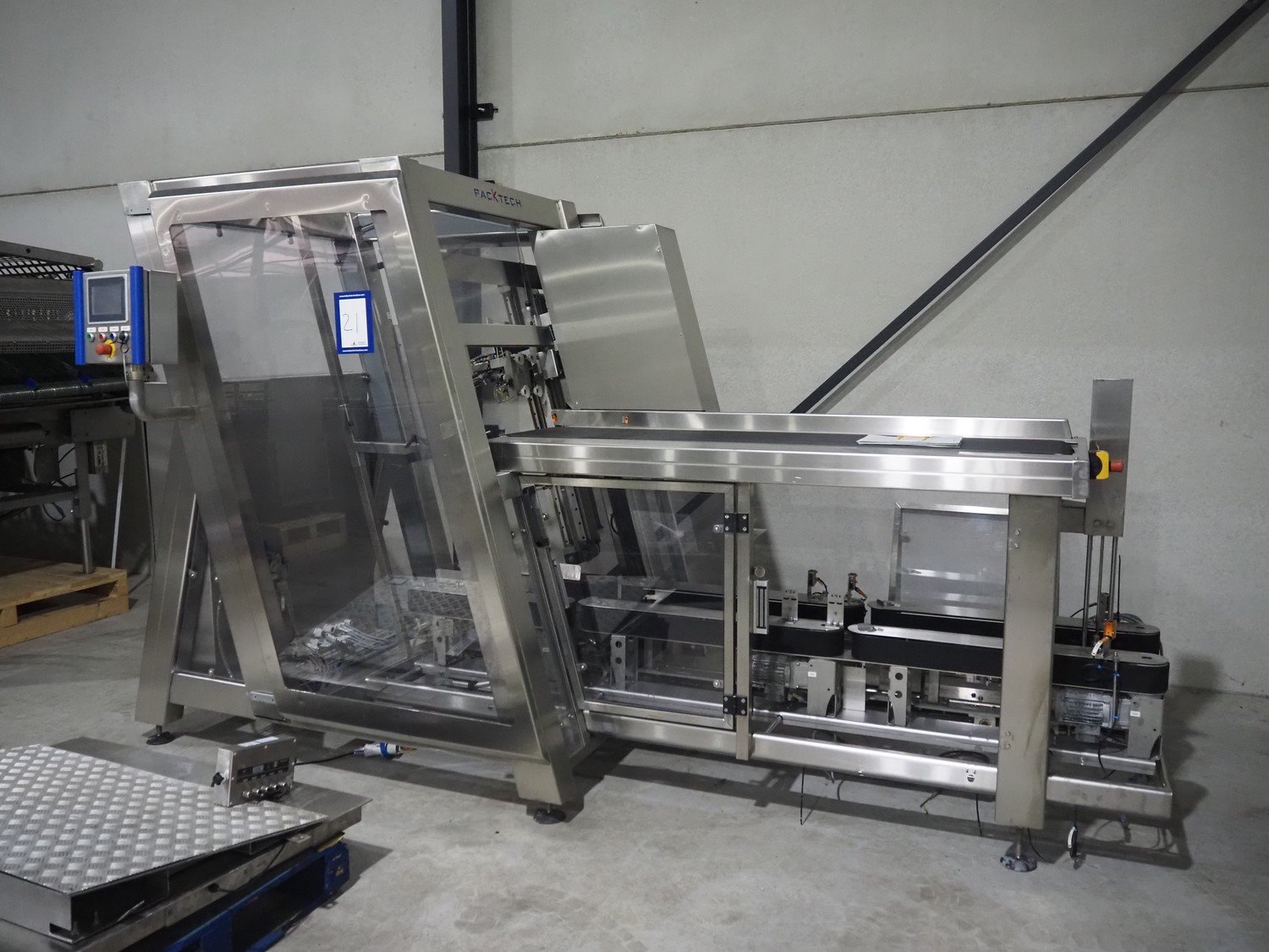 Paktech linear case erector, plastic belt, belt width: 400 mm, clearance: 225 mm, total dimensions: 3700 mm x 1650 mm x 2100 mm. Kavel locatie: Langereijt 29A, 5091 JP Middelbeers, Nederland