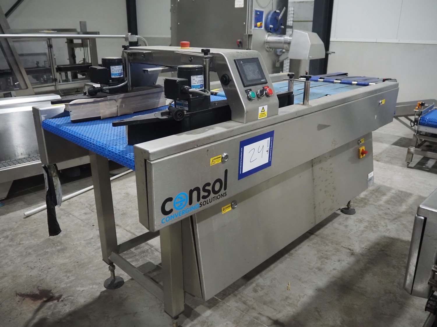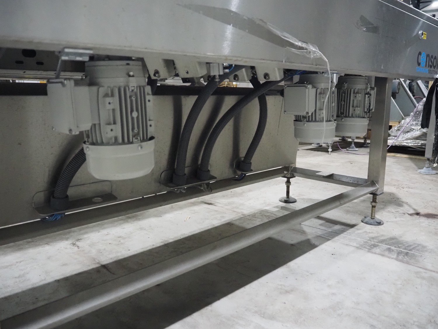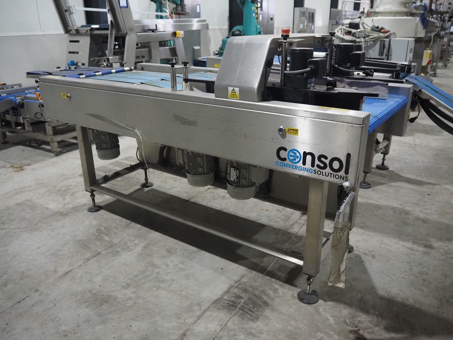 Consol Converging Solutions lane dividing belt, model: INT3 H/S, serial number: CS 6480, year of construction: 2018, 230 V, 16 A, plastic mesh belt, belt width: 680 mm, plastic belts, belt width: (4x) 115 mm, (4x) 80 mm, total dimensions: 2460 mm x 860 mm x 1230 mm. Kavel locatie: Langereijt 29A, 5091 JP Middelbeers, Nederland