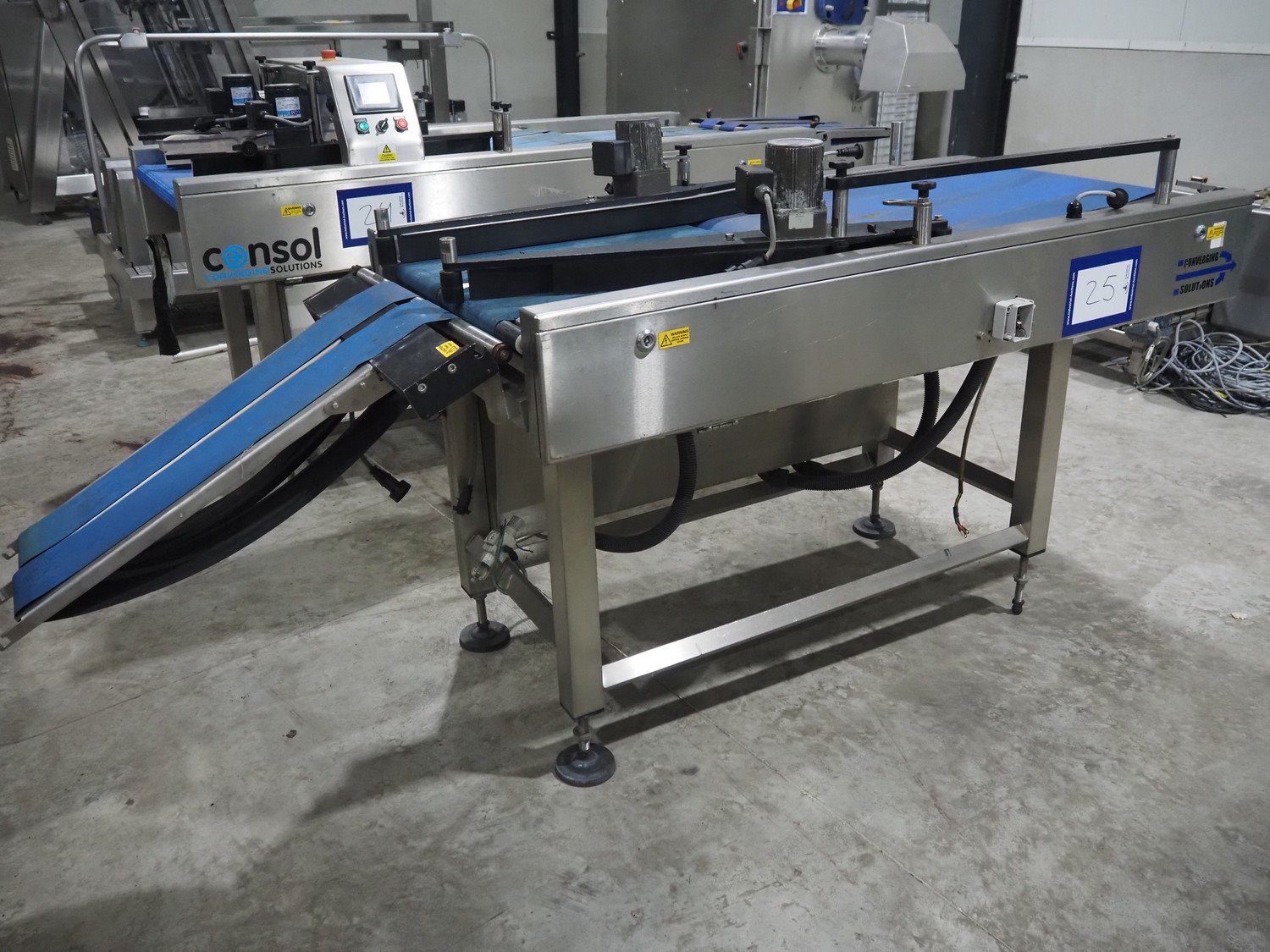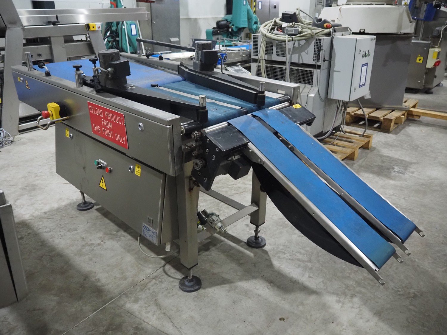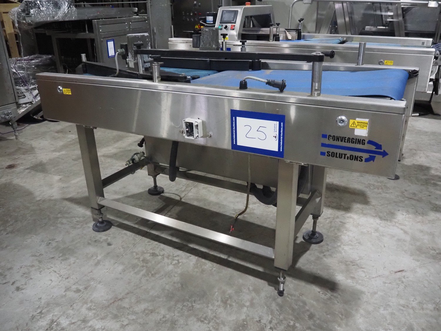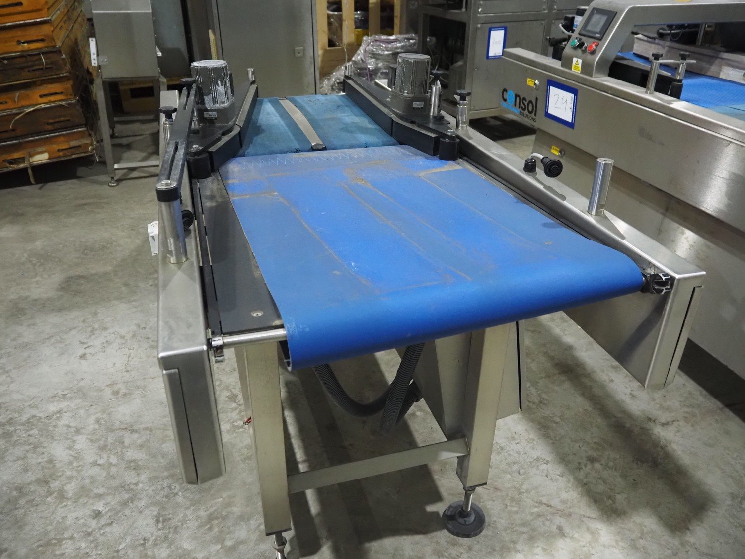 Converging Solutions converging lane dividing belt, model: Integrator Mk2, serial number: CS5455, year of construction: 08/2008, plastic belts, belt width: (2x) 225 mm, (1x) 625 mm, total dimensions: 1580 mm x 820 mm x 1120 mm. Kavel locatie: Langereijt 29A, 5091 JP Middelbeers, Nederland