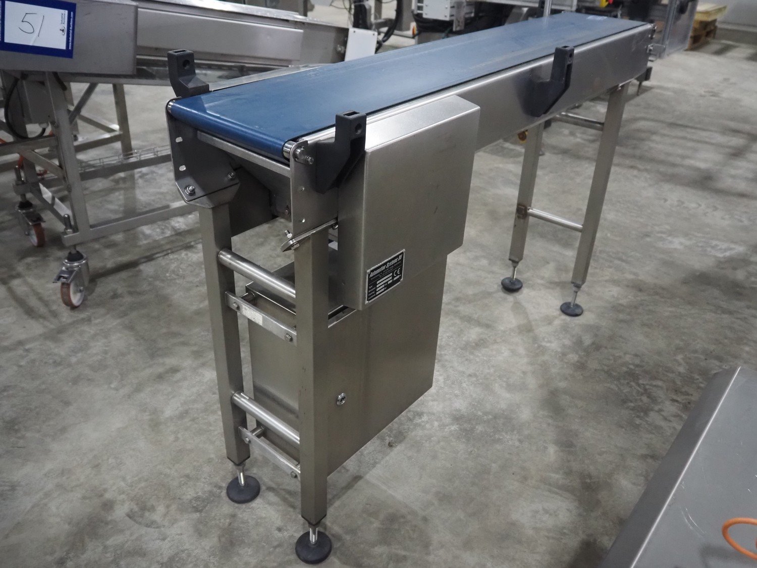 Automotion Systems BV transport belt, type: MER013, year of construction: 2004, 240 VAC, 16 A, 1 kW, plastic belt, belt width: 255 mm, total dimensions: 1520 mm x 450 mm x 1020 mm. Kavel locatie: Langereijt 29A, 5091 JP Middelbeers, Nederland