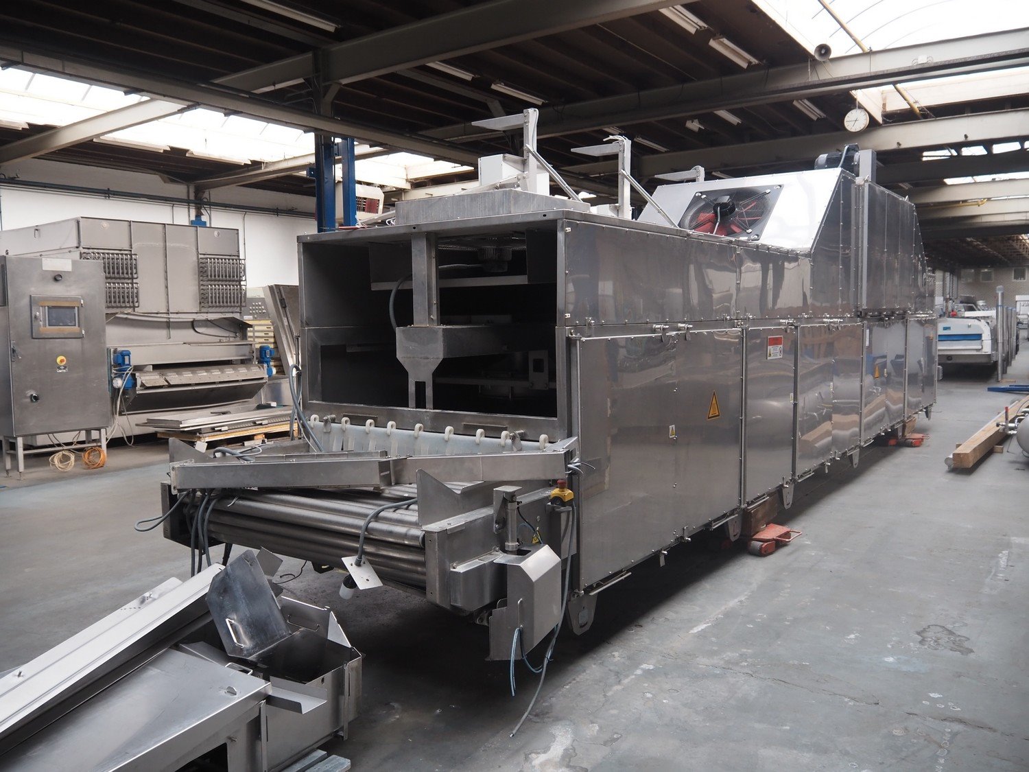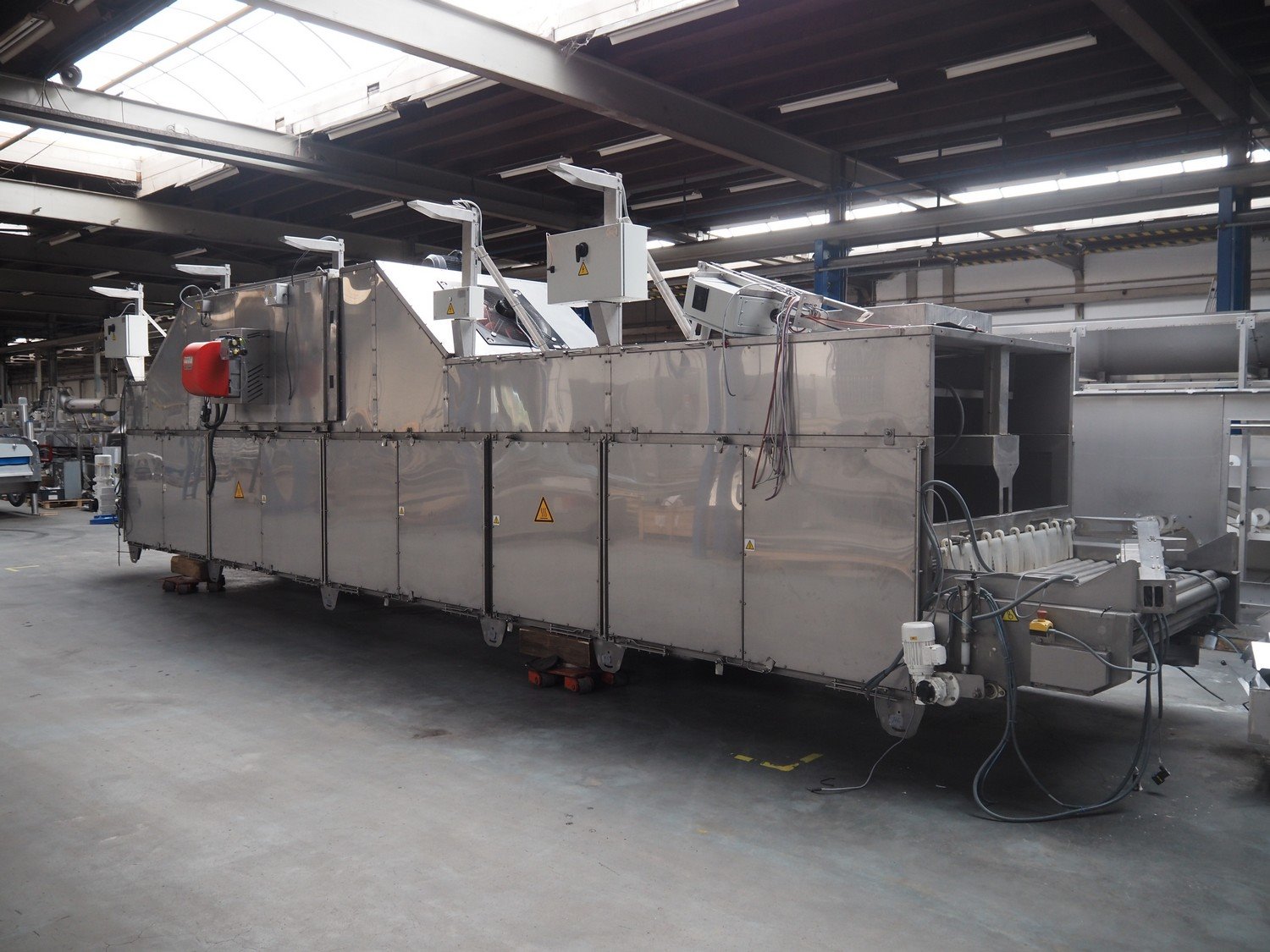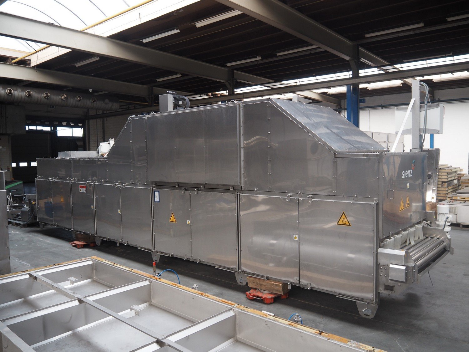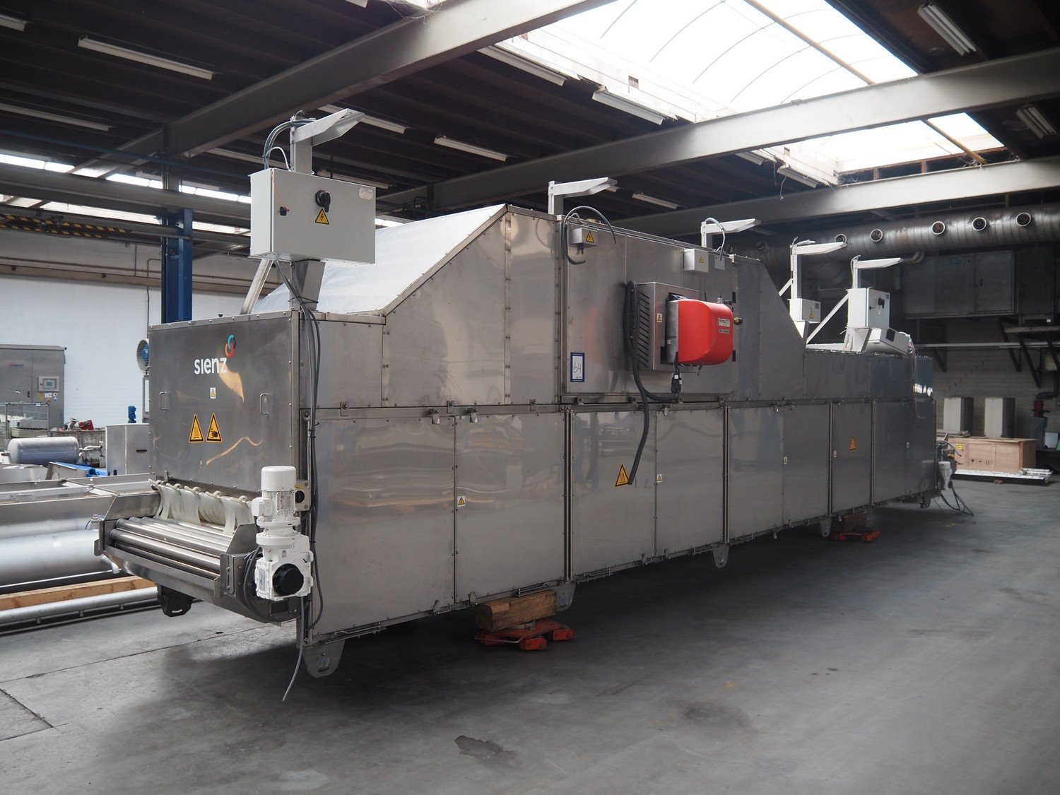 Sienz S.L. drying tunnel, model: SMCC1.1, serial number: 20154900/500, 400 V, 3 Ph, 50 Hz, 14 A, s/s rollers, roller width: 1500 mm, total dimensions: 10000 mm x 2300 mm x 3550 mm. Kavel locatie: Langereijt 29A, 5091 JP Middelbeers, Nederland
