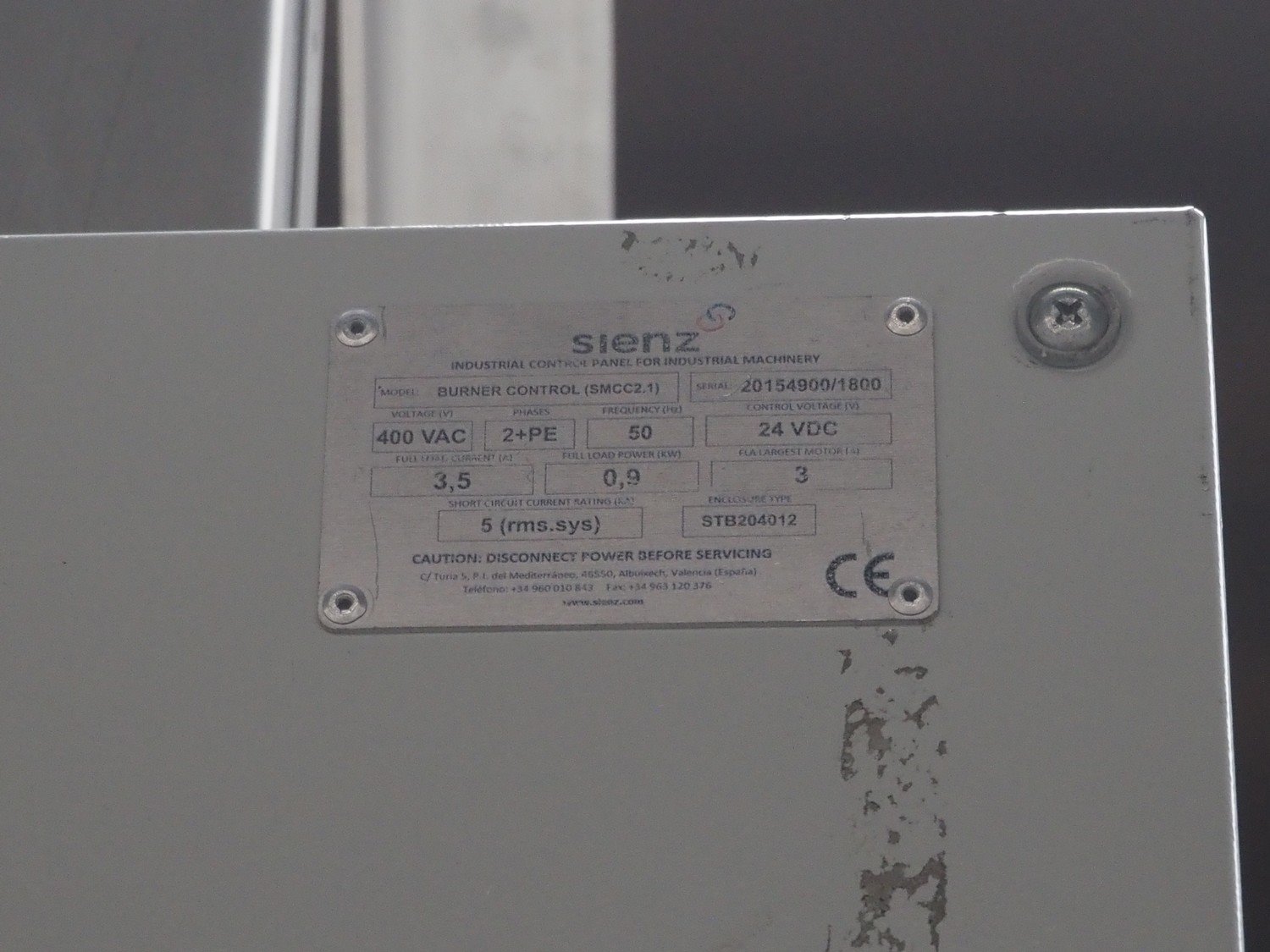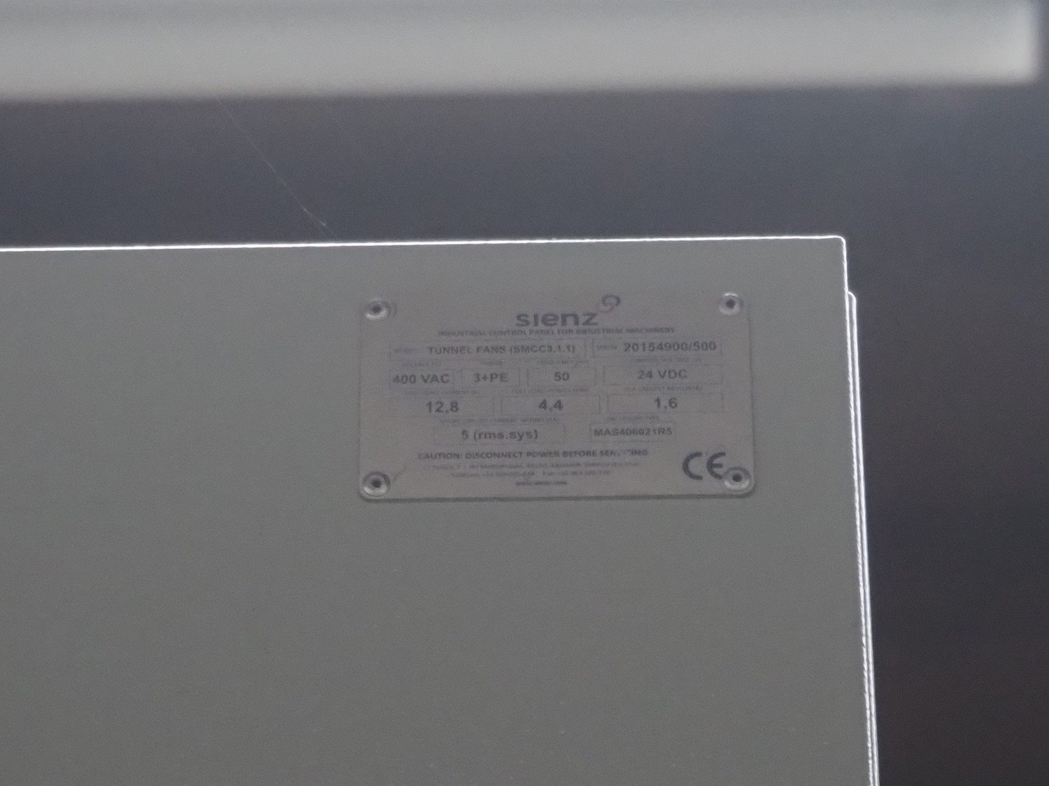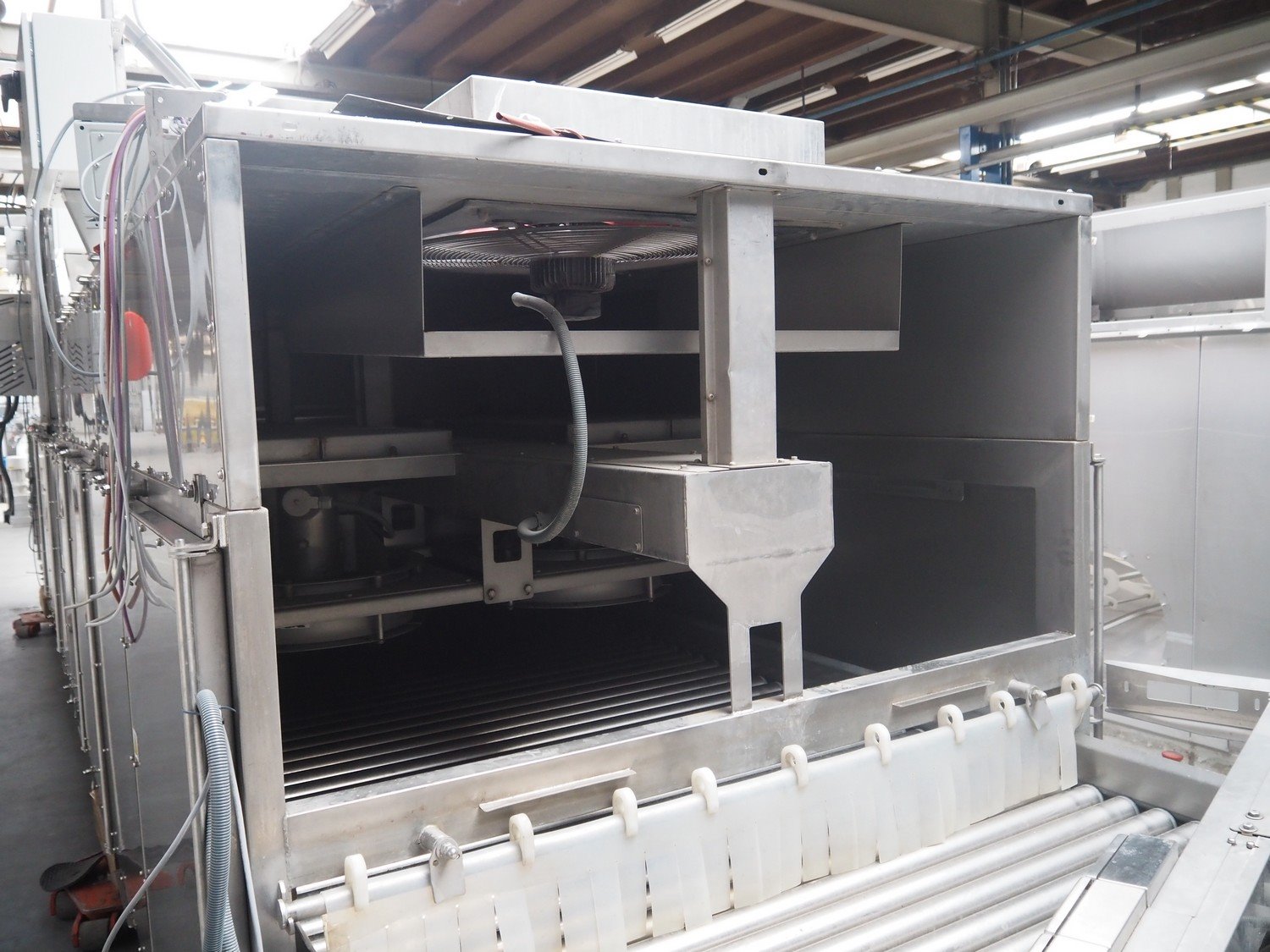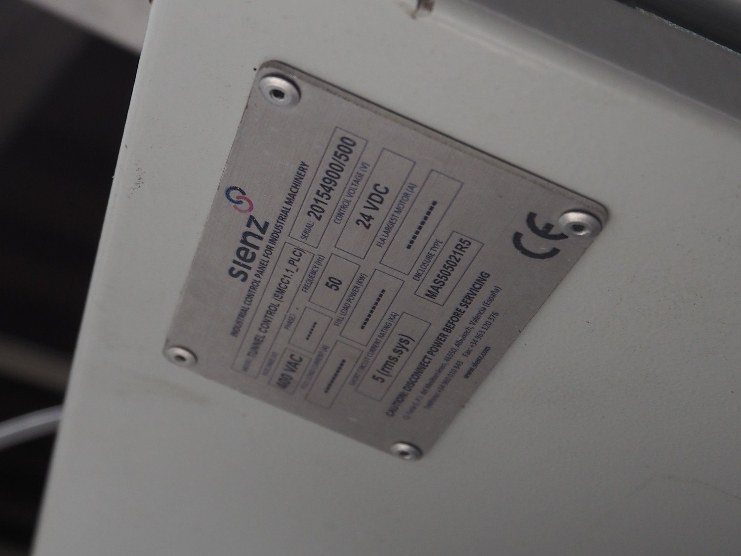 Sienz S.L. drying tunnel, model: SMCC1.1, serial number: 20154900/500, 400 V, 3 Ph, 50 Hz, 14 A, s/s rollers, roller width: 1500 mm, total dimensions: 10000 mm x 2300 mm x 3550 mm. Kavel locatie: Langereijt 29A, 5091 JP Middelbeers, Nederland