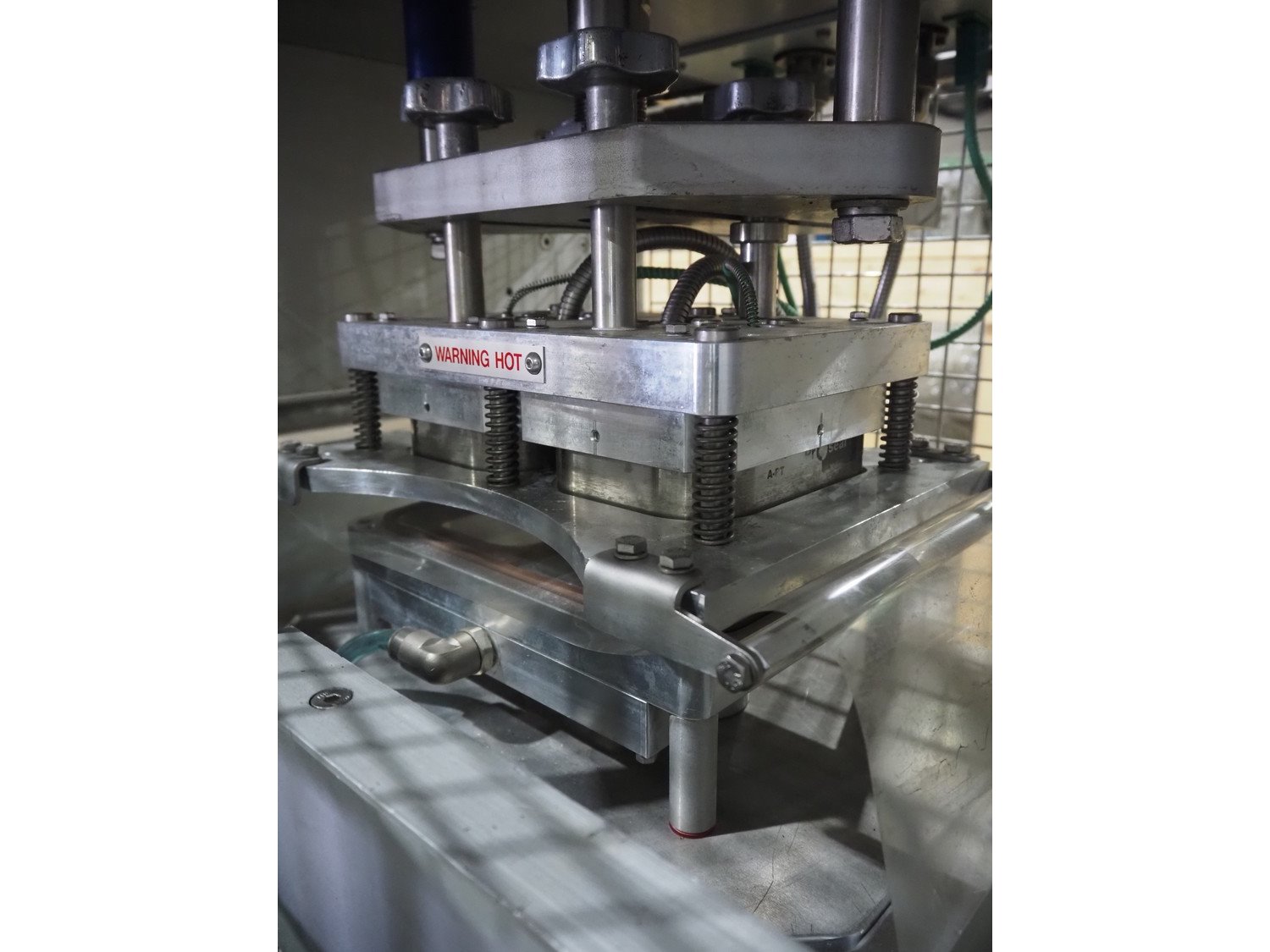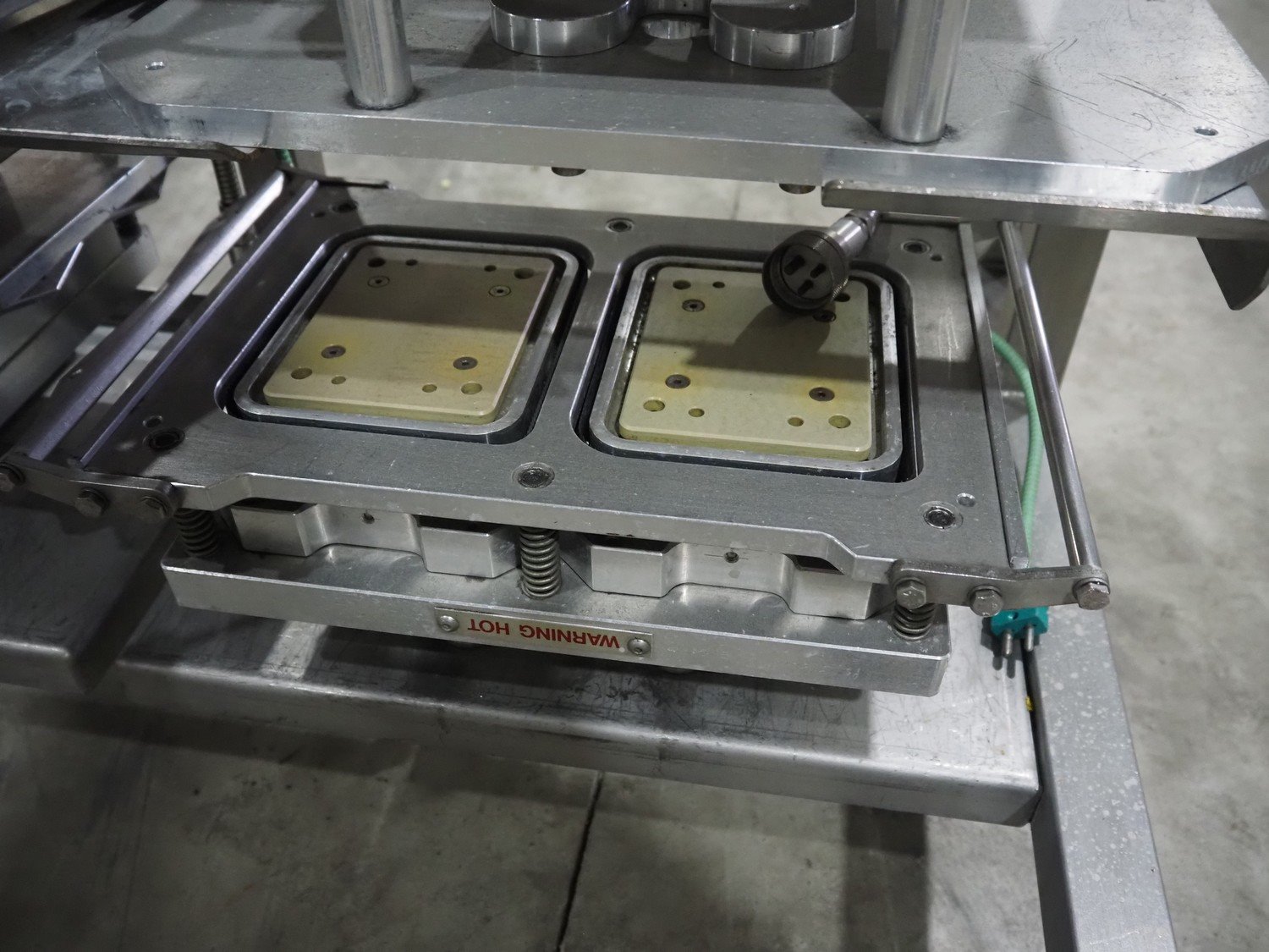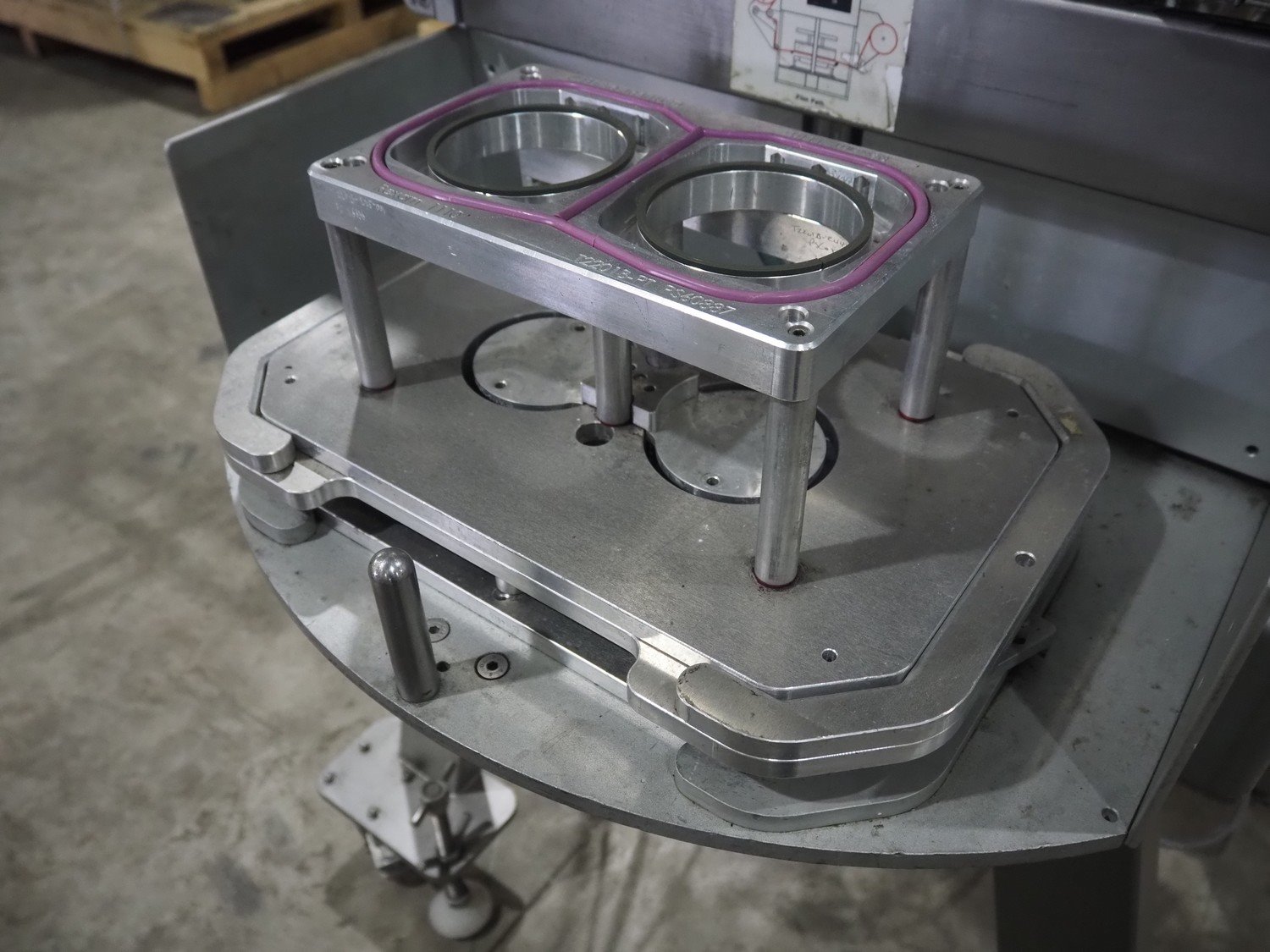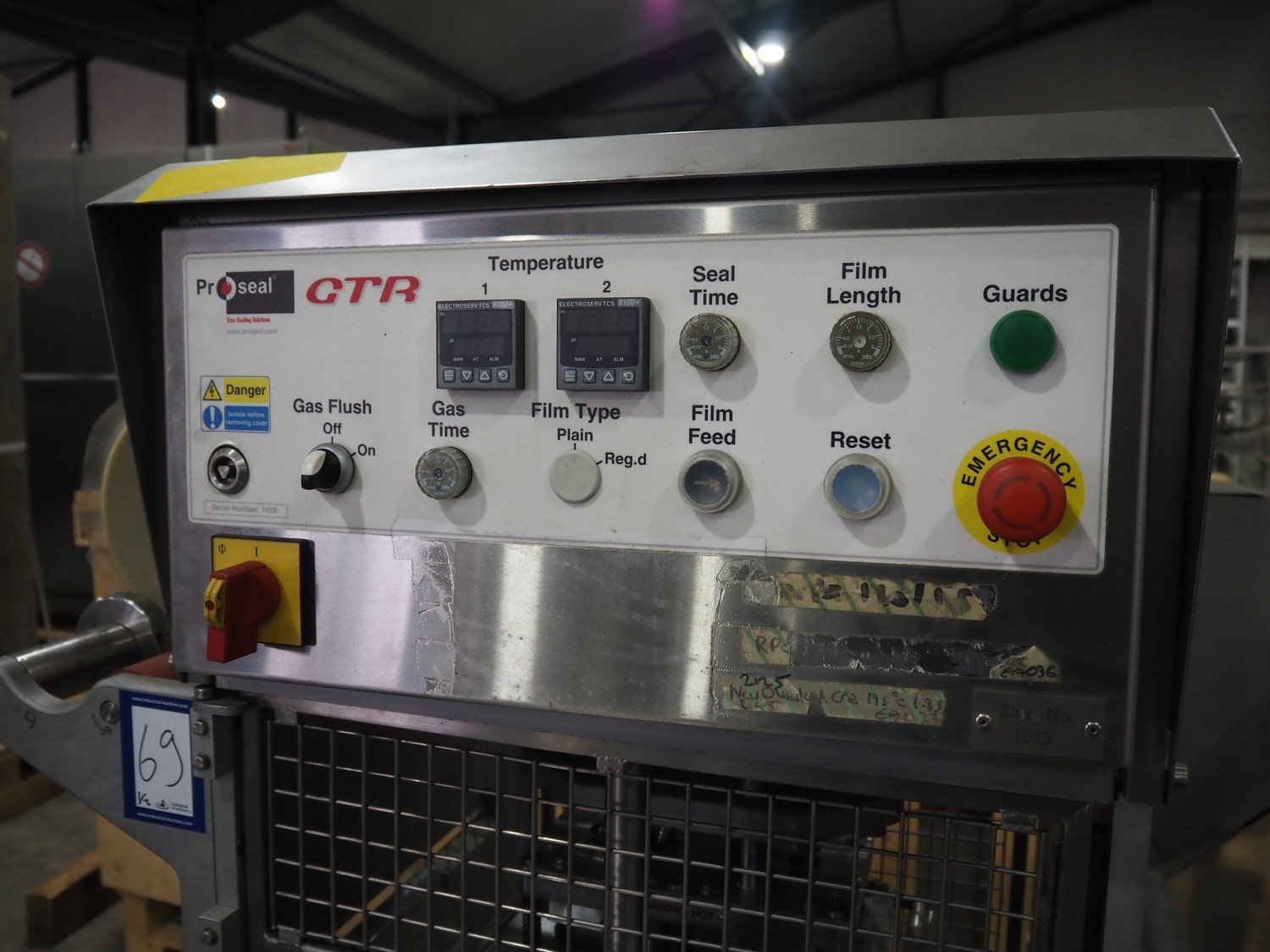 Proseal UK LTD mobile rotating traysealer, serial number: 1058, 240 V, 50 Hz, 5 bar, film width: 205 mm, dye: (2x) 105 mm x 160 mm, total dimensions: 1150 mm x 1000 mm x 1680 mm. Including s/s rack with large amount of extra forms, dye: (2x) 140 mm x 165 mm, (2x) 120 mm x 160 mm, (2x) 170 mm x 215 mm, 175 mm x 215 mm, (2x) 115 mm x 115 mm, (2x) 165 mm x 215 mm, (2x) Ø 135 mm, total dimensions rack: 1000 mm x 900 mm x 1600 mm. Kavel locatie: Langereijt 29A, 5091 JP Middelbeers, Nederland