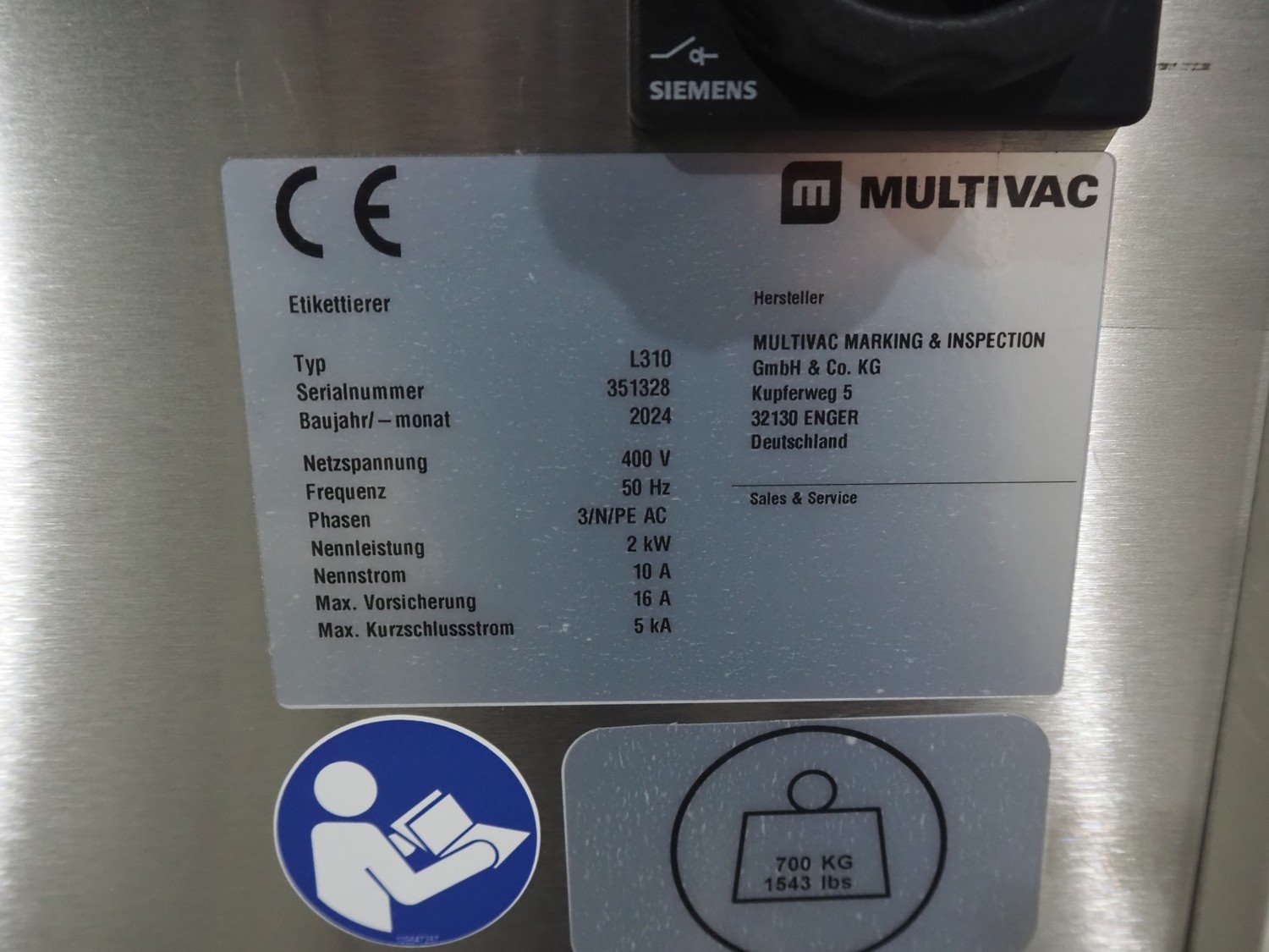 Multivac labelling machine, type: L310, serial number: 351328, year of construction: 2024, 400 V, 3 Ph, 50 Hz, 10 A, 2 kW, plastic belt, belt width: 90 mm, label width: 270 mm, total dimensions: 3850 mm x 1260 mm x 2000 mm. Kavel locatie: Langereijt 29A, 5091 JP Middelbeers, Nederland