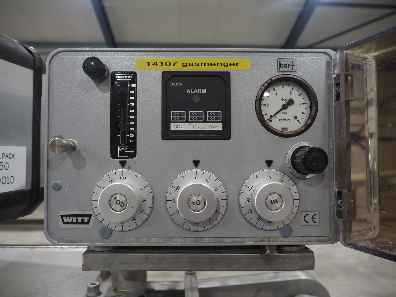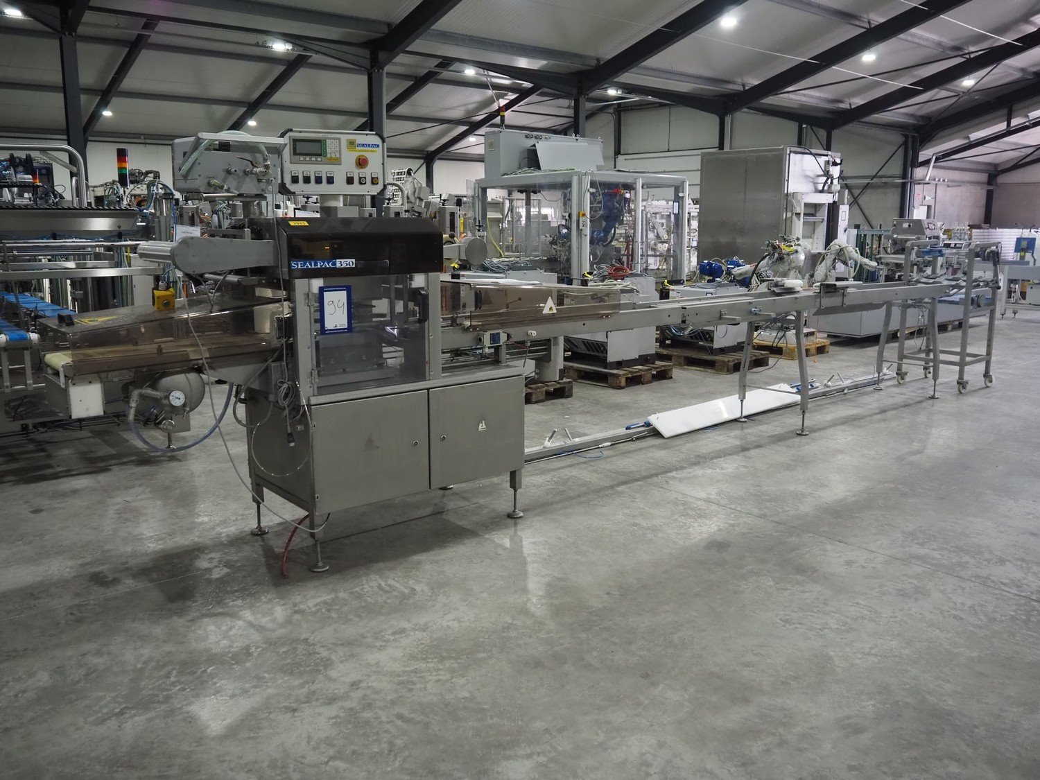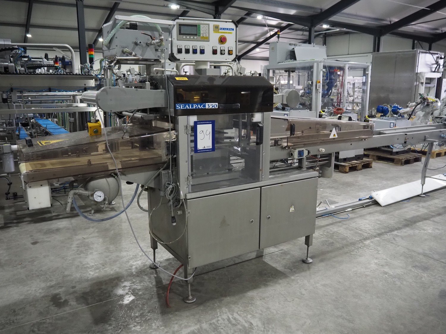 Sealpac traysealer, type: SEALPAC 350, serial number: TVG 02 823 01, year of construction: 2003, 400 V, 3 Ph, 3 kW, weight: 450 kg, dimensions dye: (2x) ø 115 mm, plastic belt, belt width: 250 mm, with Witt Gasetechnik gas mixing station total dimensions: 7000 mm x 700 mm x 1830 mm. Including s/s tool trolley, dimensions: 800 mm x 700 mm x 1350 mm. Kavel locatie: Langereijt 29A, 5091 JP Middelbeers, Nederland