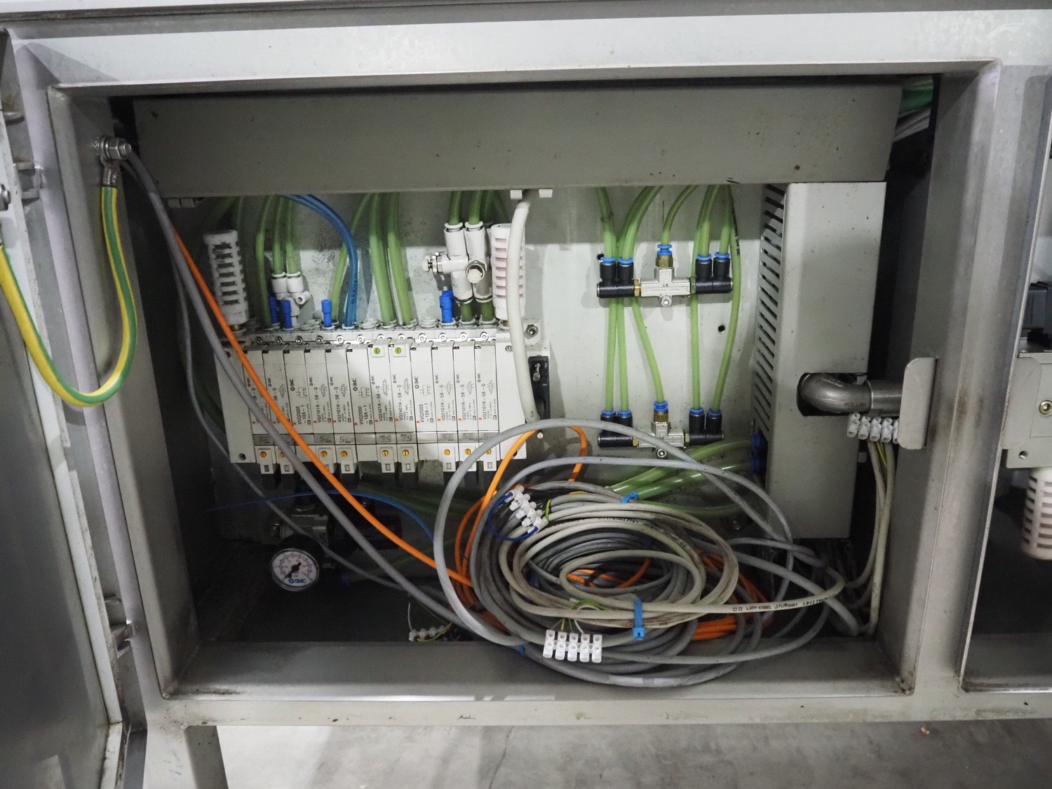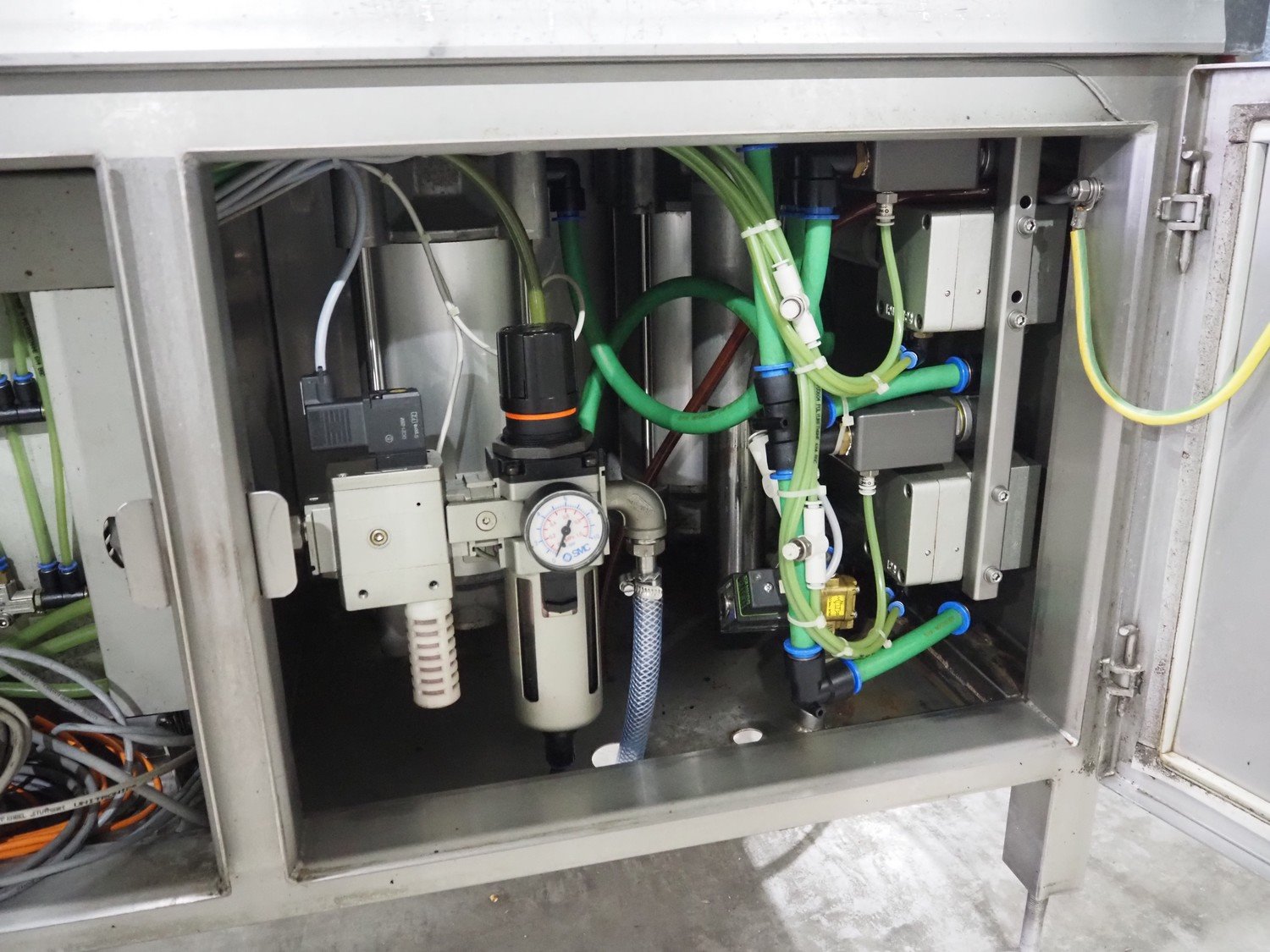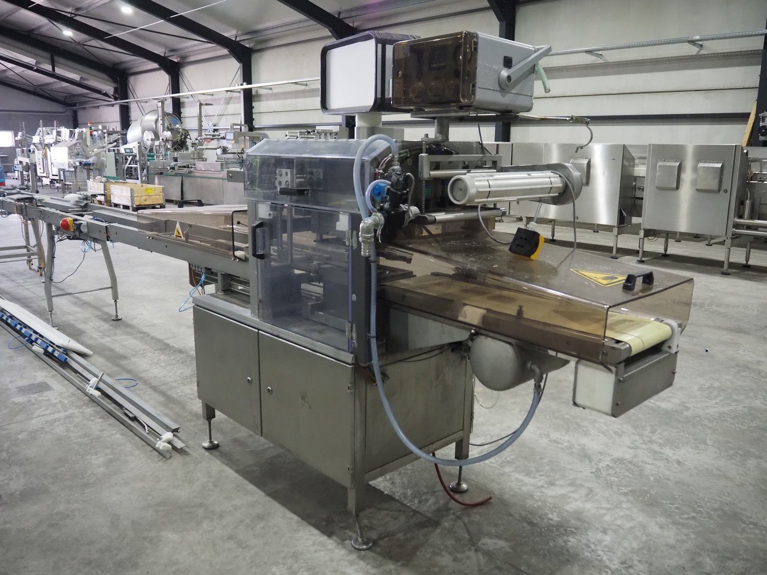 Sealpac traysealer, type: SEALPAC 350, serial number: TVG 02 823 01, year of construction: 2003, 400 V, 3 Ph, 3 kW, weight: 450 kg, dimensions dye: (2x) ø 115 mm, plastic belt, belt width: 250 mm, with Witt Gasetechnik gas mixing station total dimensions: 7000 mm x 700 mm x 1830 mm. Including s/s tool trolley, dimensions: 800 mm x 700 mm x 1350 mm. Kavel locatie: Langereijt 29A, 5091 JP Middelbeers, Nederland
