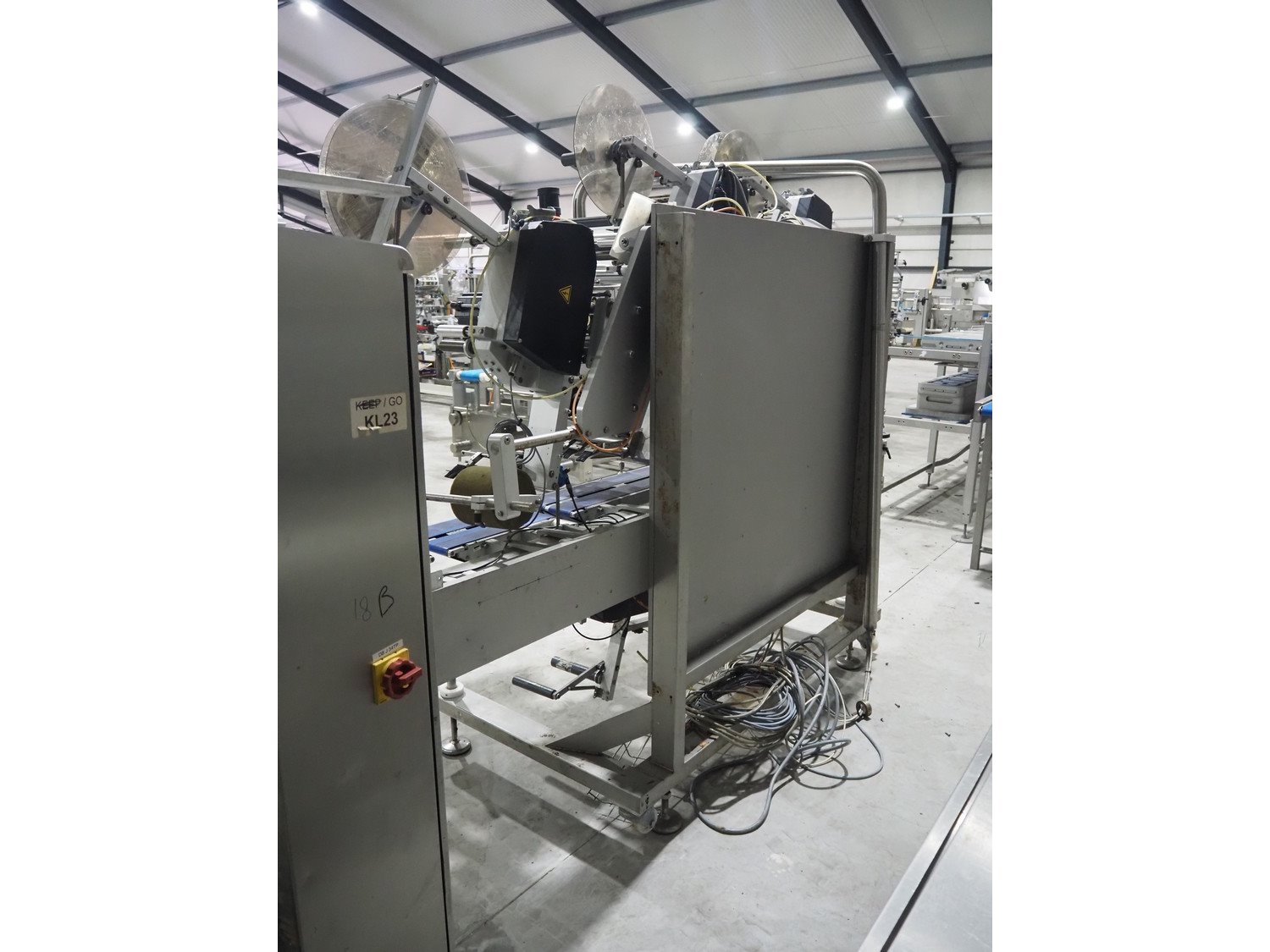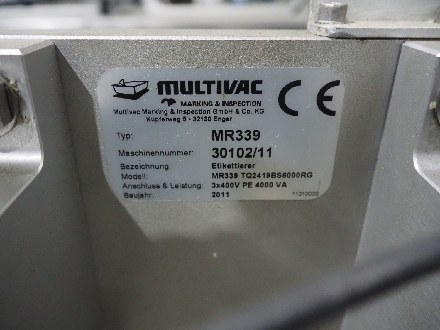 Multivac labeller with double top and double bottom labeller, type: MR339, model: MR339 TQ2419BS6000RG, machine number: 30102/11, year of construction: 2011, 3x400 V, 4000 VA, plastic belts, belt width: (2x) 85 mm, total dimensions labeller: 2600 mm x 950 mm x 2100 mm, including s/s switch cabinet, dimensions: 1200 mm x 550 mm x 1680 mm. Kavel locatie: Langereijt 29A, 5091 JP Middelbeers, Nederland