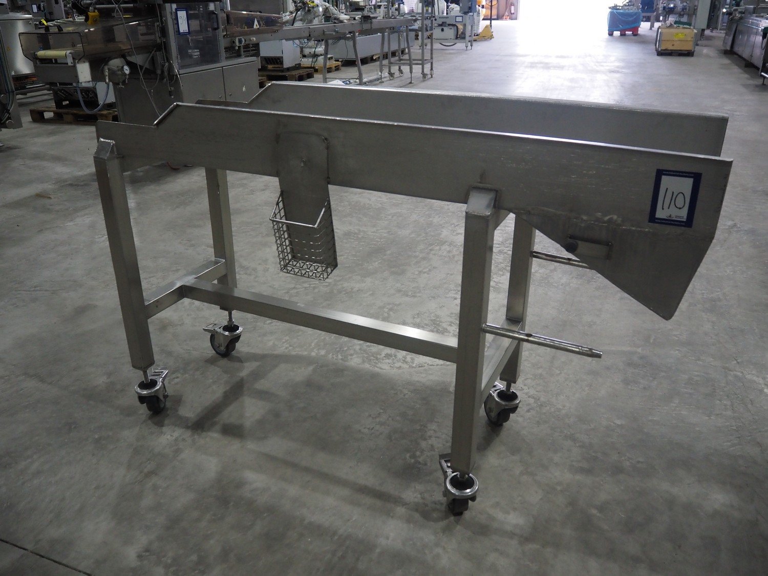 S/s mobile trolley, working width: 390 mm, total dimensions: 1500 mm x 480 mm x 1010 mm. Kavel locatie: Langereijt 29A, 5091 JP Middelbeers, Nederland