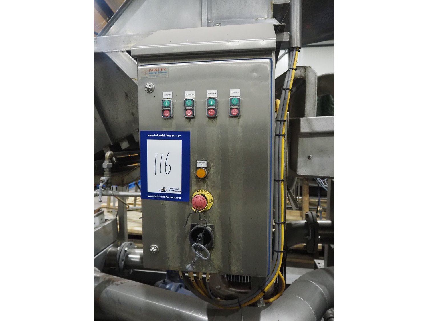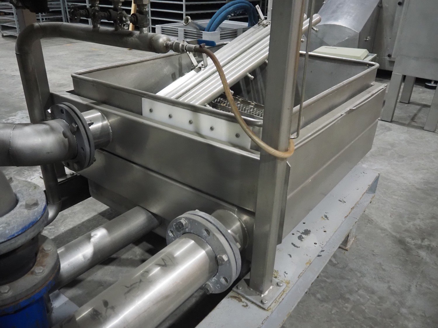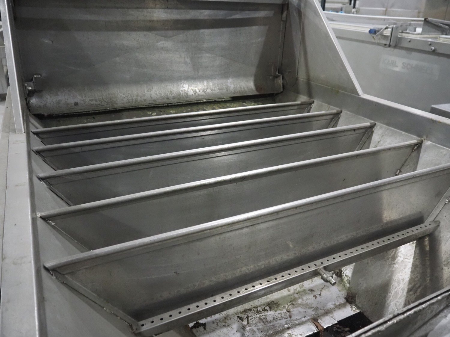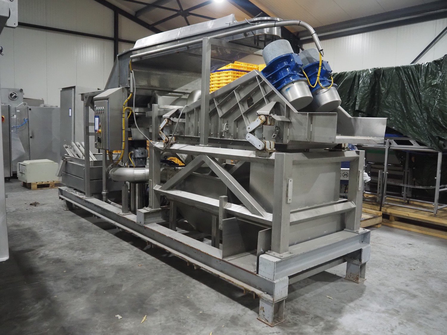 Vegetable washer with vibrating gutter, gutter width: 750 mm, perforations: Ø 5 mm, total dimensions: 5500 mm x 1600 mm x 2700 mm. Kavel locatie: Langereijt 29A, 5091 JP Middelbeers, Nederland