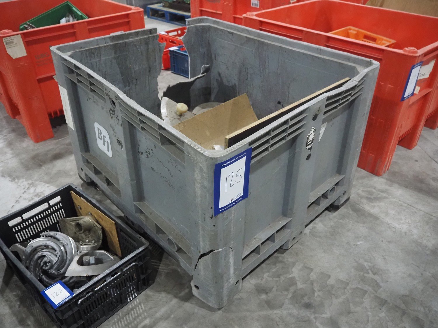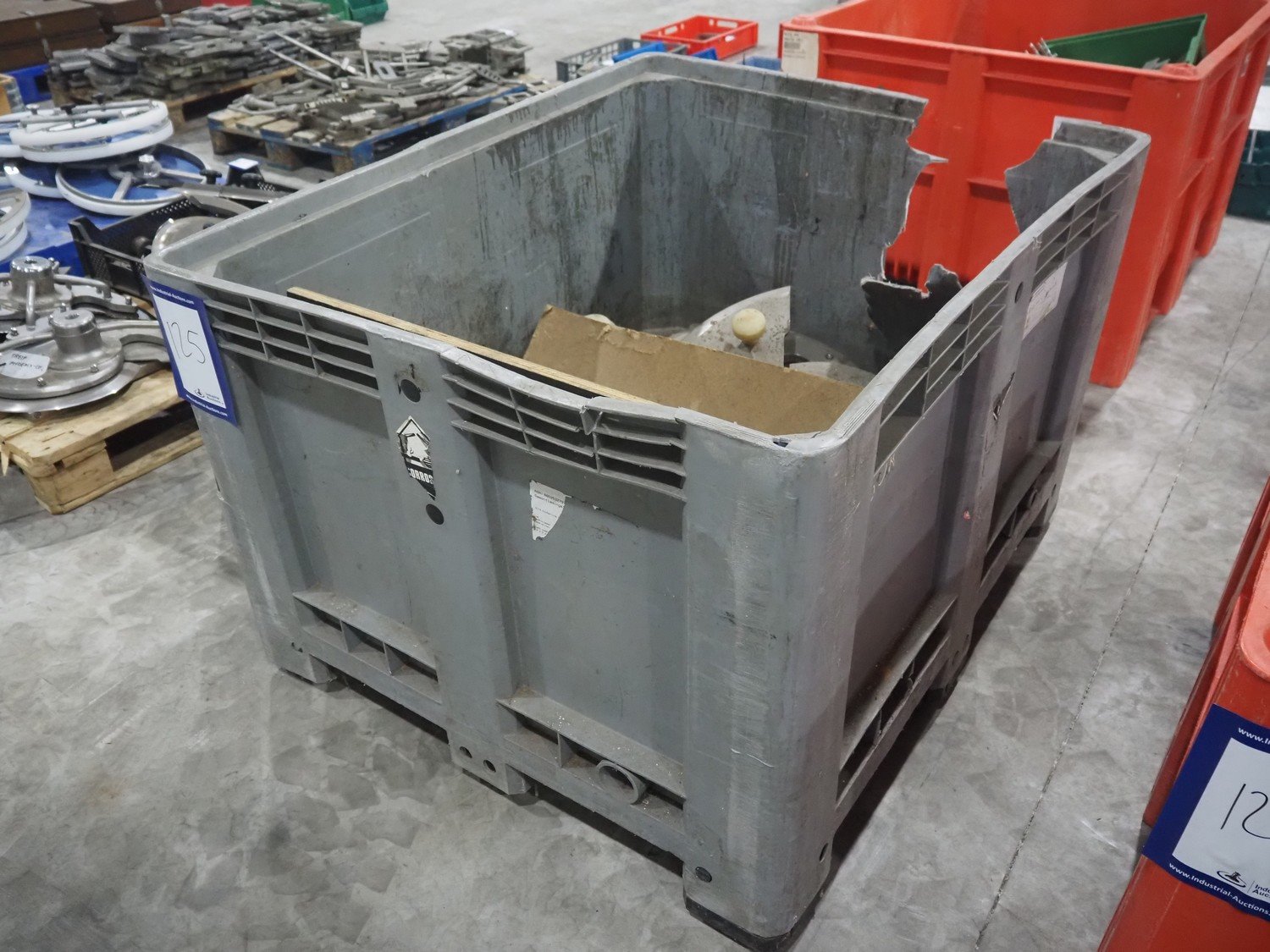 Plastic pallet box with various knifes for slicers. Kavel locatie: Langereijt 29A, 5091 JP Middelbeers, Nederland