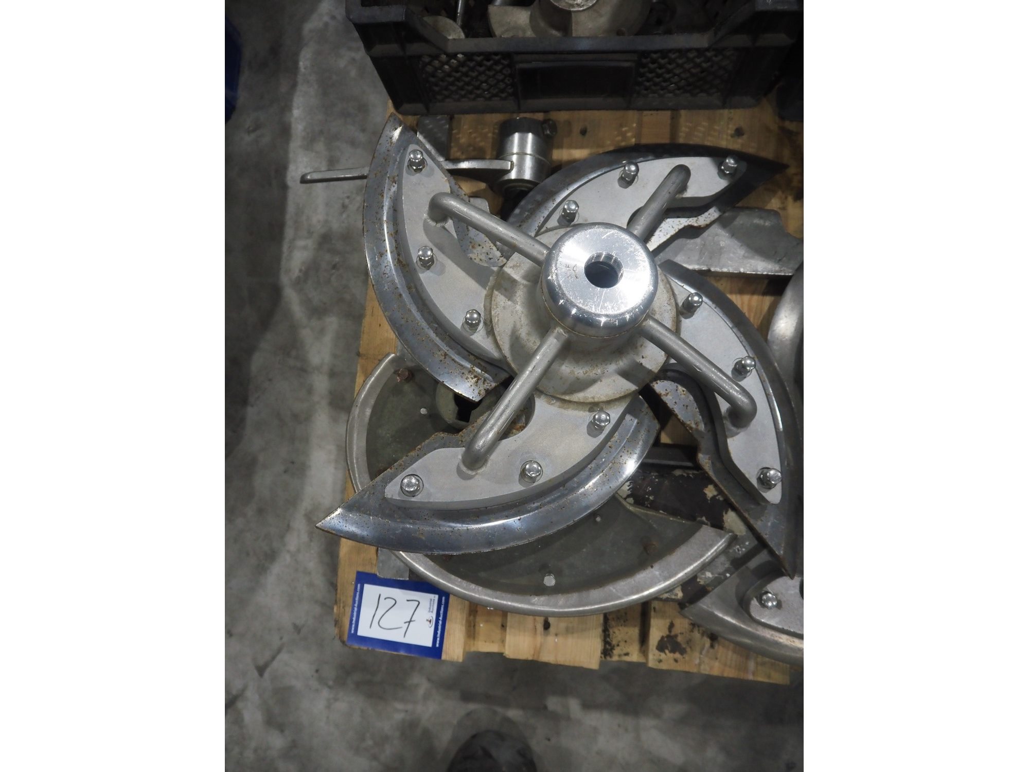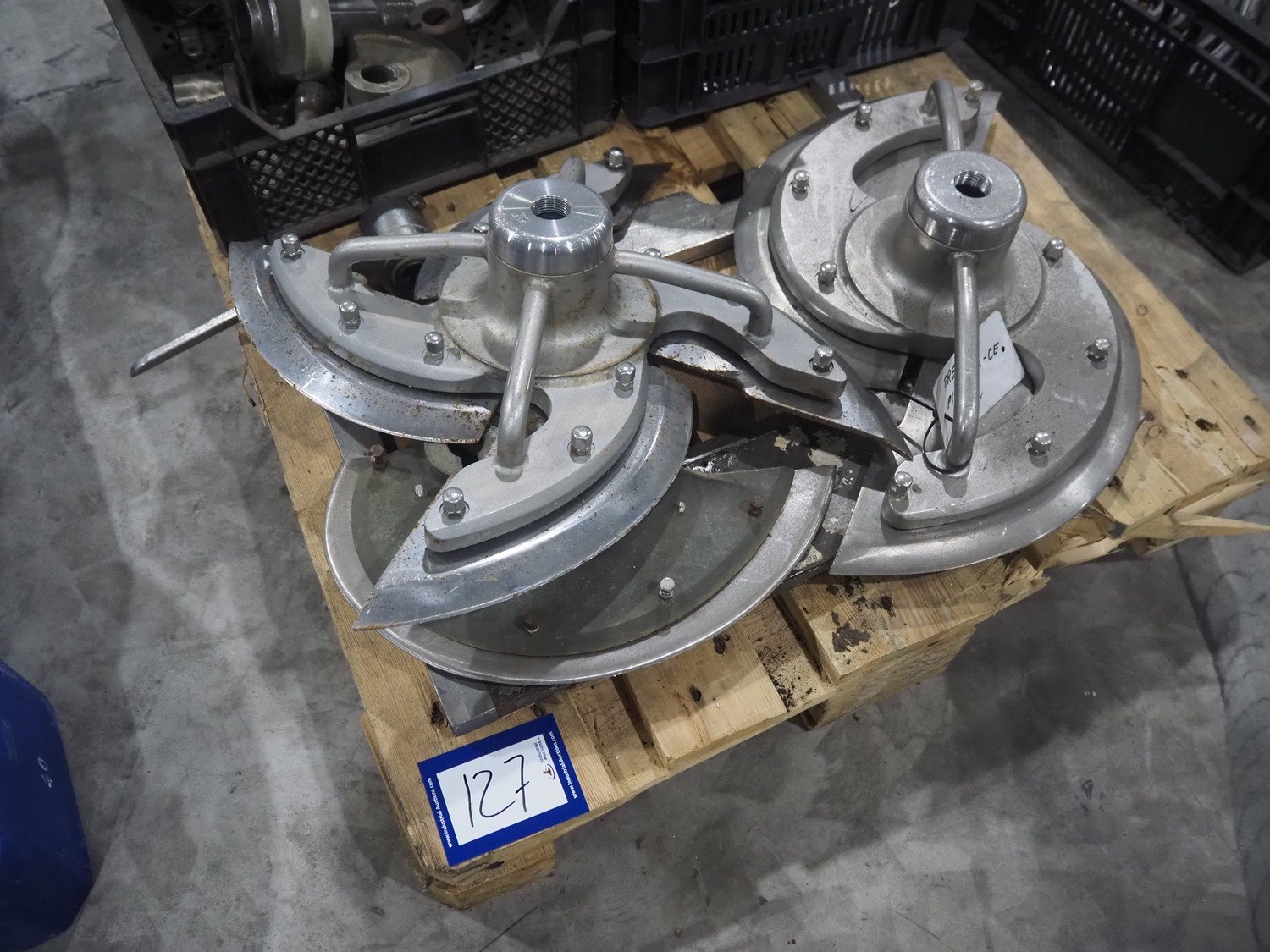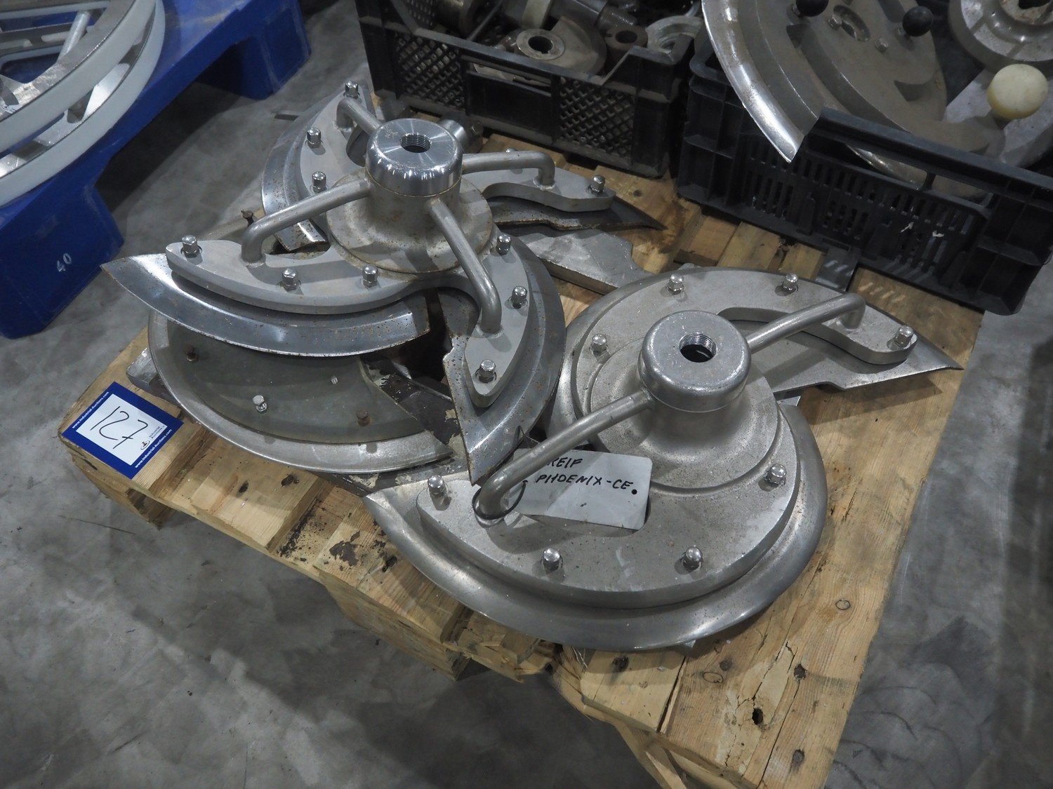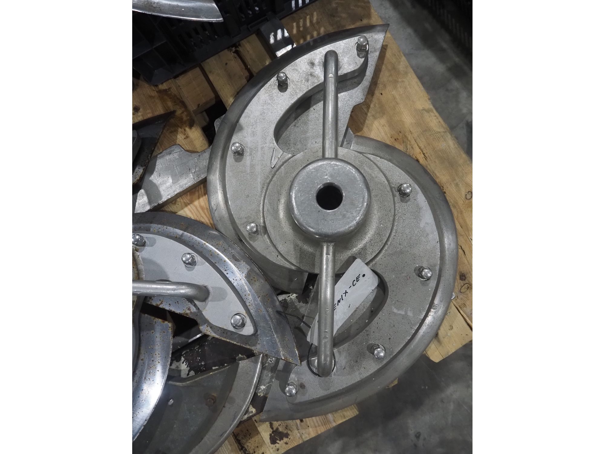 Pallet with various knifes for dicer. Kavel locatie: Langereijt 29A, 5091 JP Middelbeers, Nederland