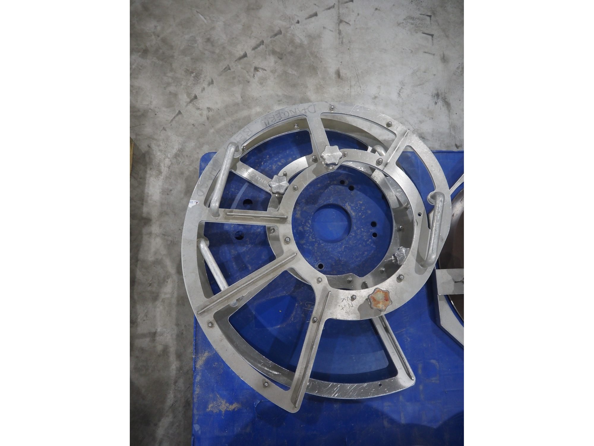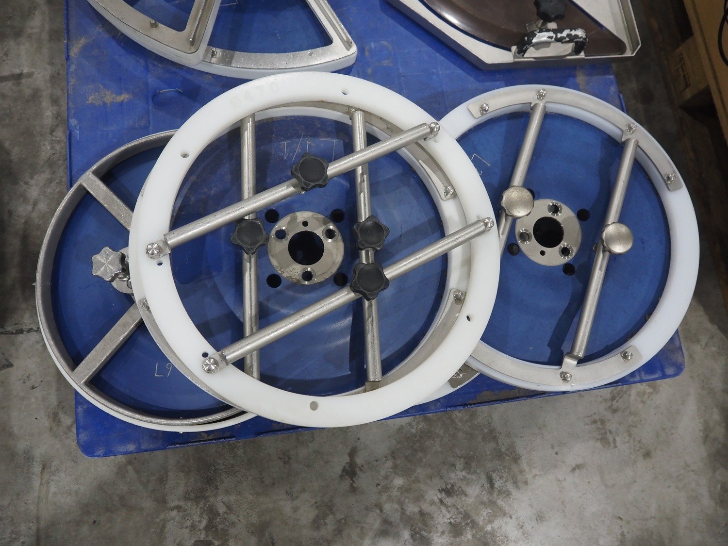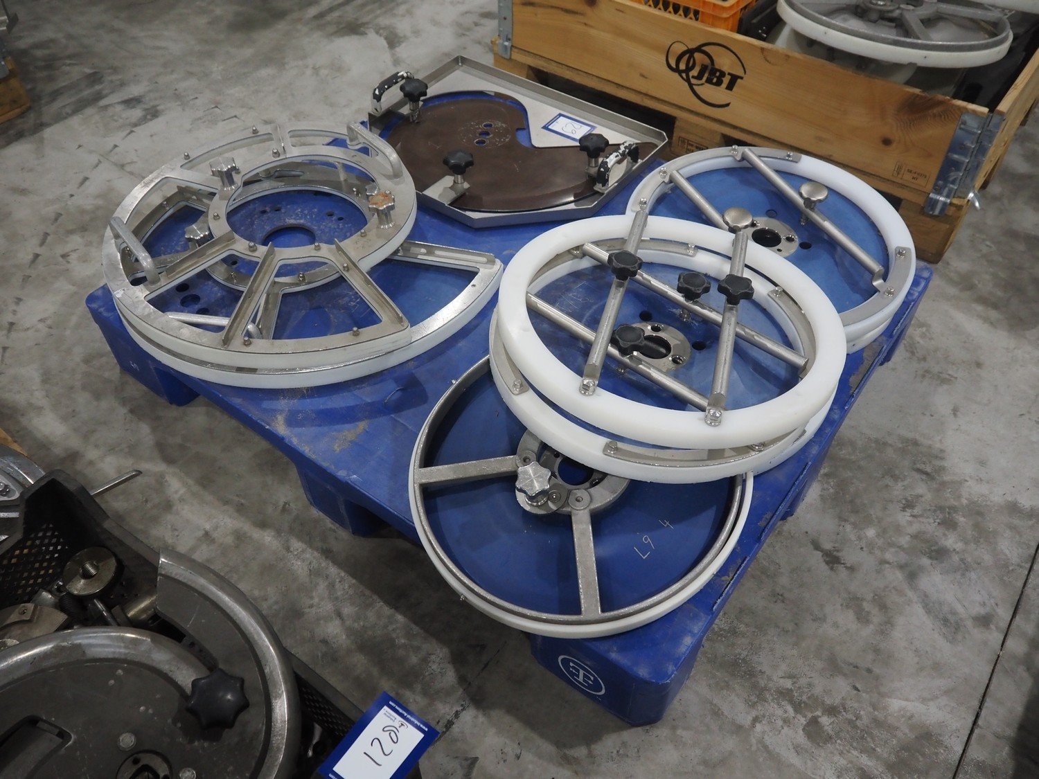 Pallet with knifes for Weber slicer. Kavel locatie: Langereijt 29A, 5091 JP Middelbeers, Nederland