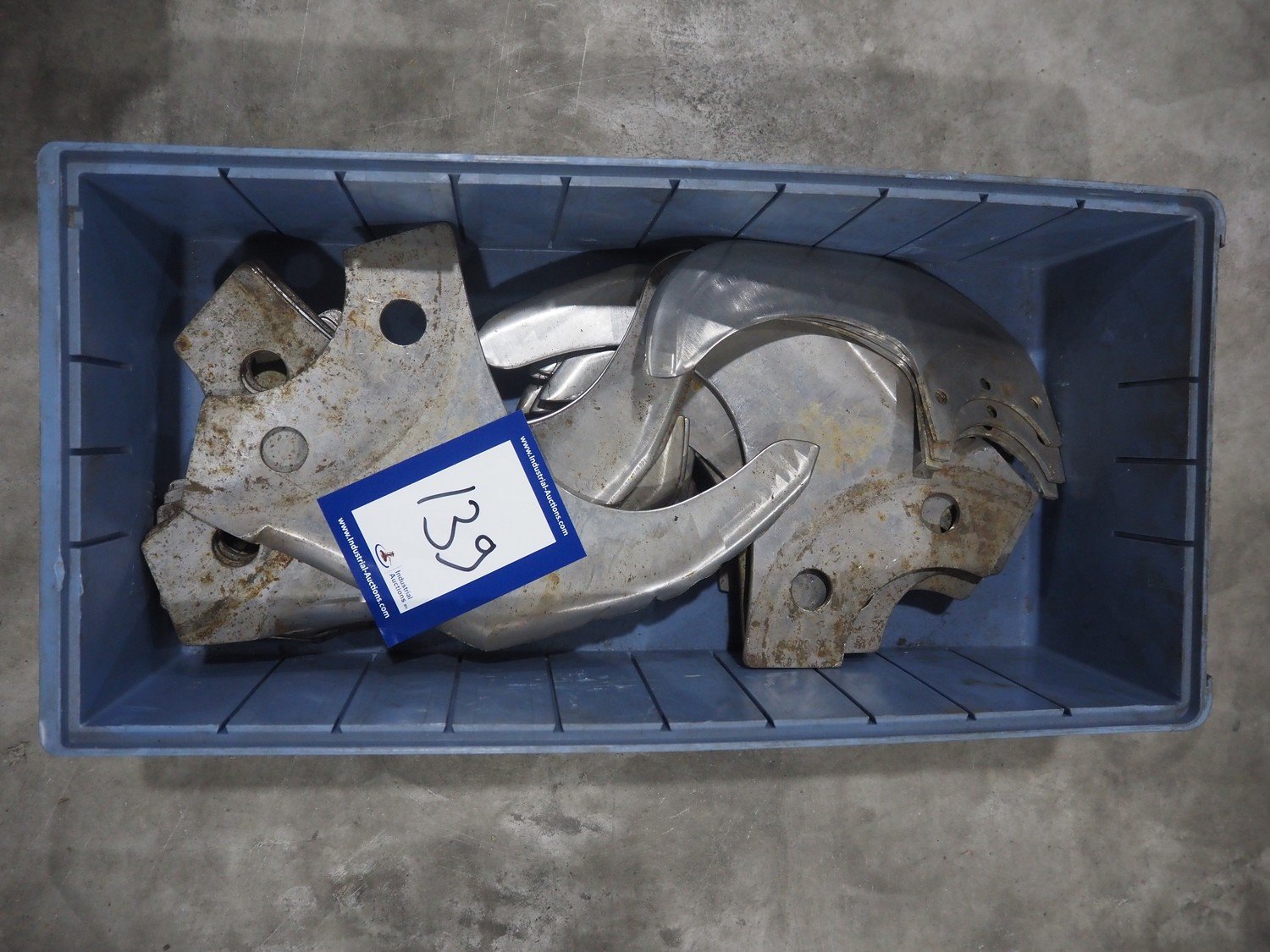 Bin with with cutter knifes. Kavel locatie: Langereijt 29A, 5091 JP Middelbeers, Nederland