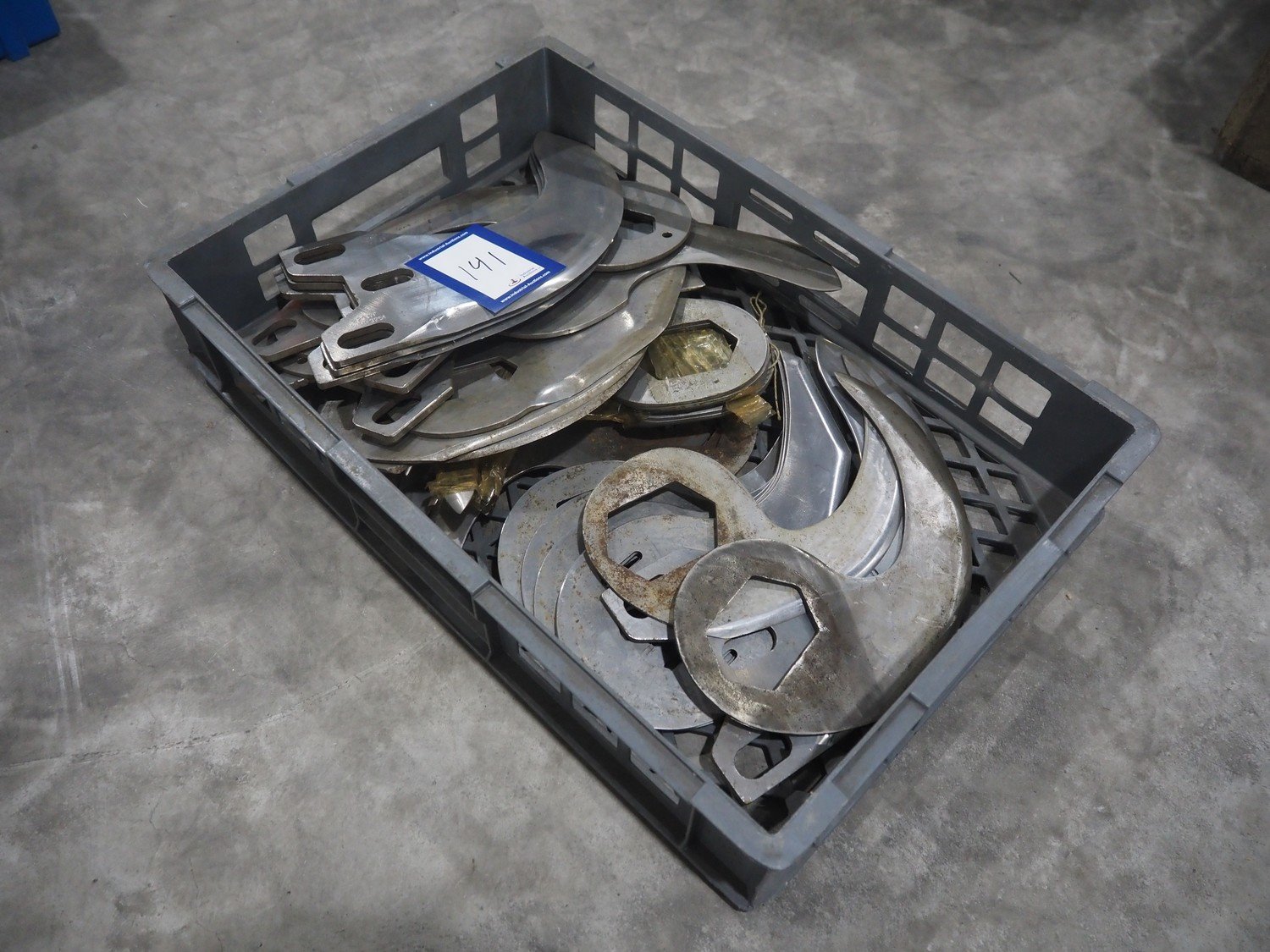 Crate with cutter knifes. Kavel locatie: Langereijt 29A, 5091 JP Middelbeers, Nederland