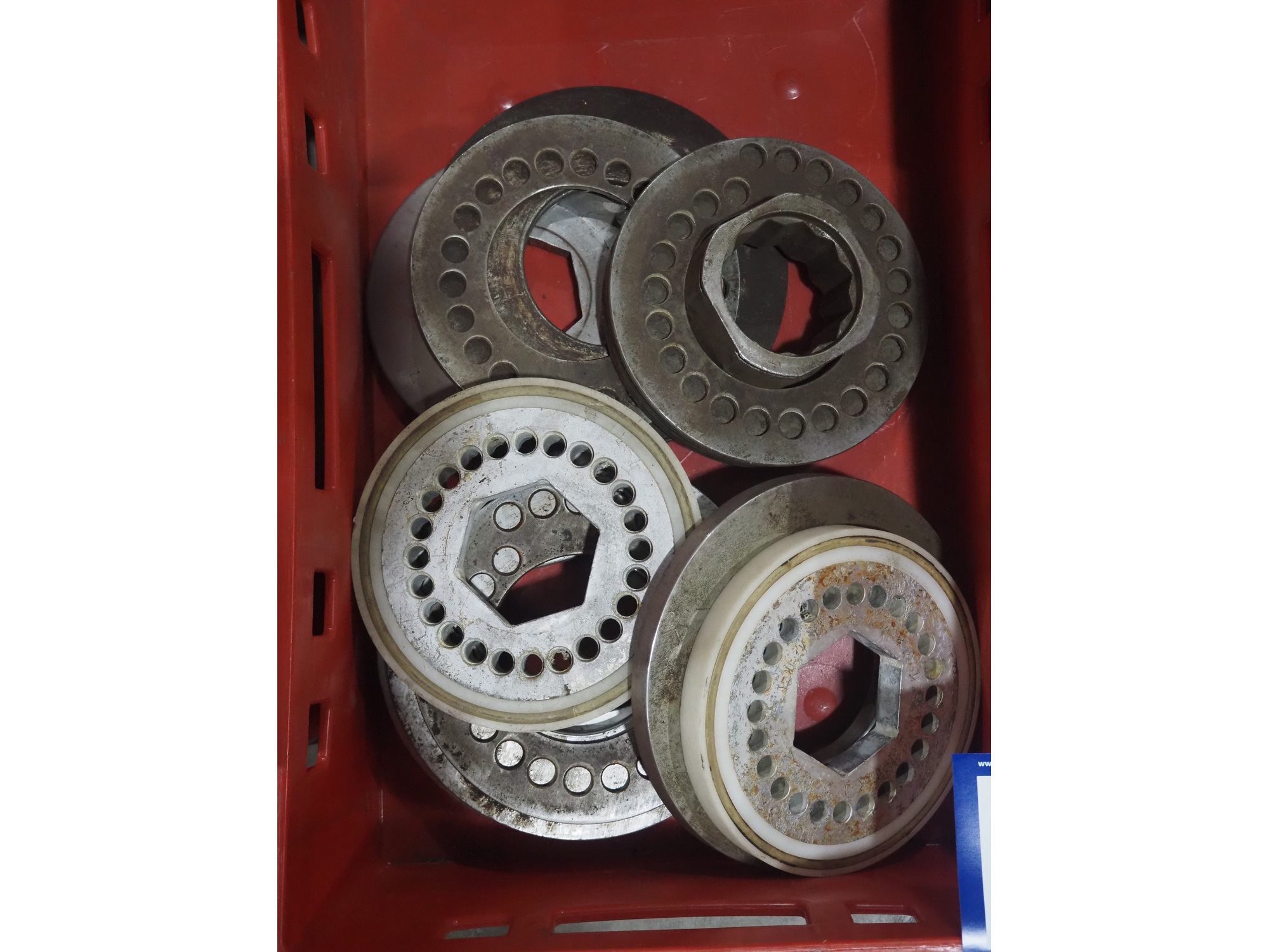 Plastic crate with machine parts. Kavel locatie: Langereijt 29A, 5091 JP Middelbeers, Nederland