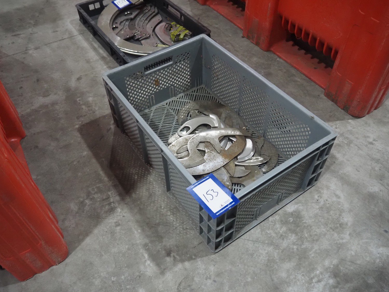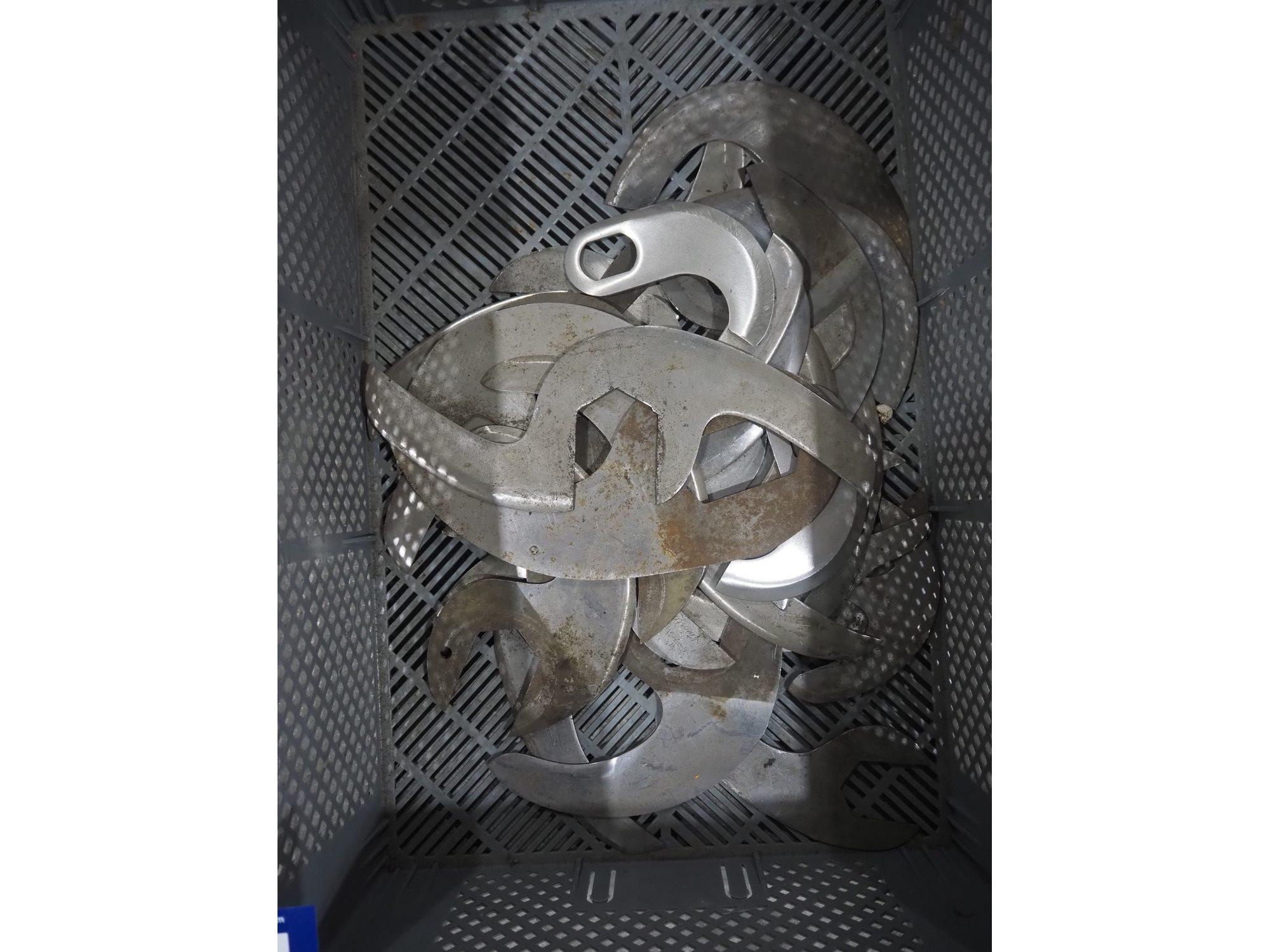Plastic crate with various knifes for cutter. Kavel locatie: Langereijt 29A, 5091 JP Middelbeers, Nederland