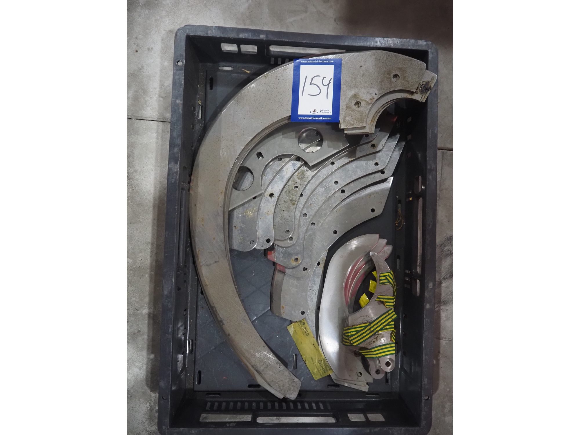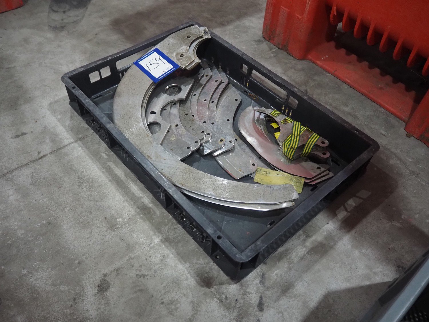 Plastic crate with various knifes for cutter. Kavel locatie: Langereijt 29A, 5091 JP Middelbeers, Nederland