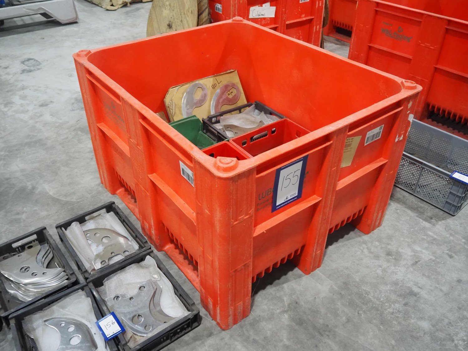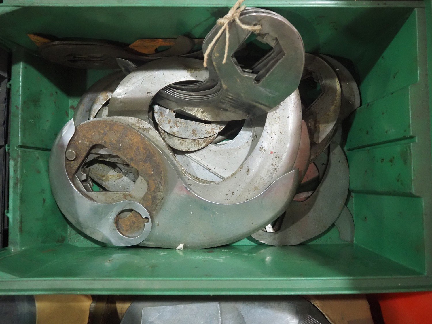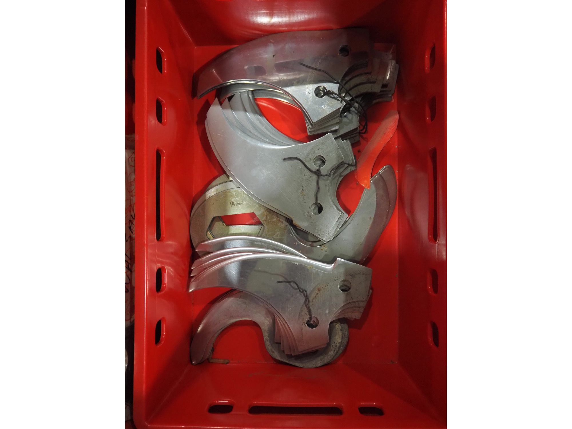 Plastic pallet box with various knifes for cutter. Kavel locatie: Langereijt 29A, 5091 JP Middelbeers, Nederland