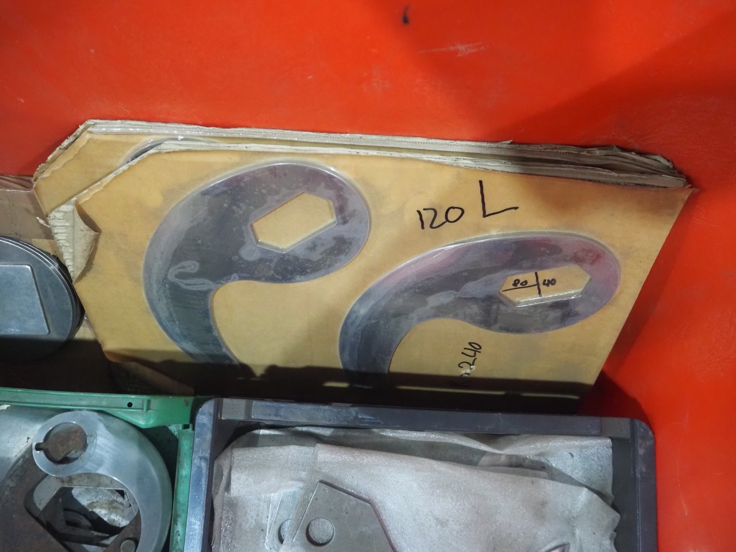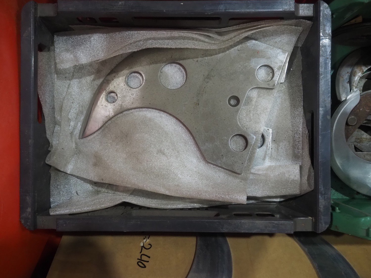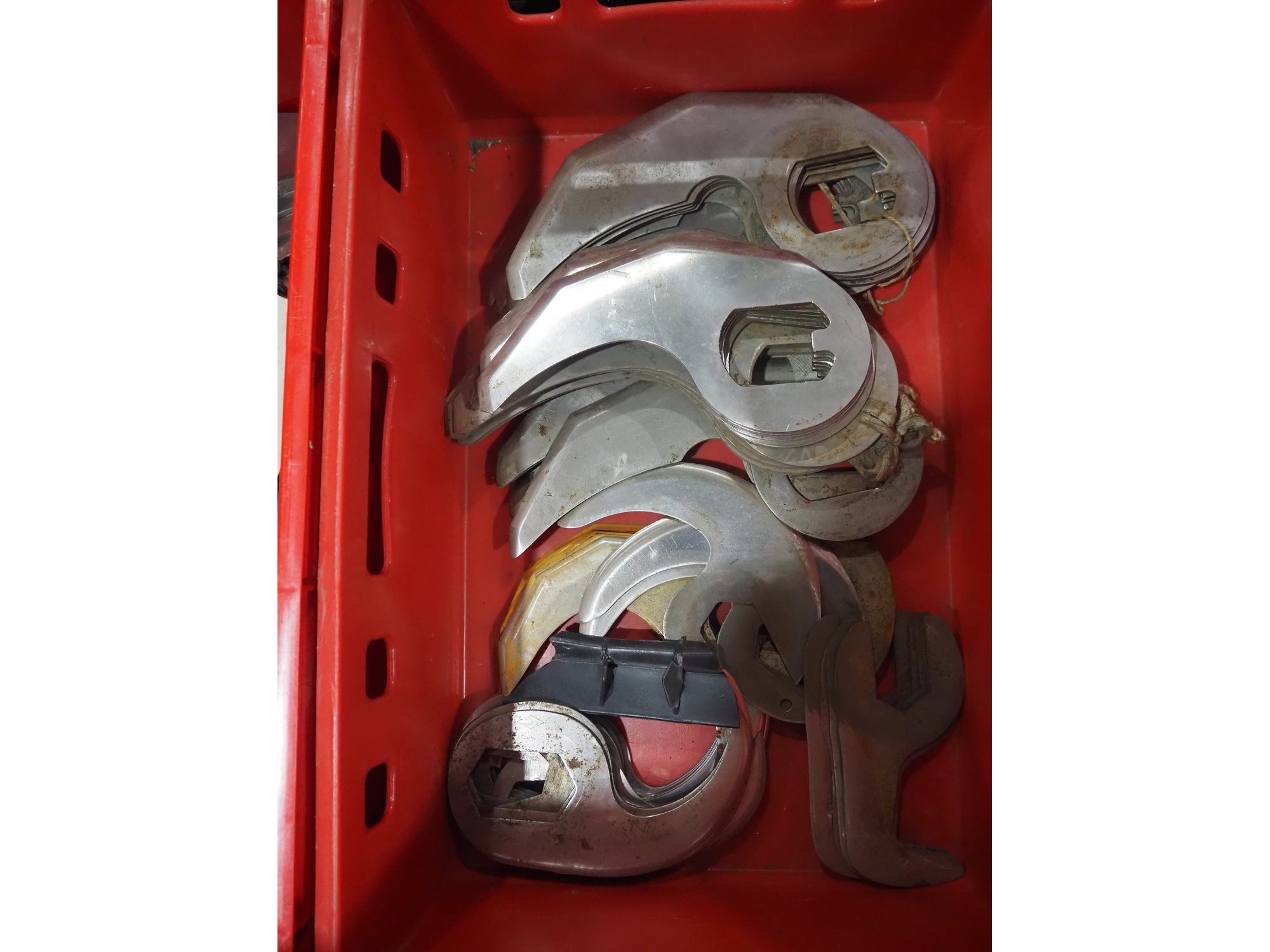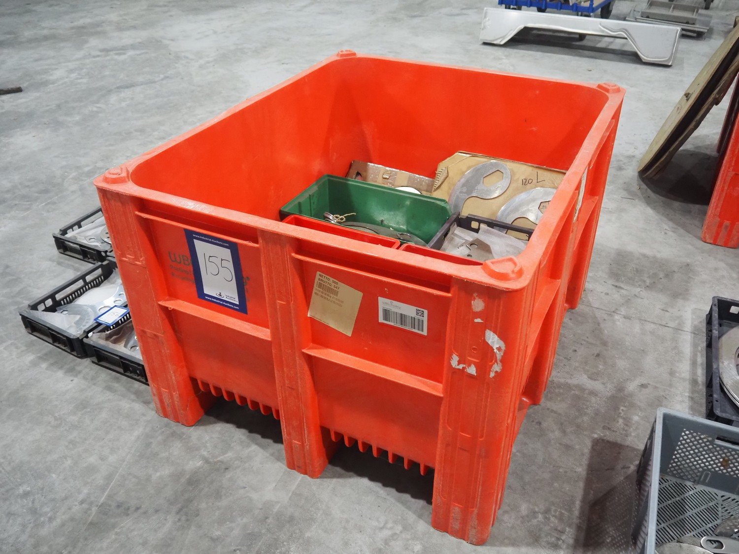 Plastic pallet box with various knifes for cutter. Kavel locatie: Langereijt 29A, 5091 JP Middelbeers, Nederland