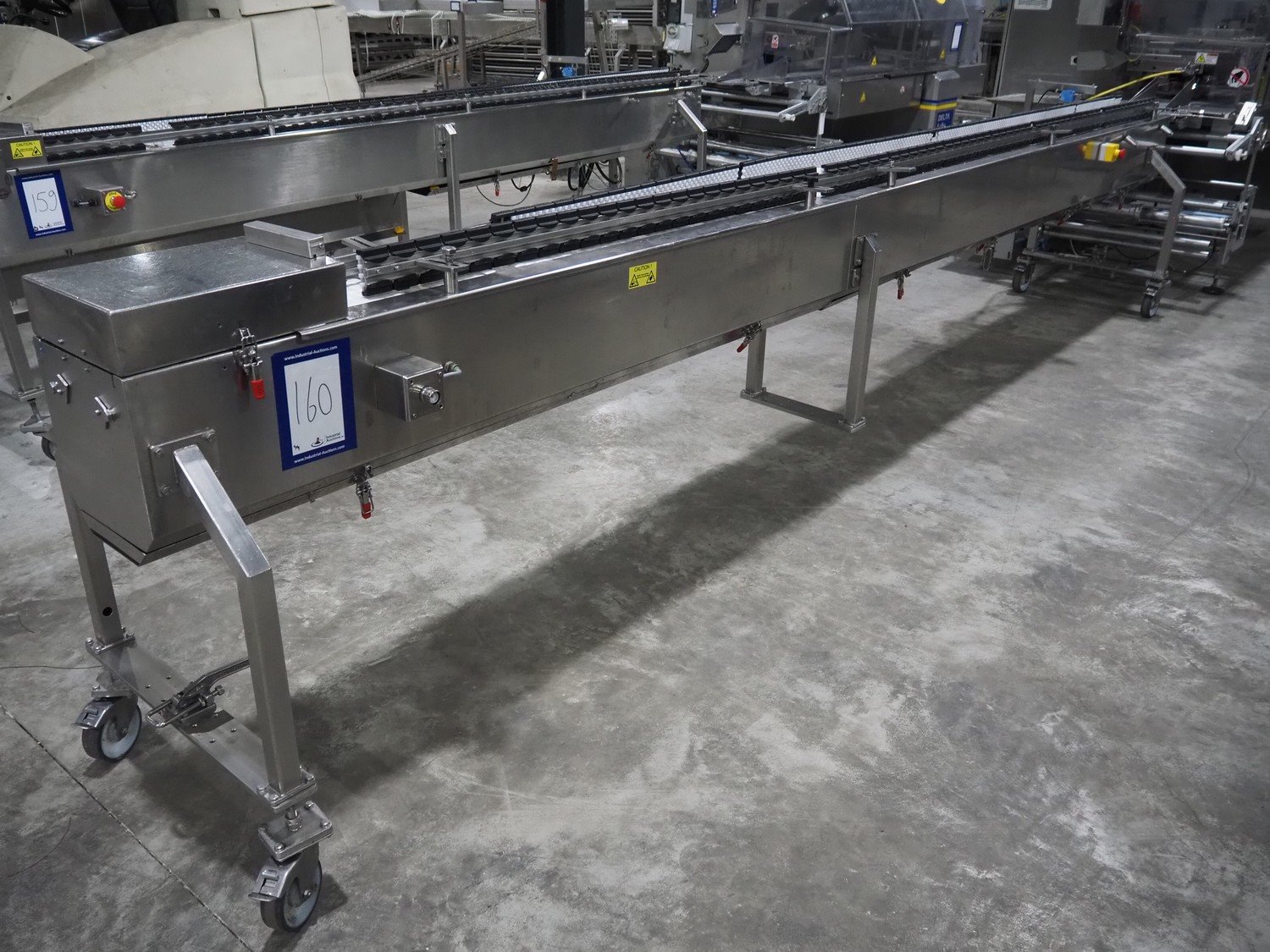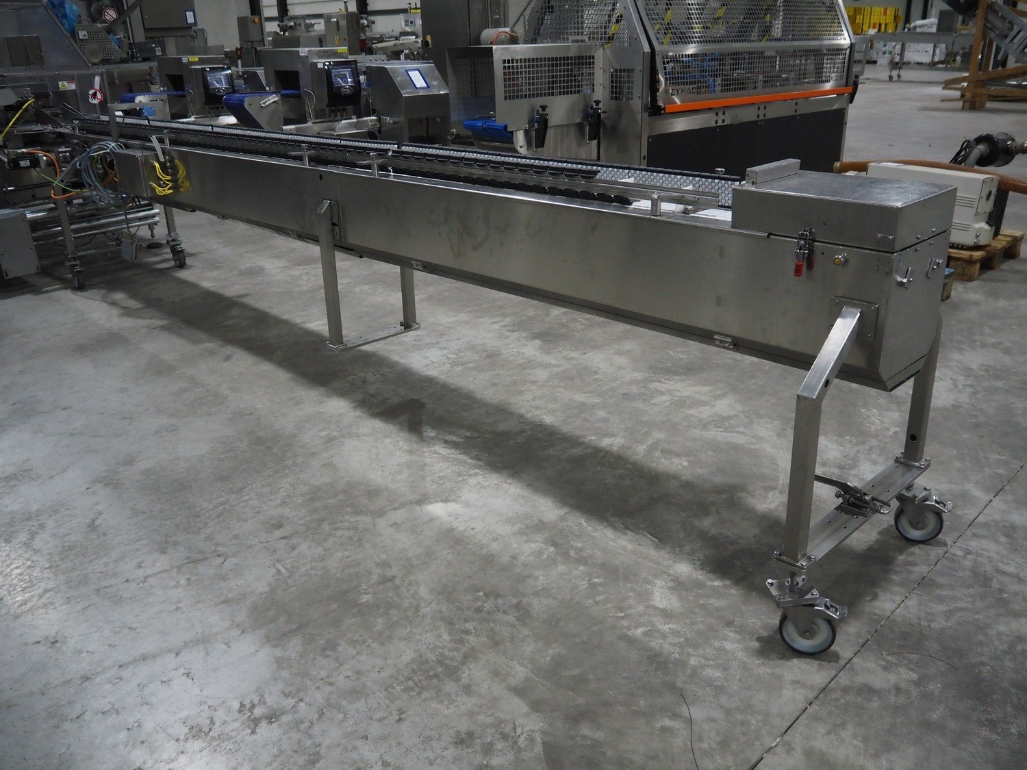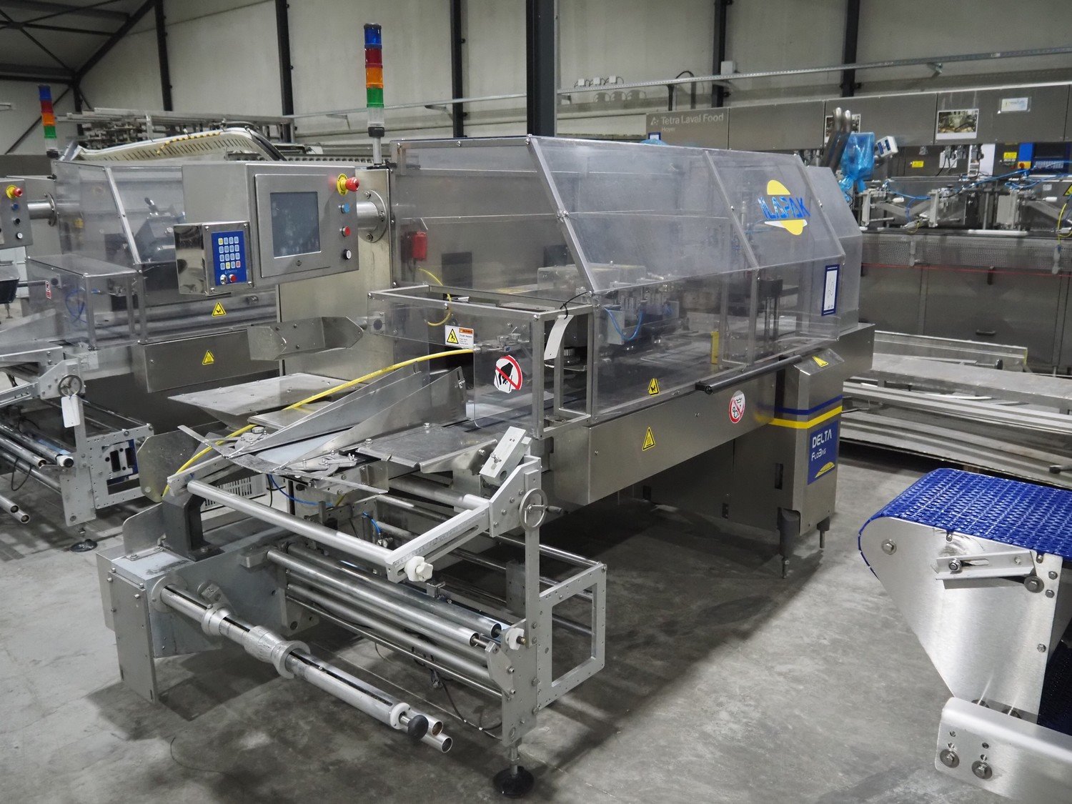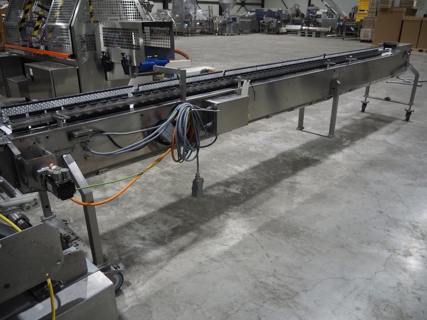 Ilapak flowpacker, plastic belt, belt width: 280 mm, seal length: 360 mm, total dimensions: 3500 mm x 1500 mm x 1900 mm, mobile infeed belt, plastic belt, belt width: 160 mm, distance between dividers: 205 mm, divider height: 50 mm, total dimensions: 405 mm x 700 mm x 1050 mm. Including 2 crates with parts. Kavel locatie: Langereijt 29A, 5091 JP Middelbeers, Nederland