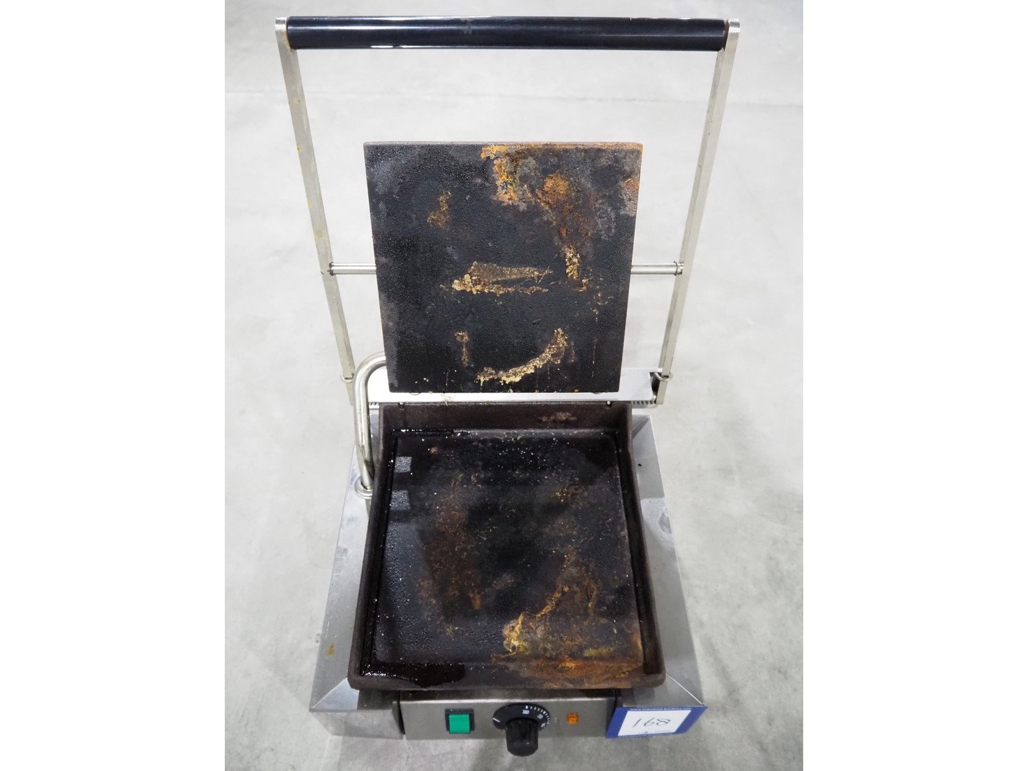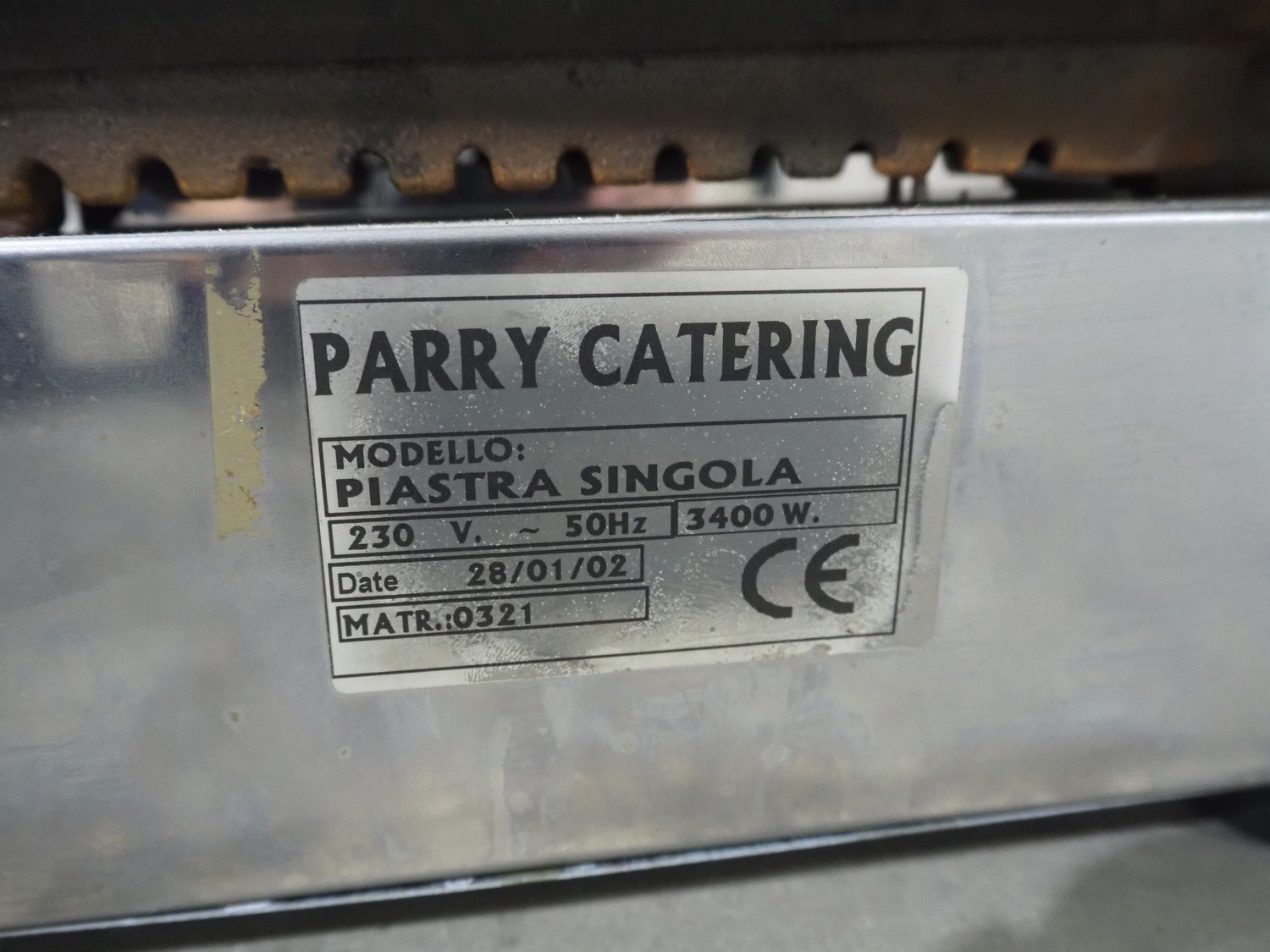 Parry Catering grill, model: Piastra Singola, serial number: 0321, year of construction: 01/2002, 230 V, 50 Hz, 3400 W, dimensions grill: 220 mm x 220 mm, total dimensions: 400 mm x 330 mm x 185 mm. Kavel locatie: Langereijt 29A, 5091 JP Middelbeers, Nederland
